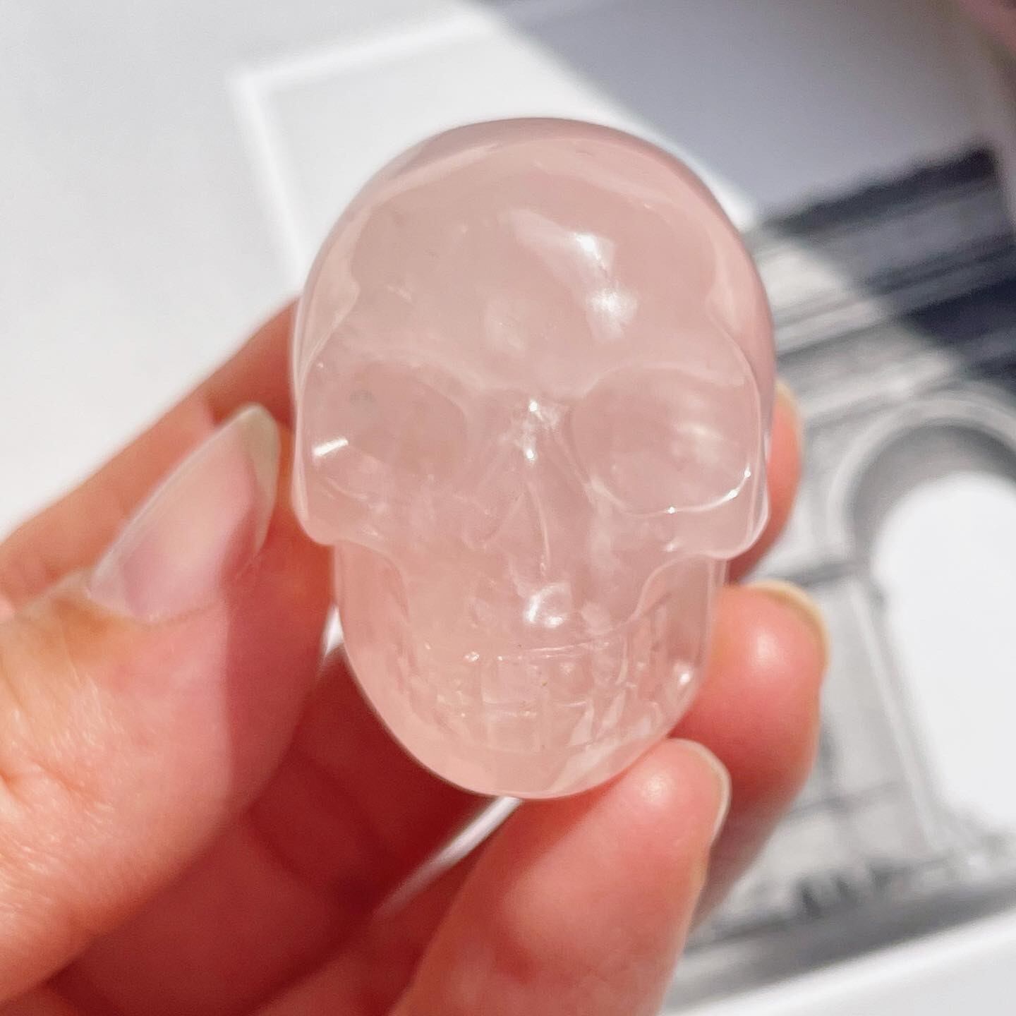 マダガスカル産のローズクォーツのスカルと