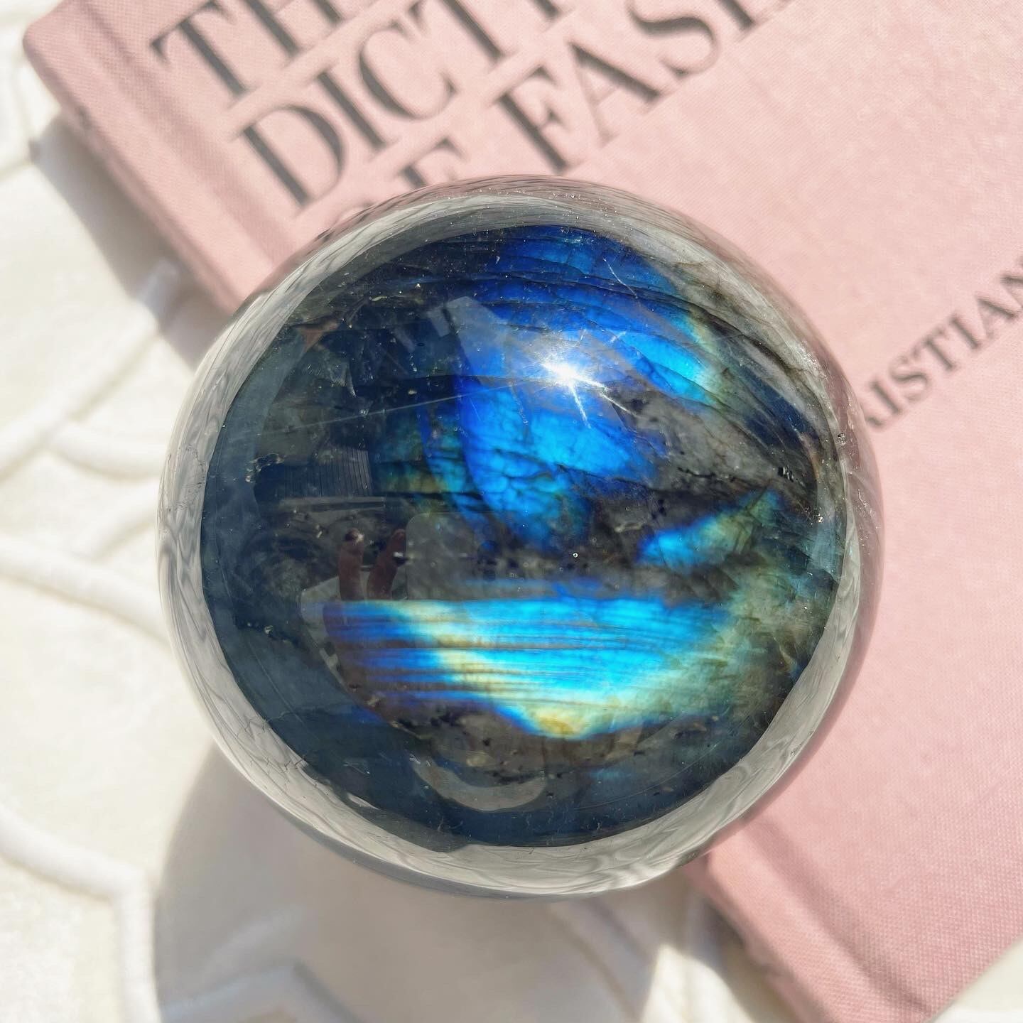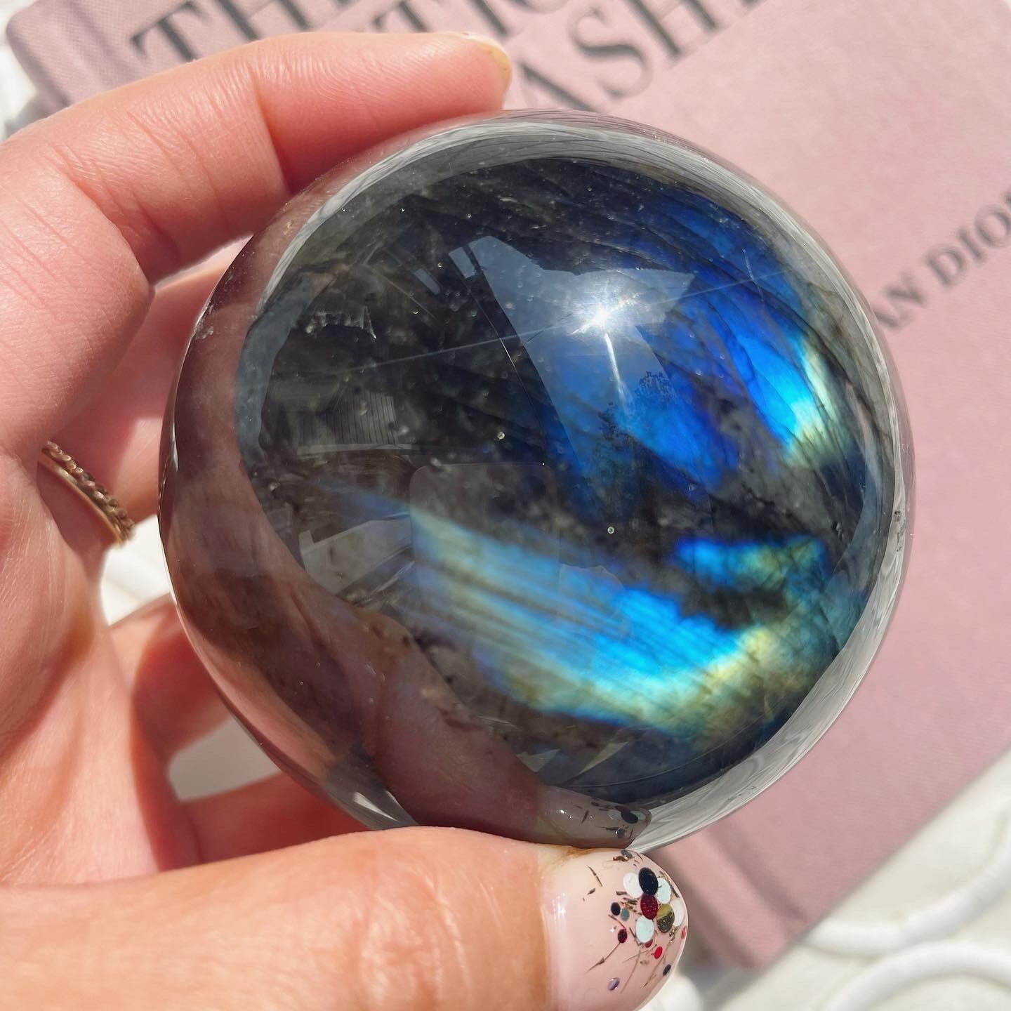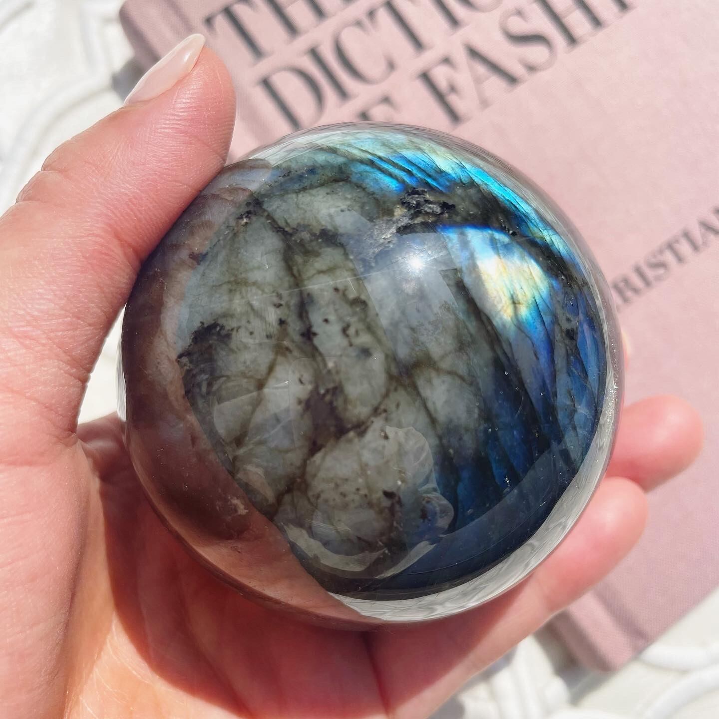 ダークグレイに青いシラーが美しく入った、神秘的で新月のようなスフィア。