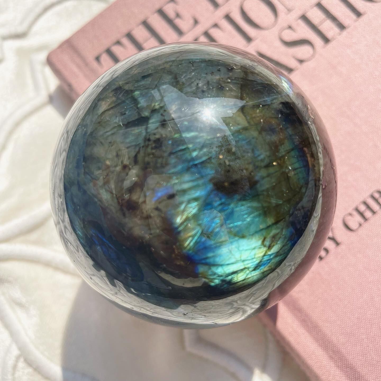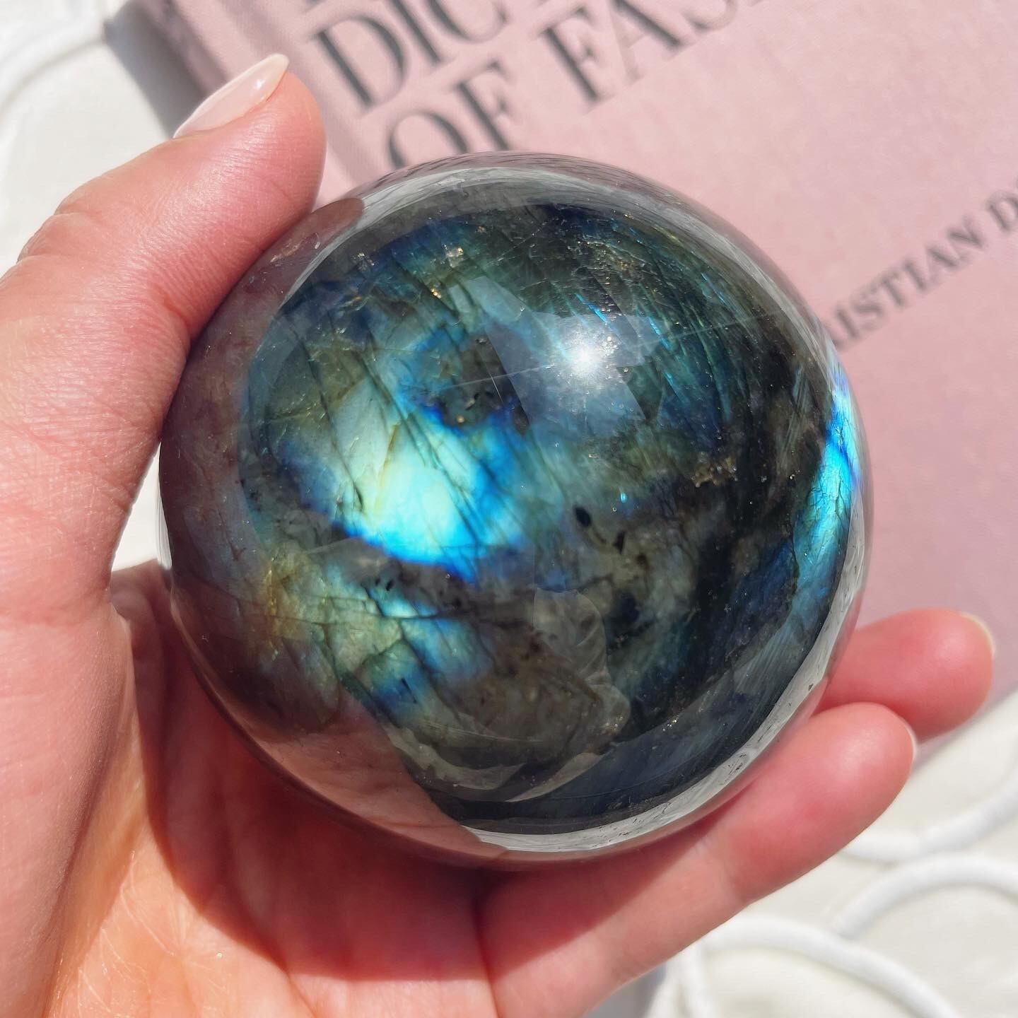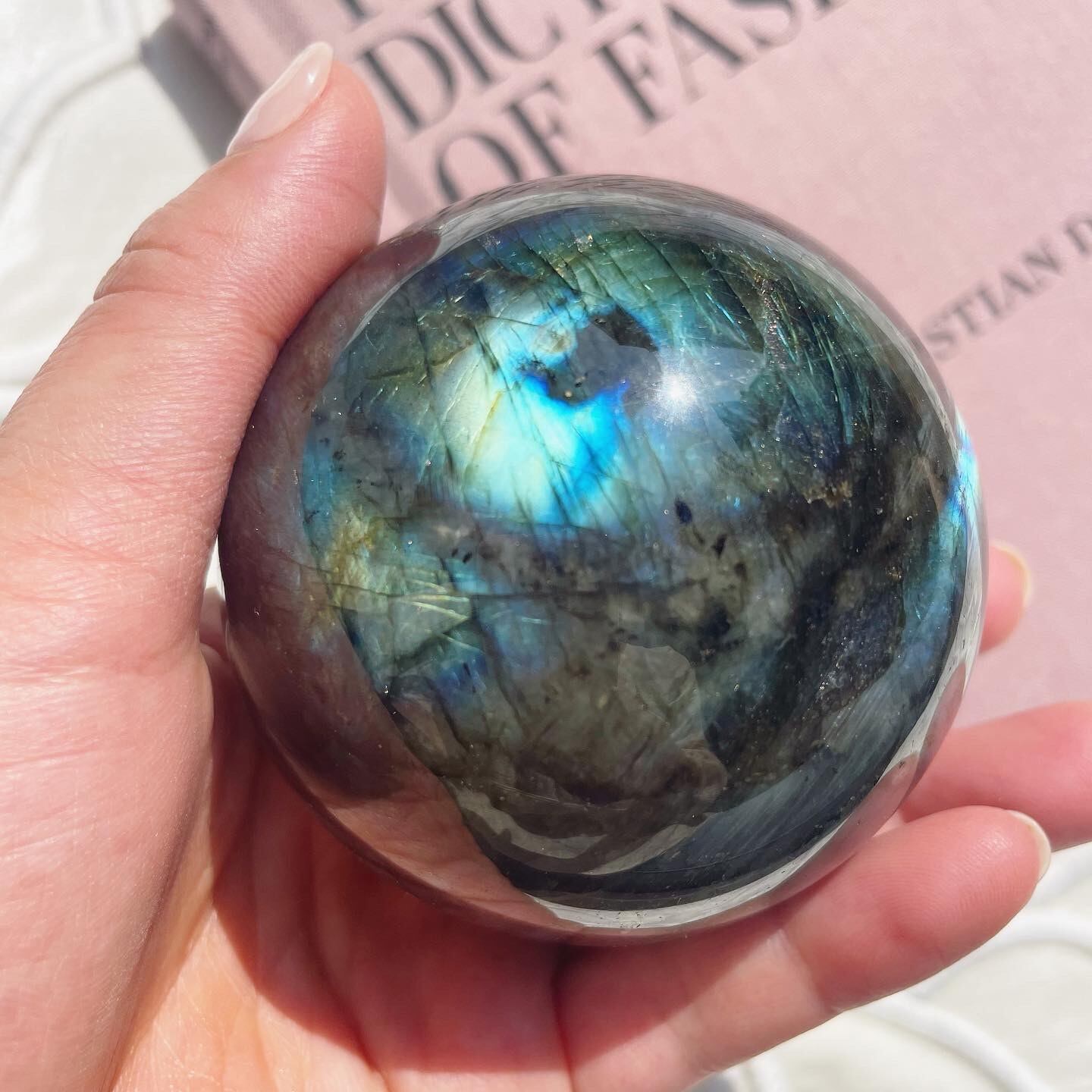 ダークグレイに青いシラーが美しく入った、神秘的で新月のようなスフィア。