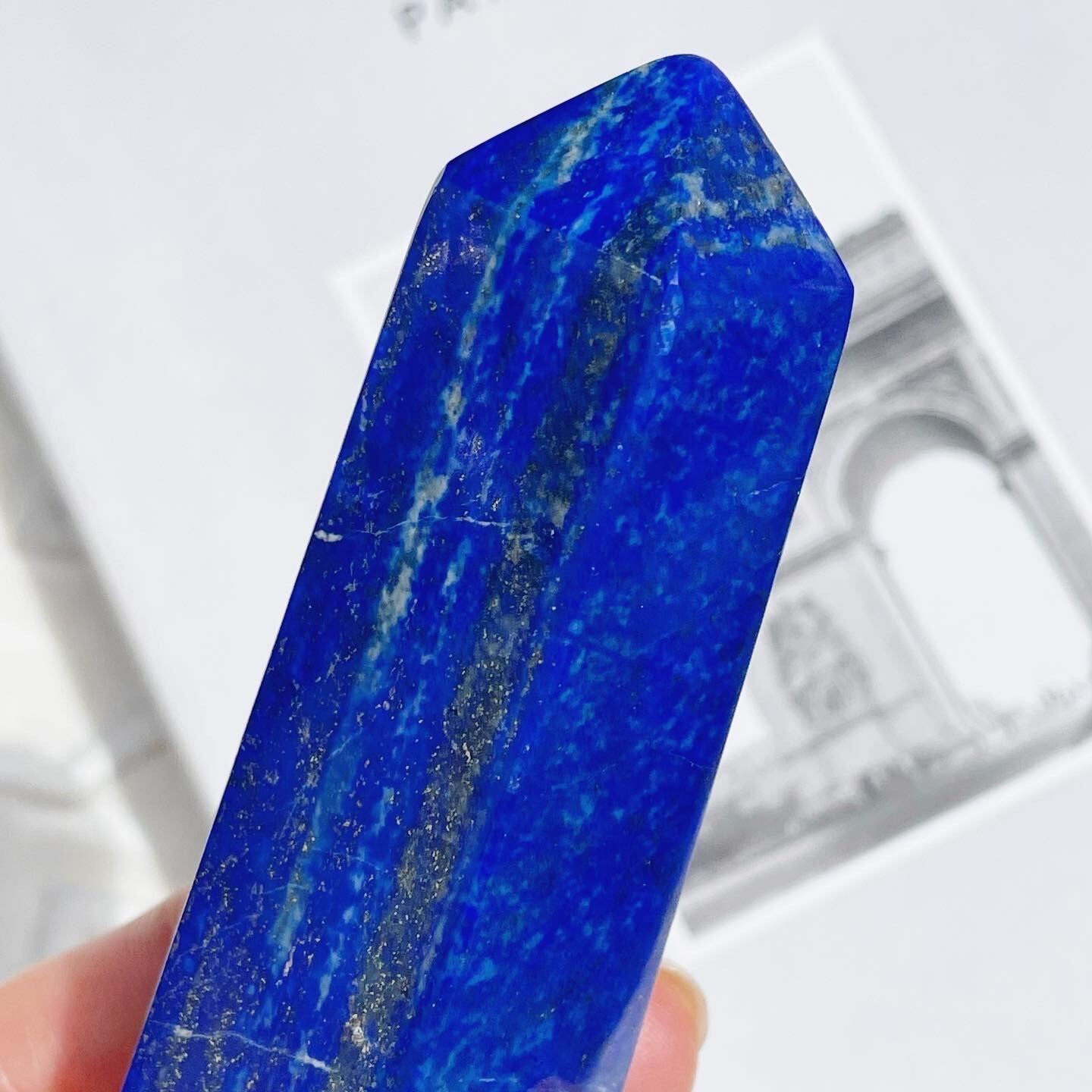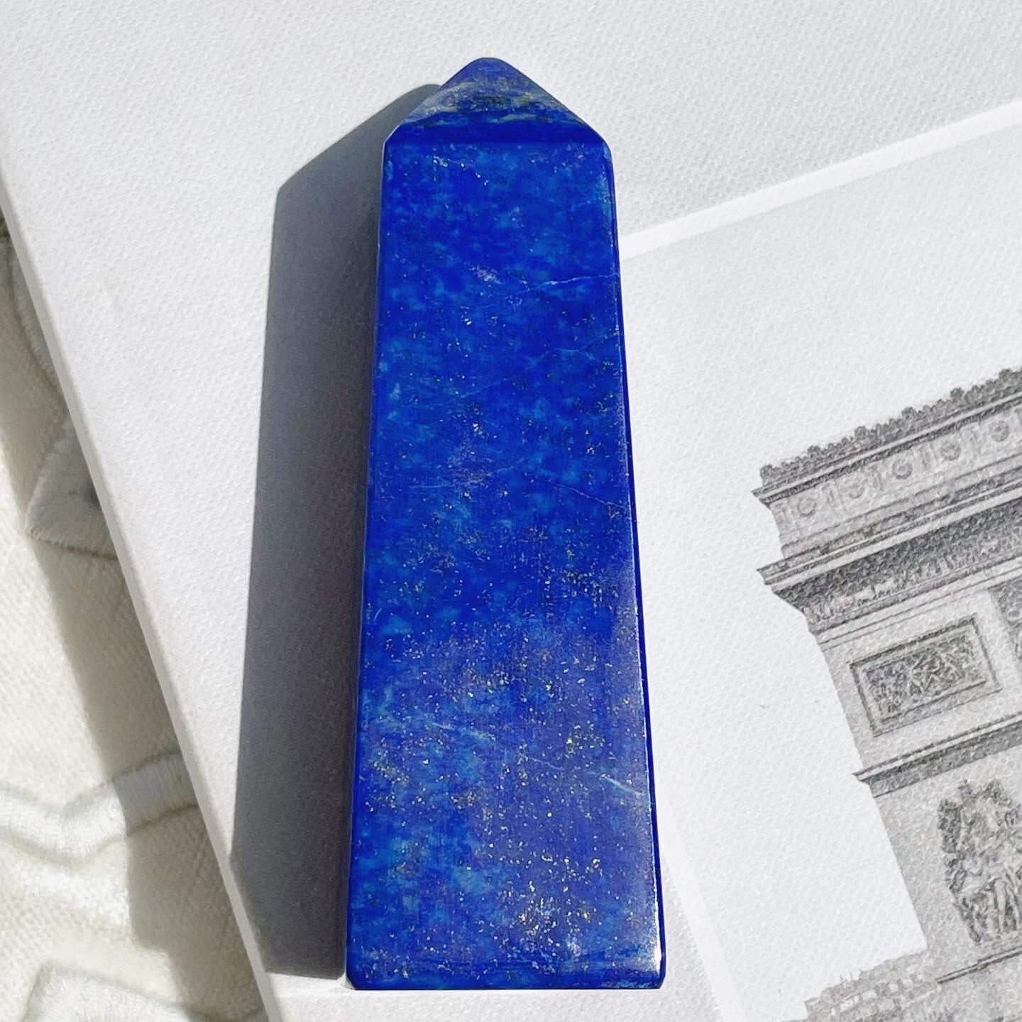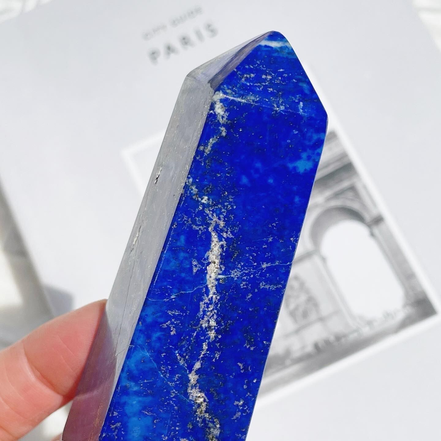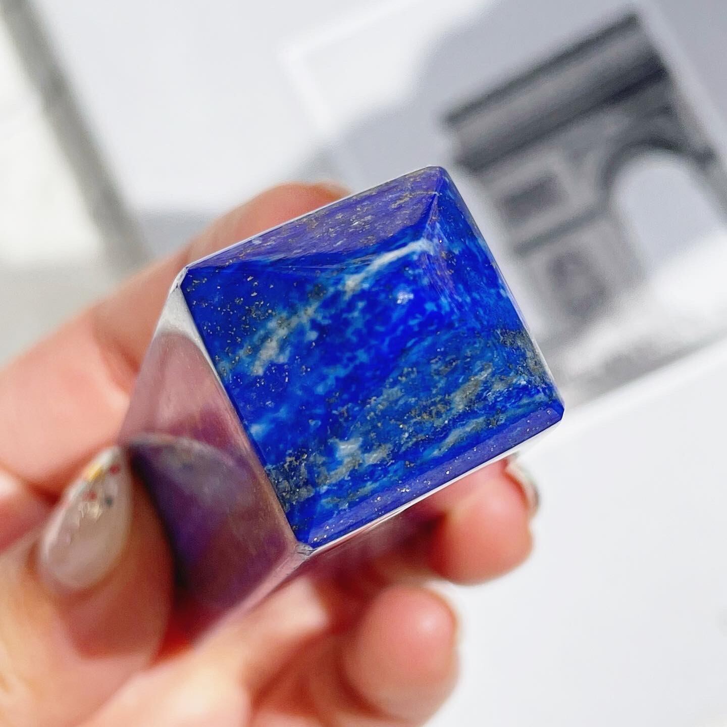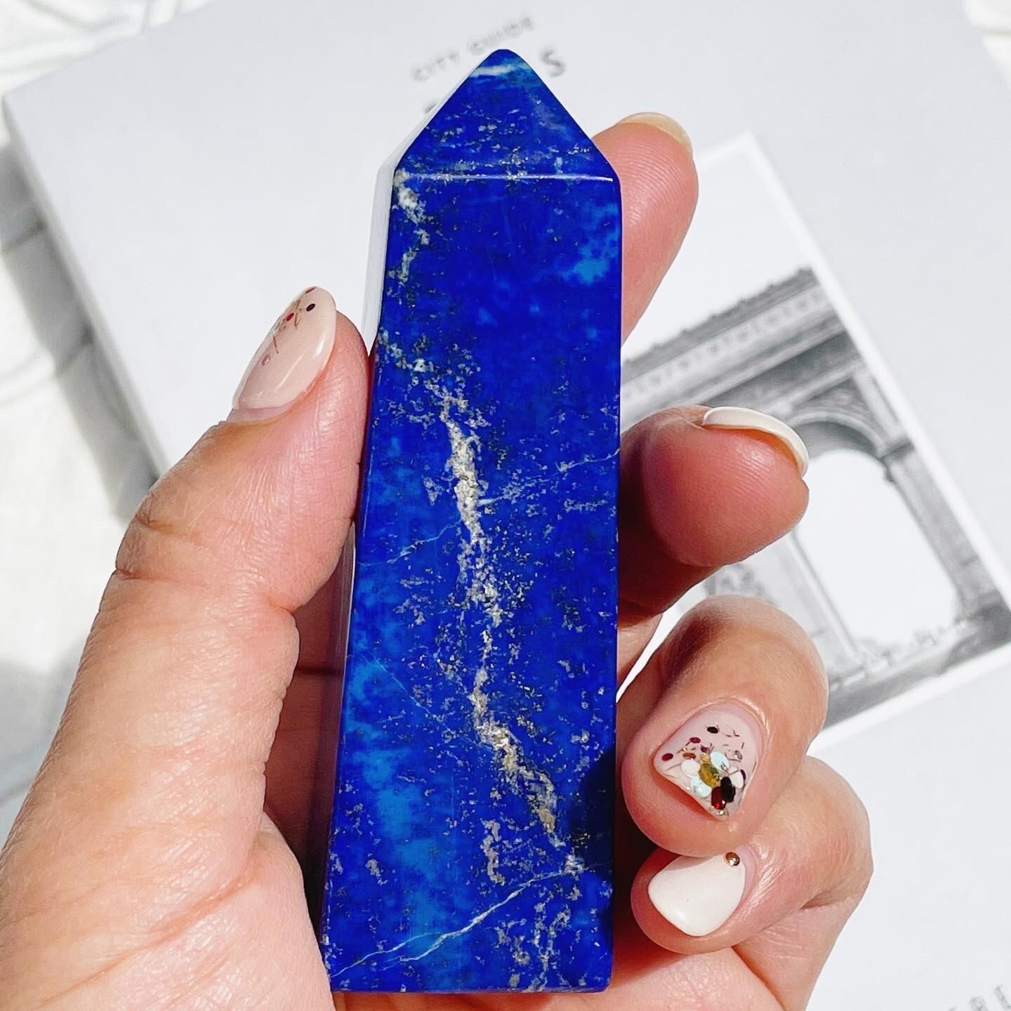 深い群青色の中に、ライン上に入るホワイトとパイライトのコントラストが映えるラピスラズリ。まるで星空を手にしたかのよう。