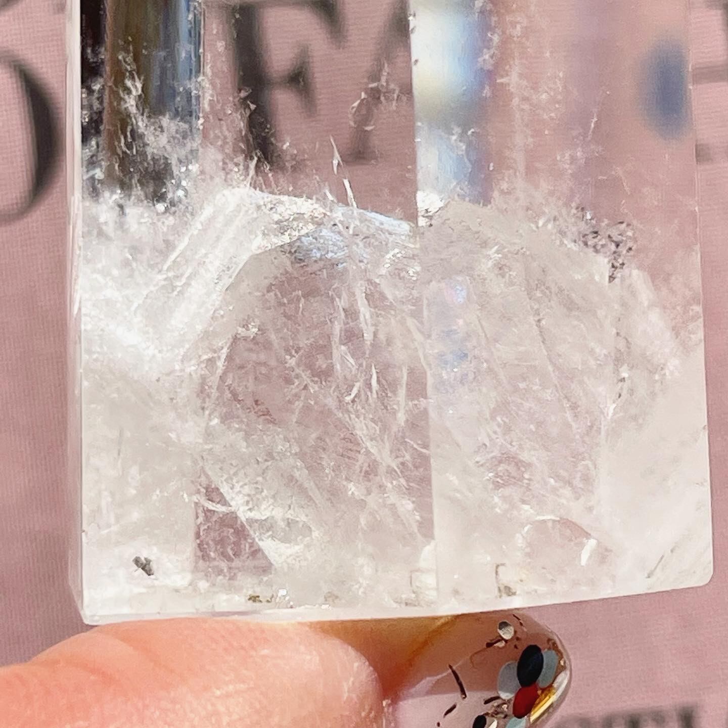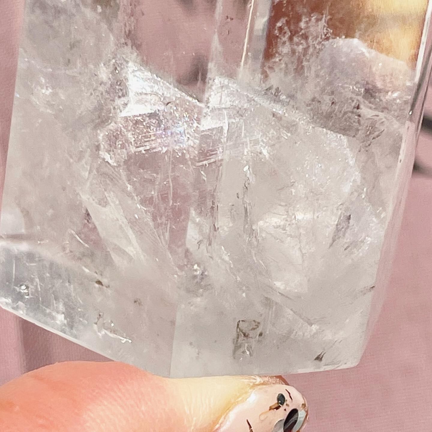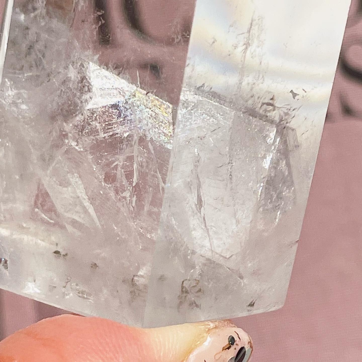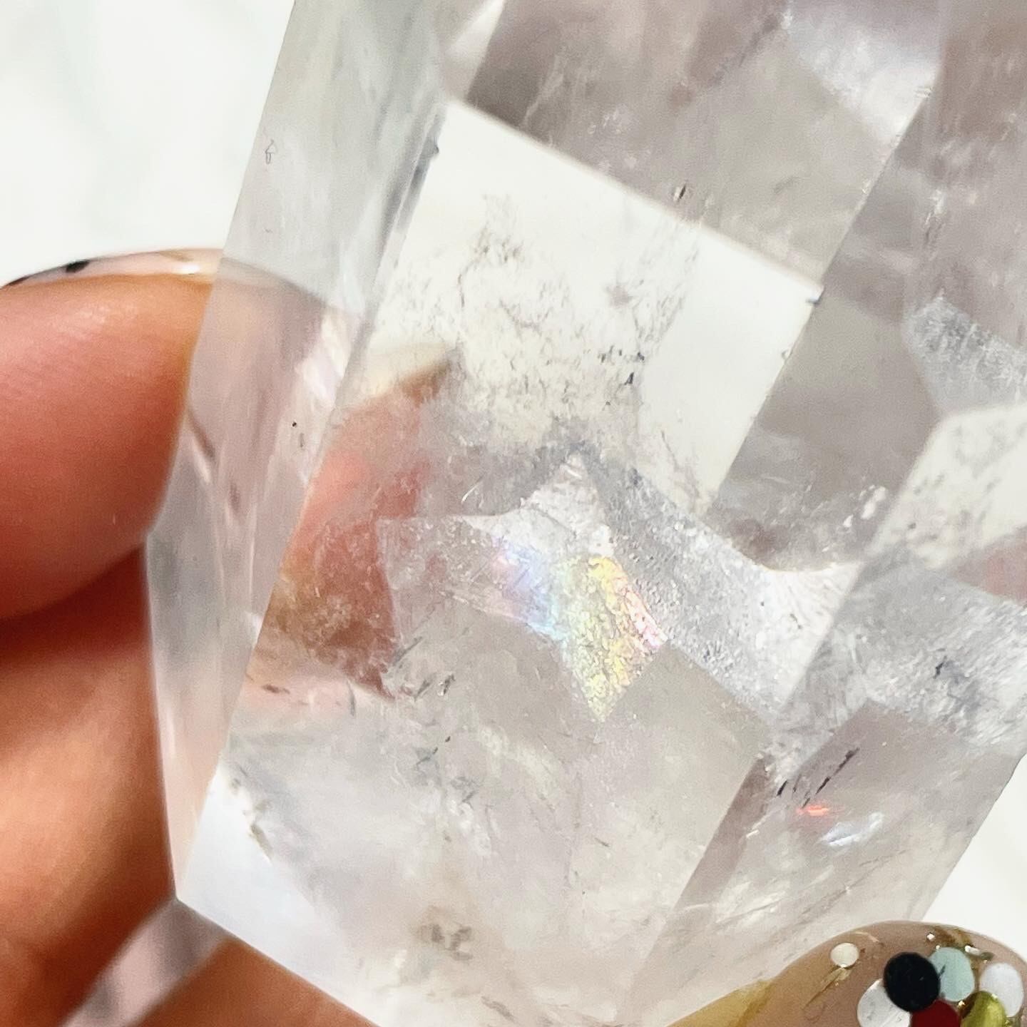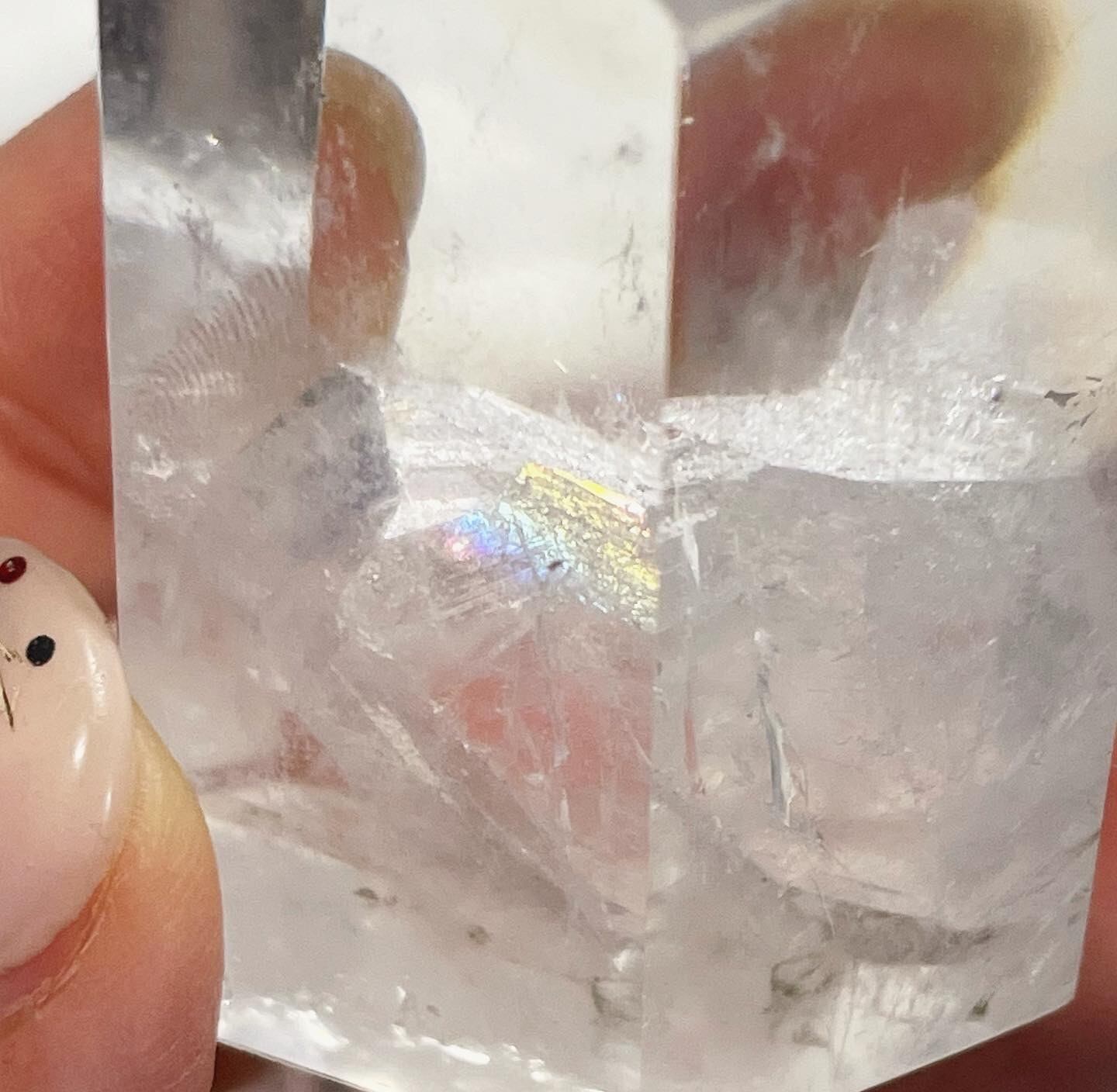 ころんと大きめの結晶が貫入し、その表面に虹が見える美しいピースです。