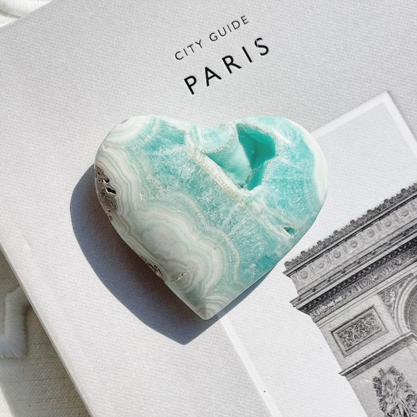 パワフルなライトブルーと、折り重なる白の繊細な模様が特徴的なハートです。