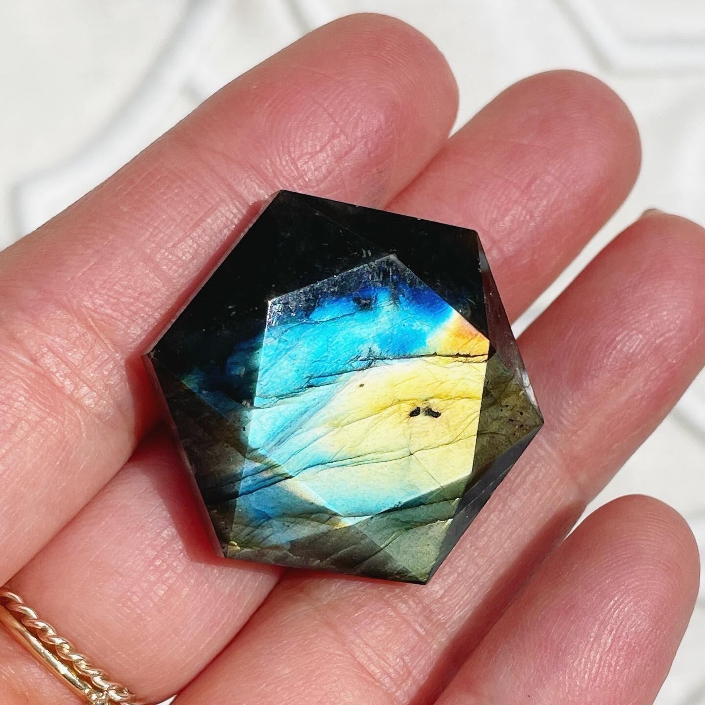 青く光るもの、ゴールドに光るもの。六芒星のカットも相まって、神秘的な魅力の子たちです。