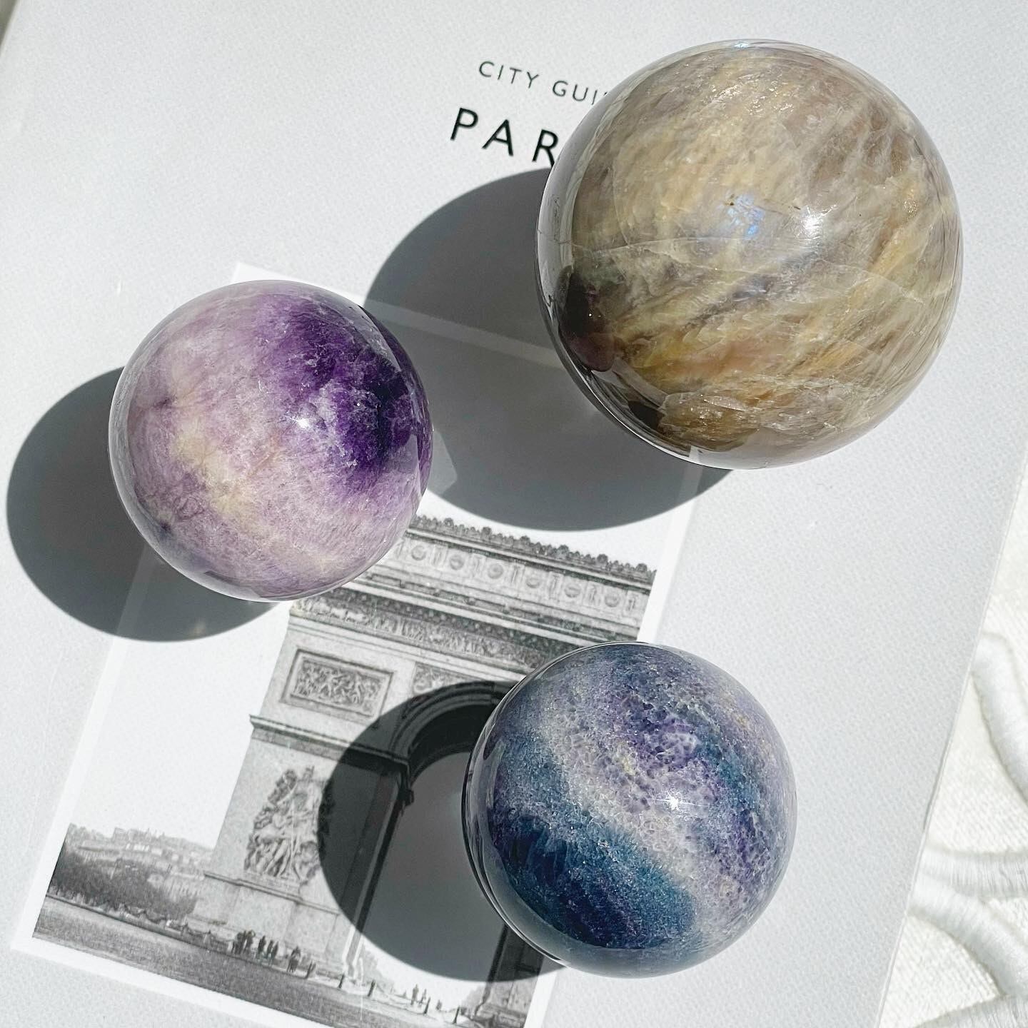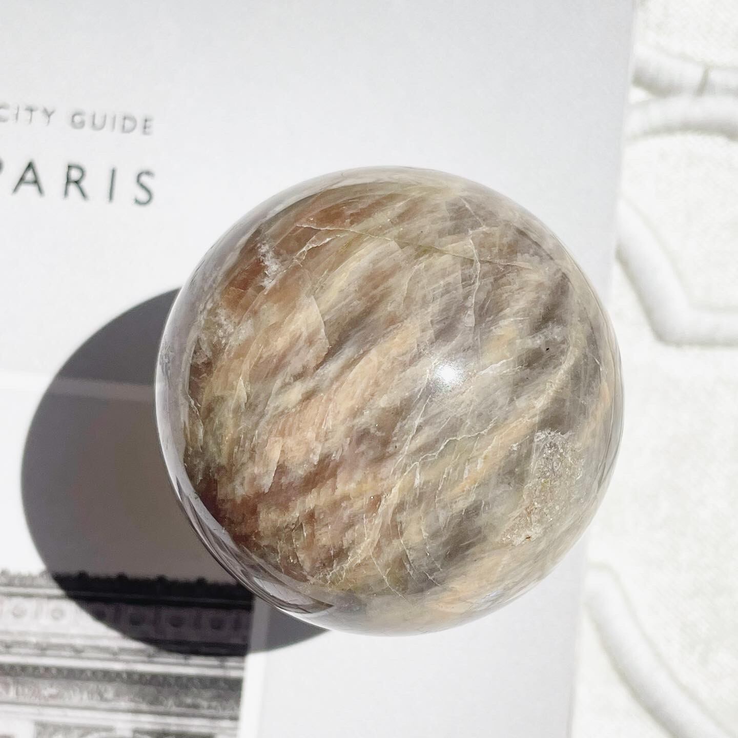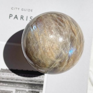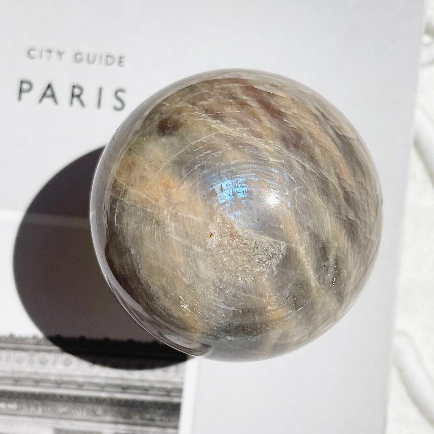 サンストーンの特徴である、シャンパンゴールド色に煌めくアベンチュレッセンス効果と、ムーンストーンに特徴的な、静かな光・青色のイリデッセンス効果、このふたつを併せ持つ、神秘的なストーンです♡