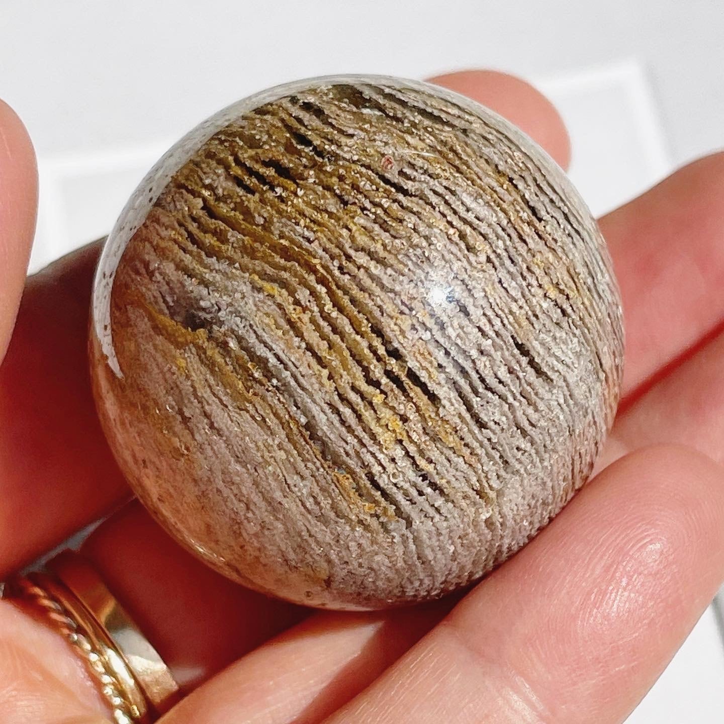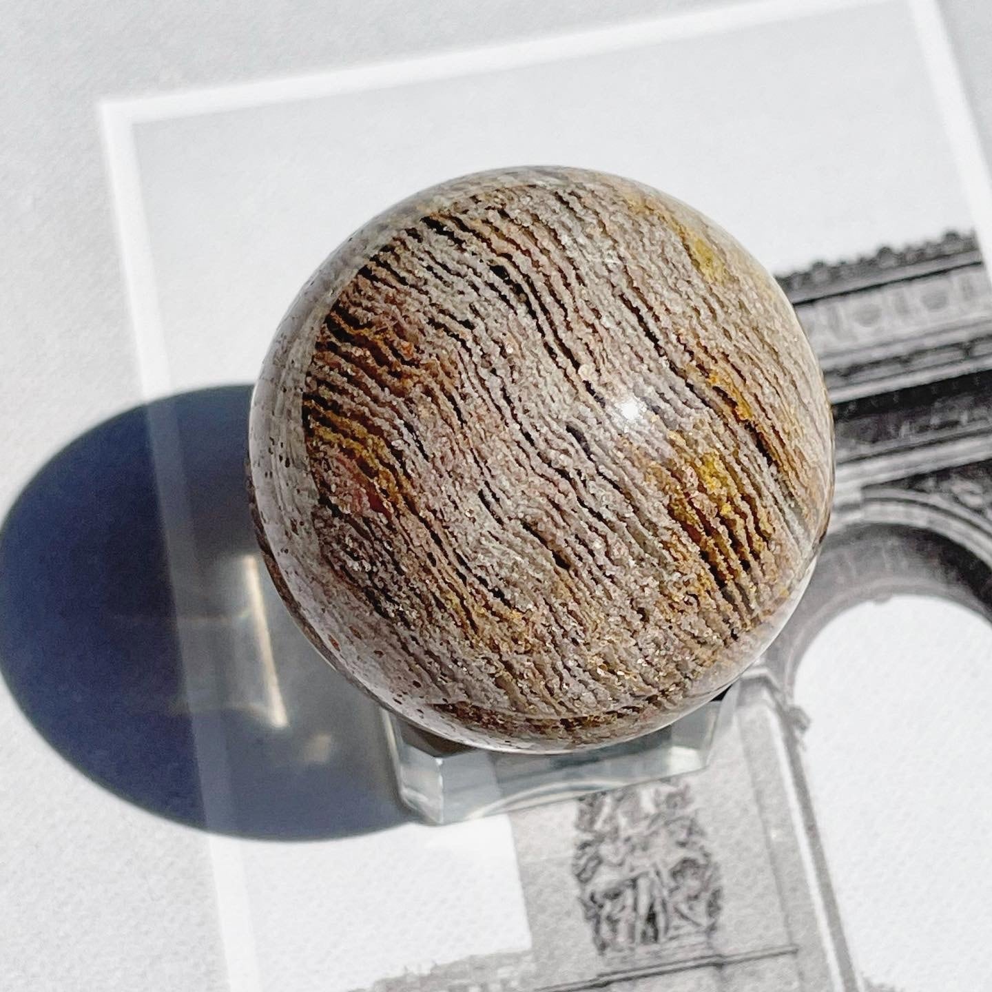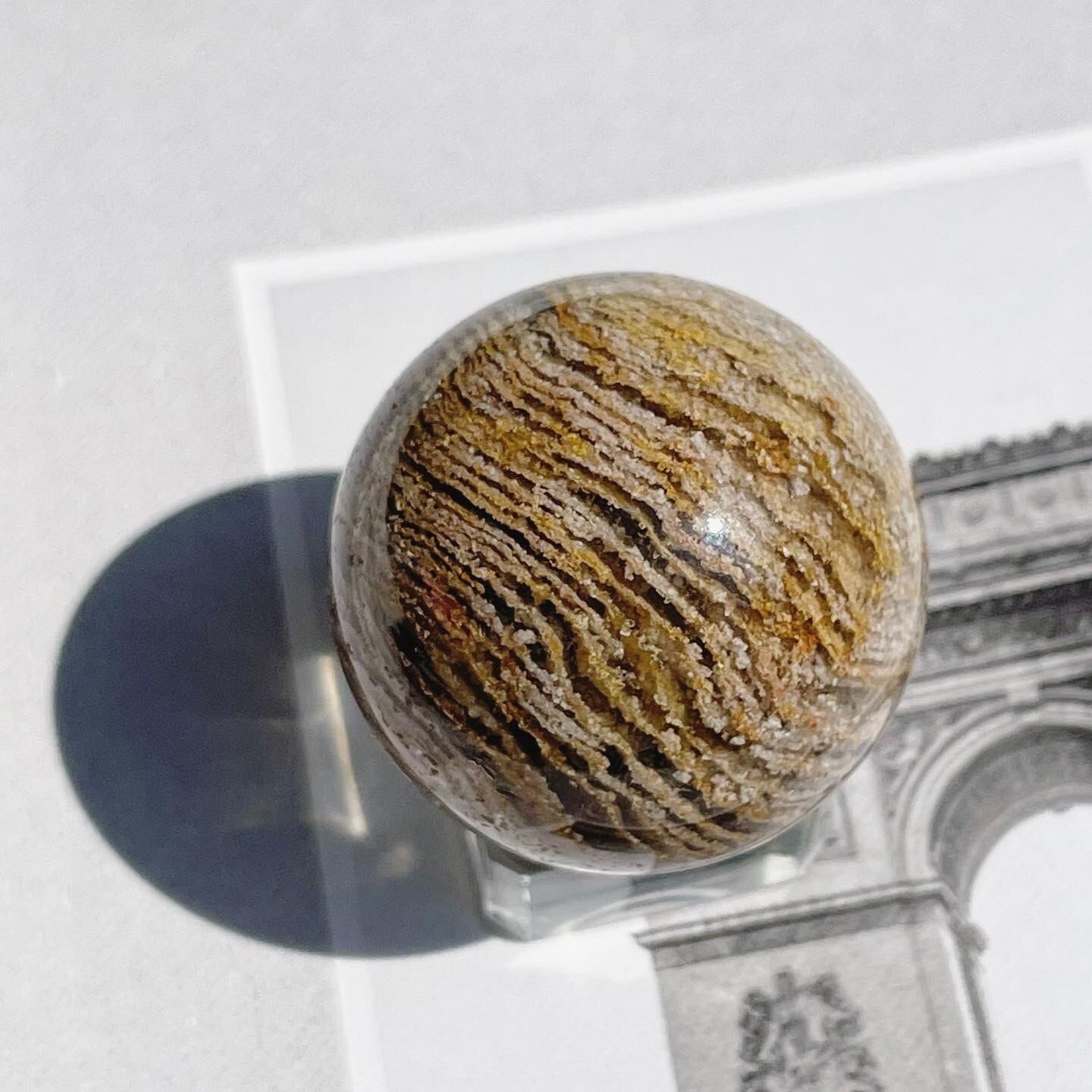 気の遠くなるような歳月をかけて、水晶が成長と停止を繰り返し、その間に内包物が流れる層のように形成された、美しいマスターピースです。