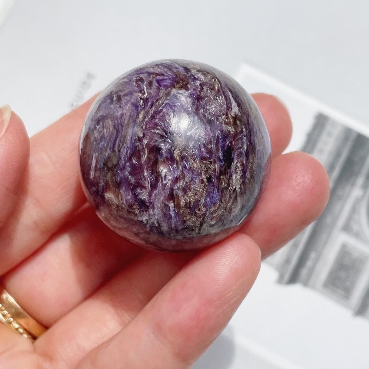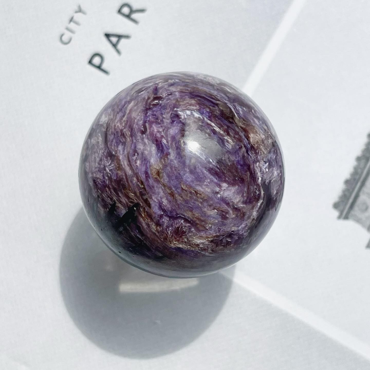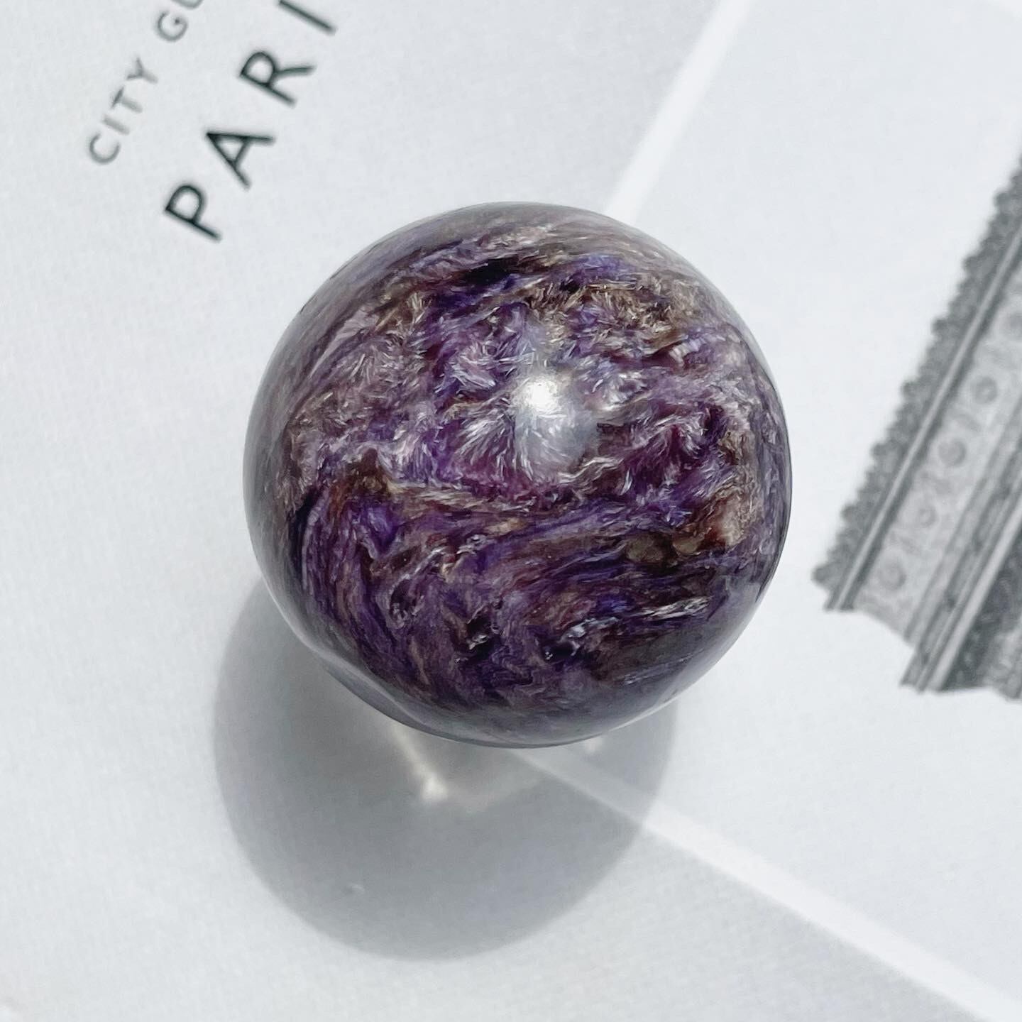 淡いライラックパープルの部分の、シルクのような光沢もチャロアイトの特徴。