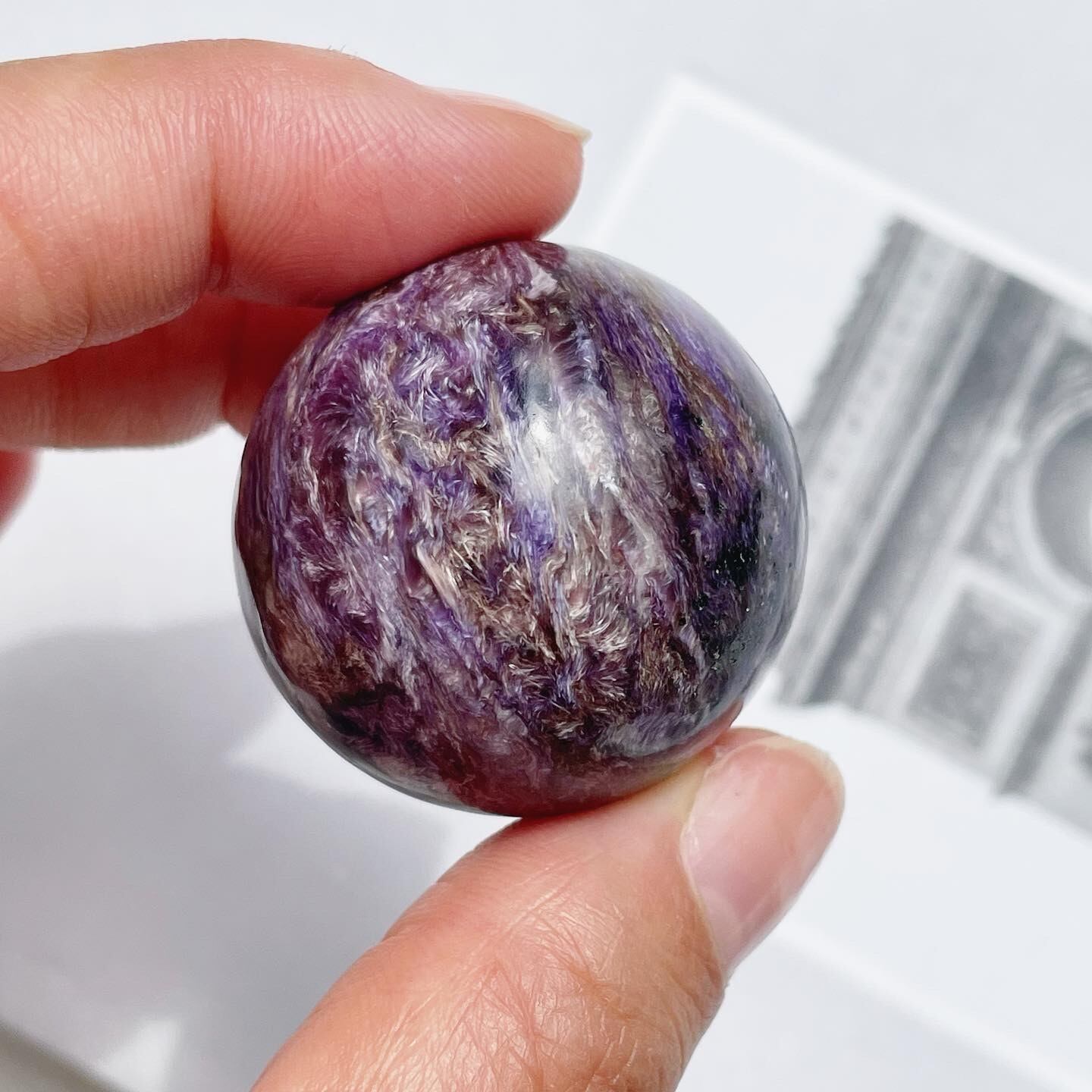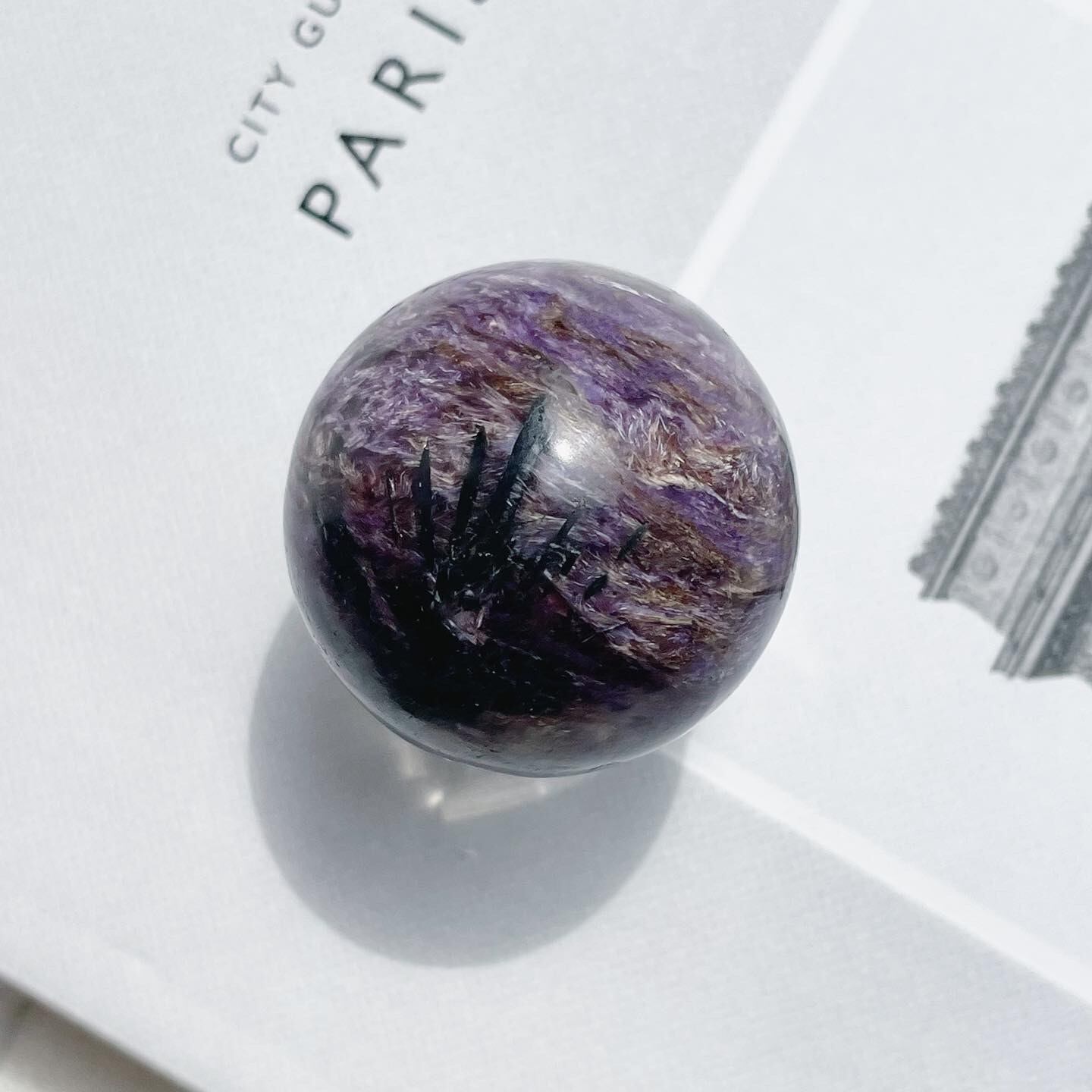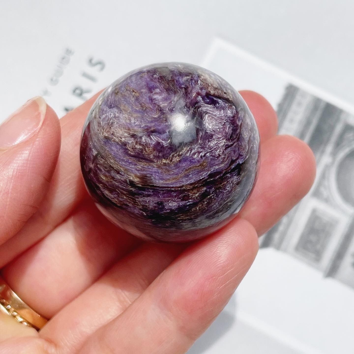 淡いライラックパープルの部分の、シルクのような光沢もチャロアイトの特徴。