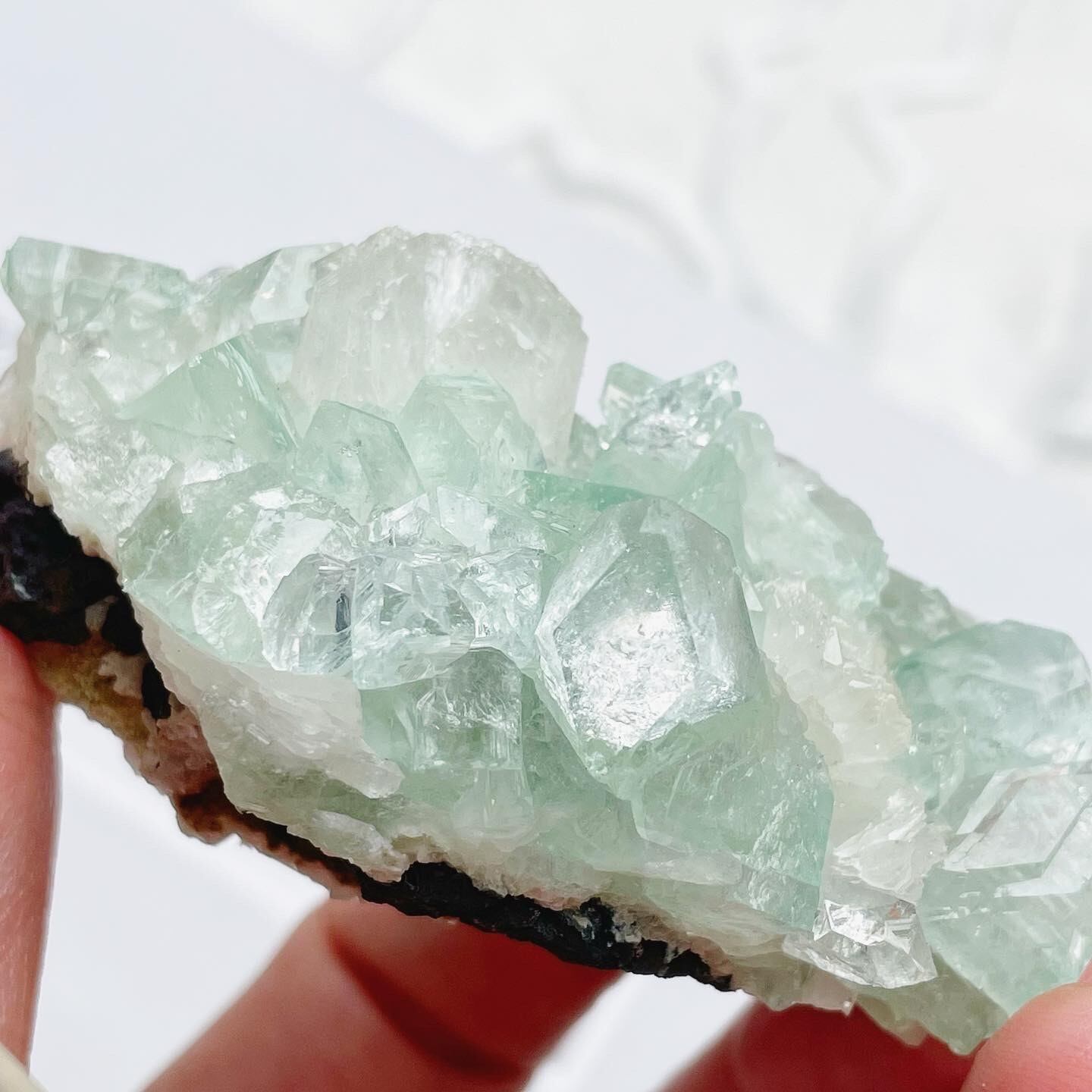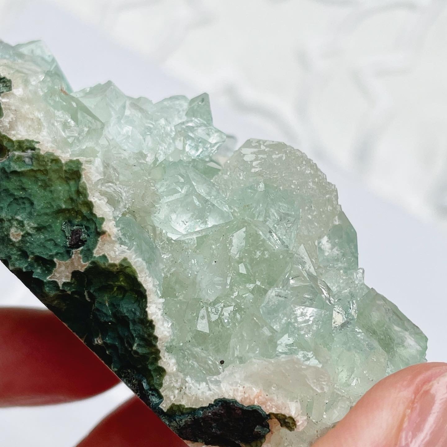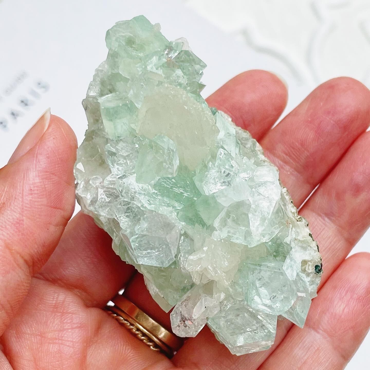 フレッシュなミントグリーンが爽やかな、グリーンアポフィライトのクラスター。