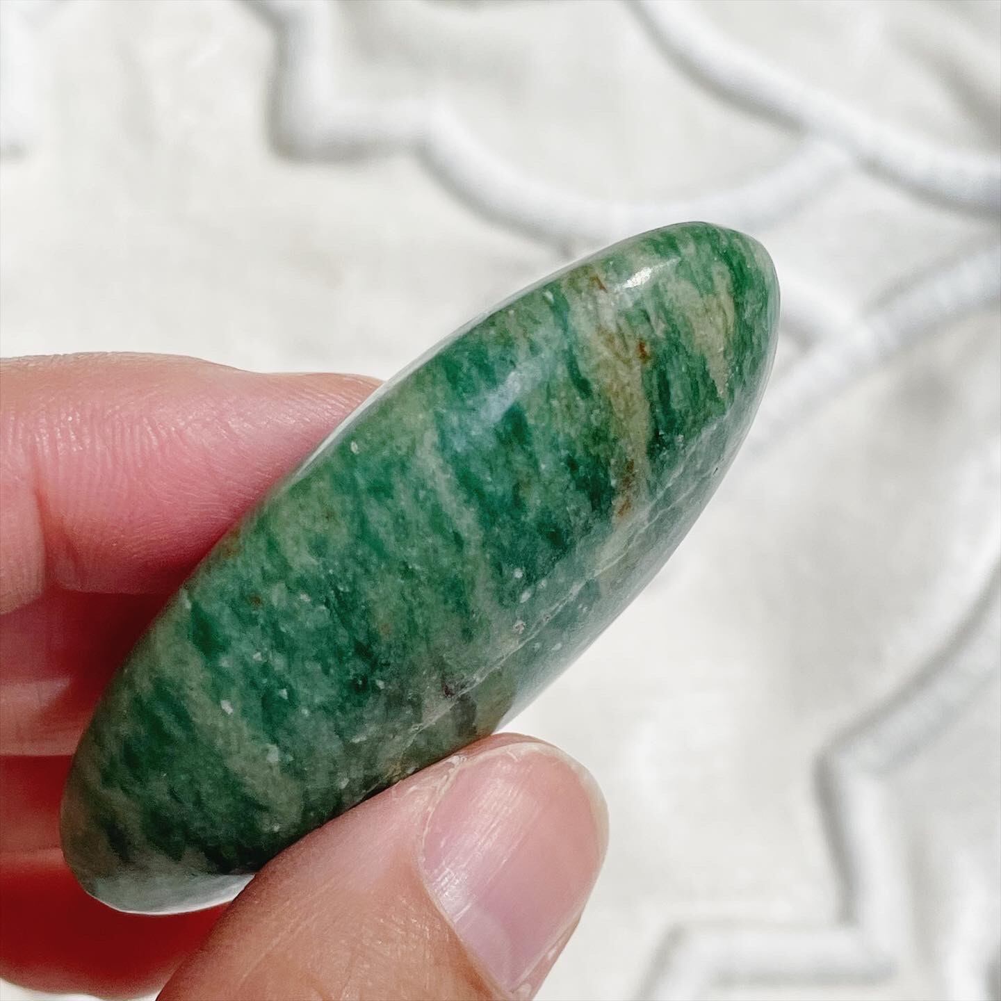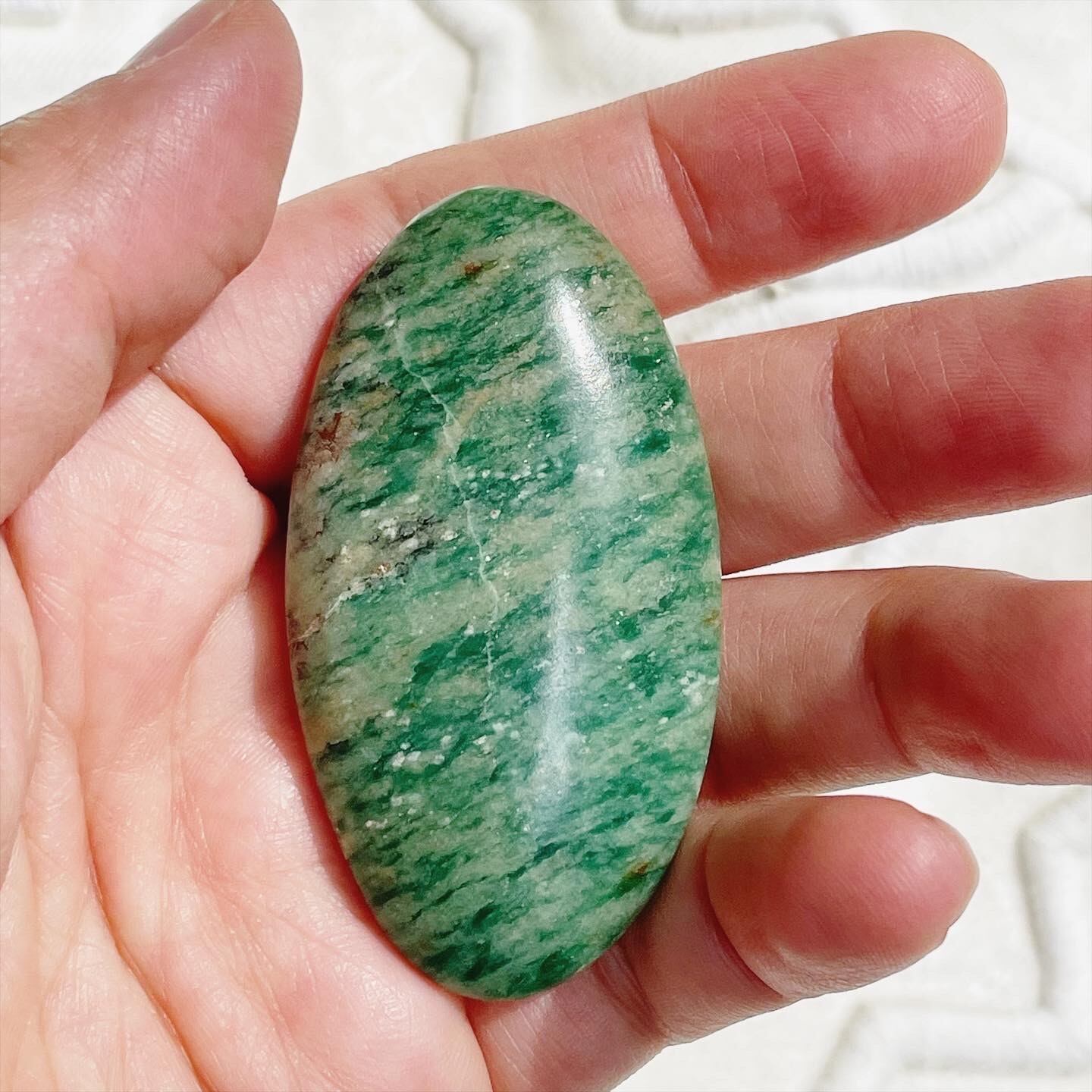 パキスタン産グリーンアベンチュリンの、手のひらにしっくりと馴染む、パームストーン。