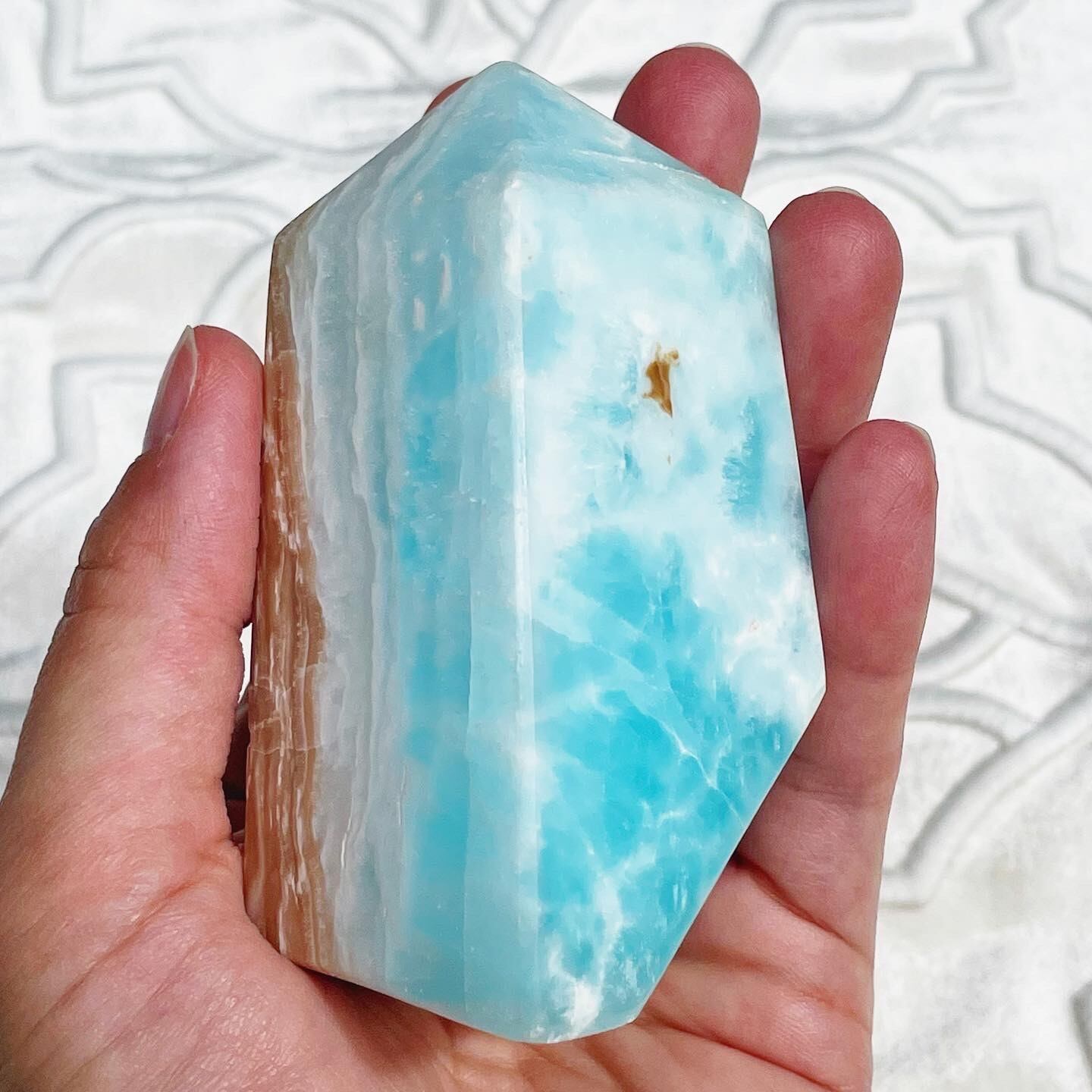 産出量が少なく、通常のカリビアンブルーカルサイトとは区別されて市場価格も高騰している種類なのですが、中でもまさに夏の青空を思わせる、美しいものを厳選してご紹介いたします。