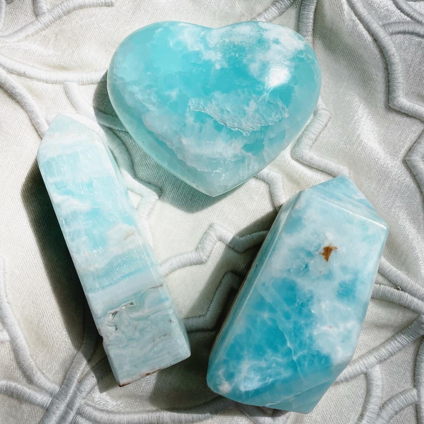 産出量が少なく、通常のカリビアンブルーカルサイトとは区別されて市場価格も高騰している種類なのですが、中でもまさに夏の青空を思わせる、美しいものを厳選してご紹介いたします。