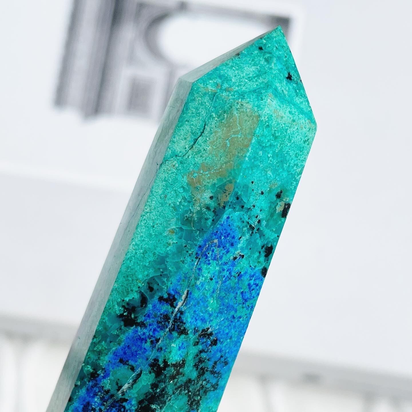 クリソコラは、マラカイトやアズライトなど複数の鉱物が混ざり合った形で産出されます。