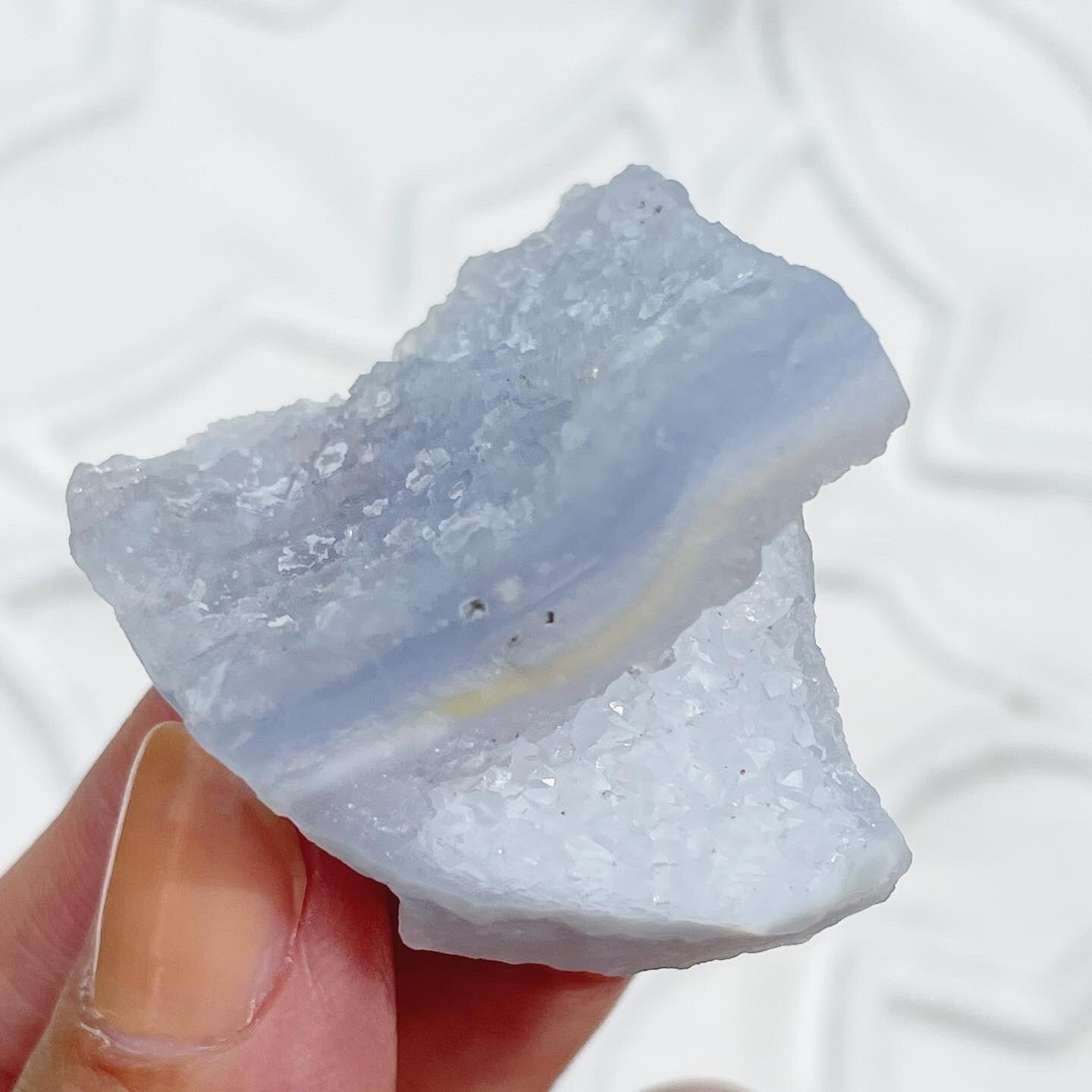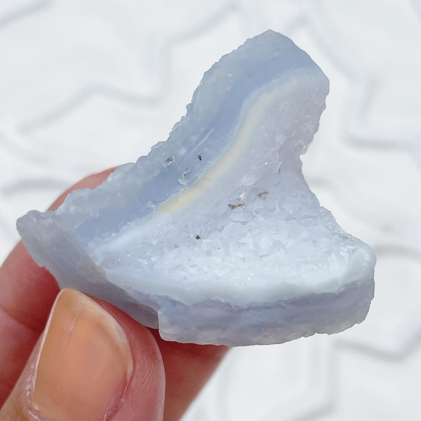 ブルーレースアゲートらしいブルーの色の層に、シーグラスのような透明感、クリアなドゥルージーが楽しめるピース♡