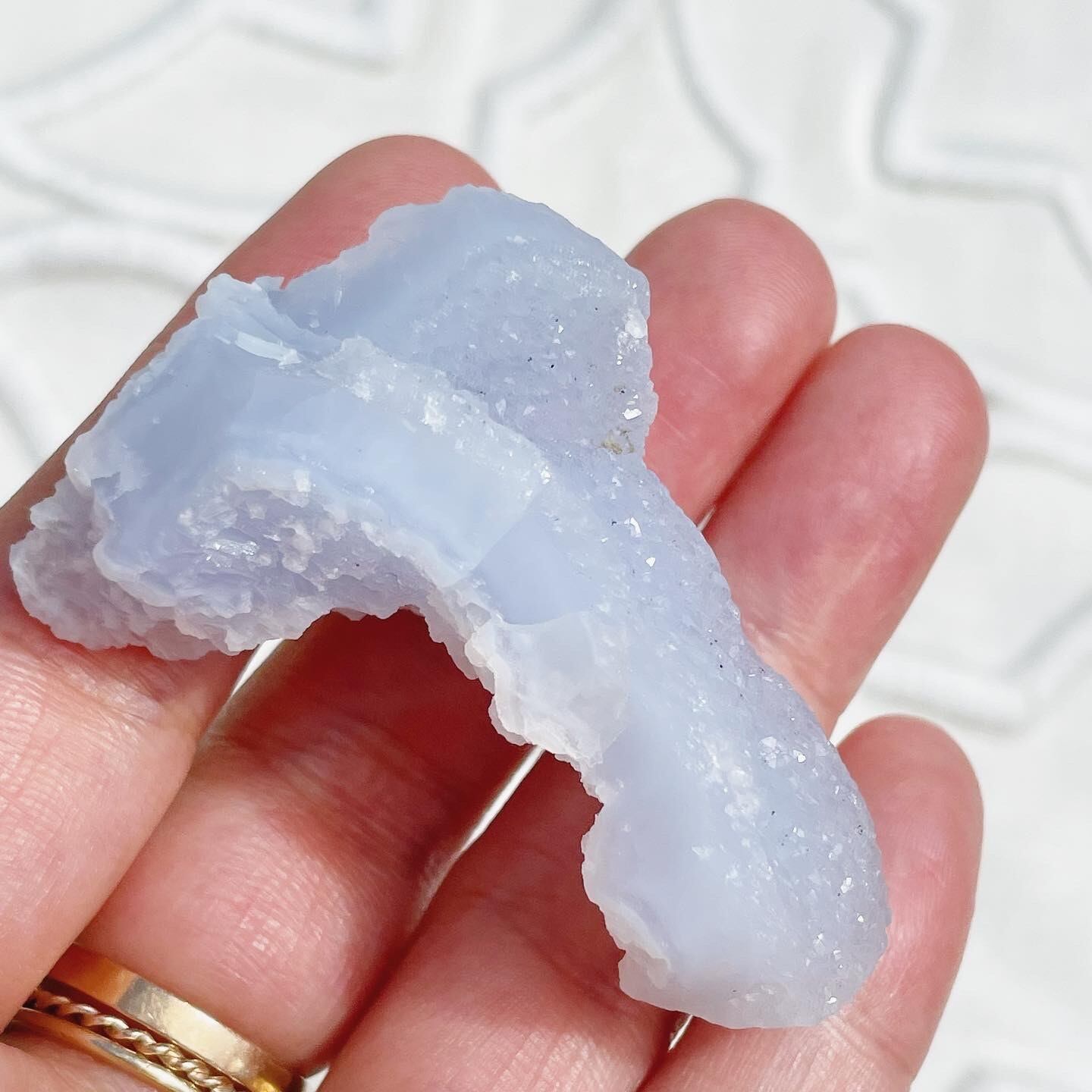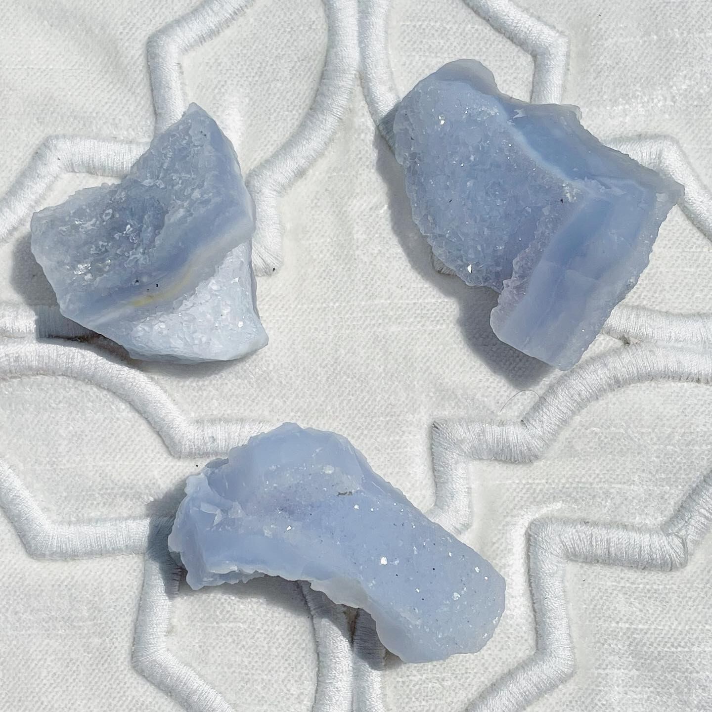 ブルーレースアゲートらしいブルーの色の層に、シーグラスのような透明感、クリアなドゥルージーが楽しめるピース♡