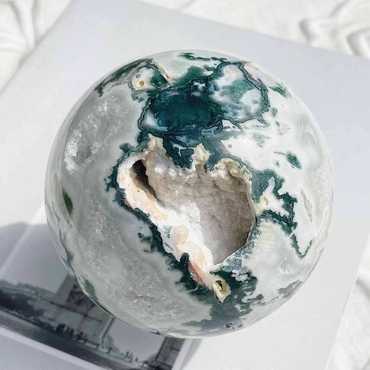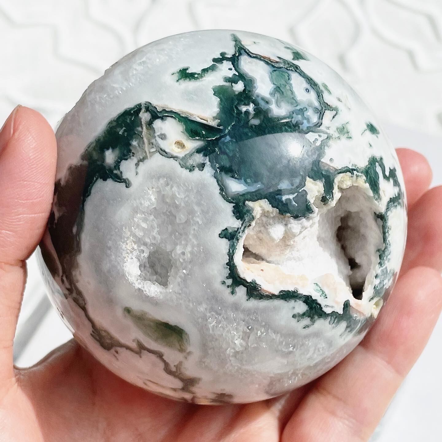 ホワイトを基調とした美しいモスアゲート。