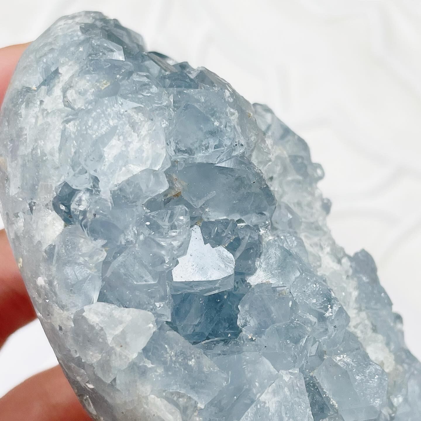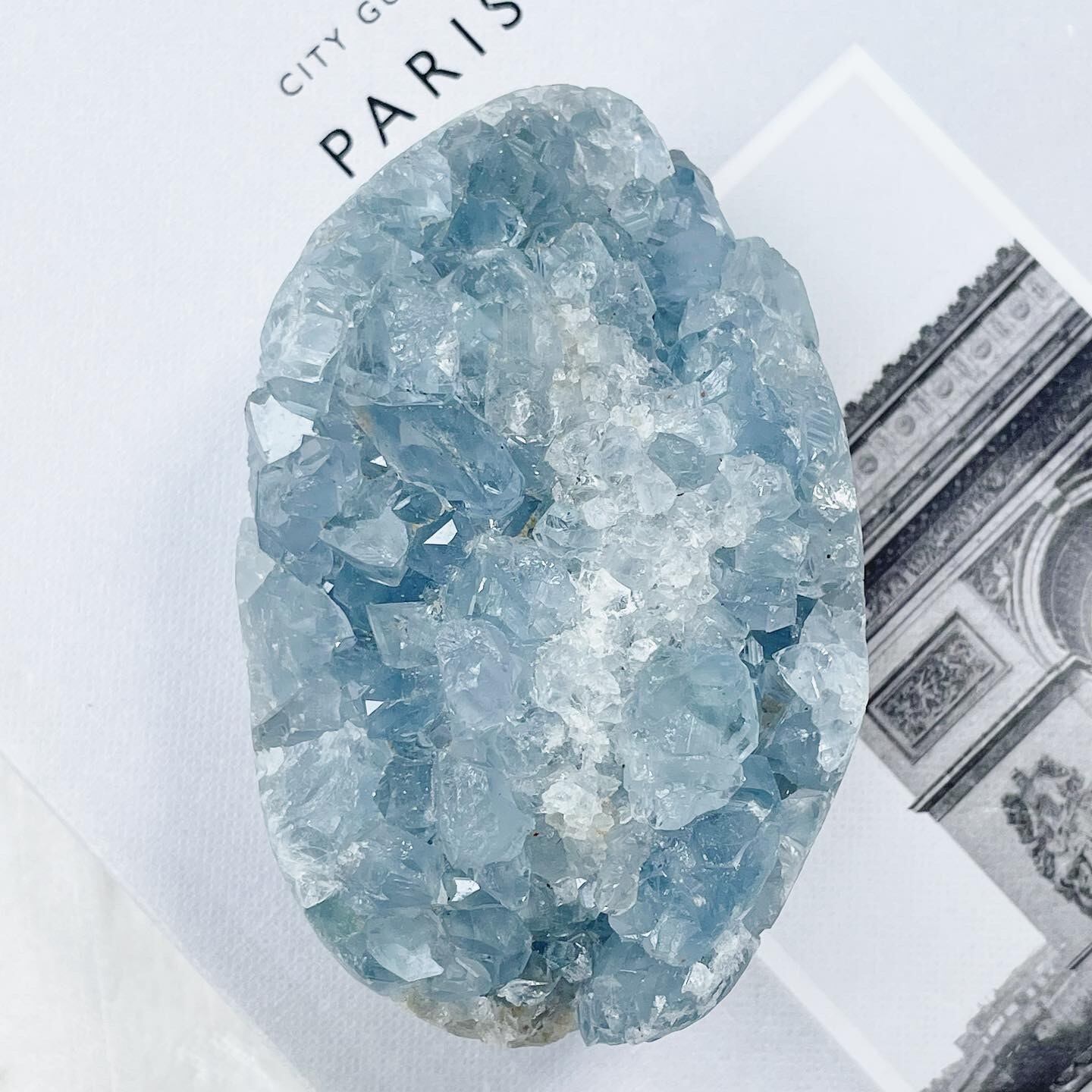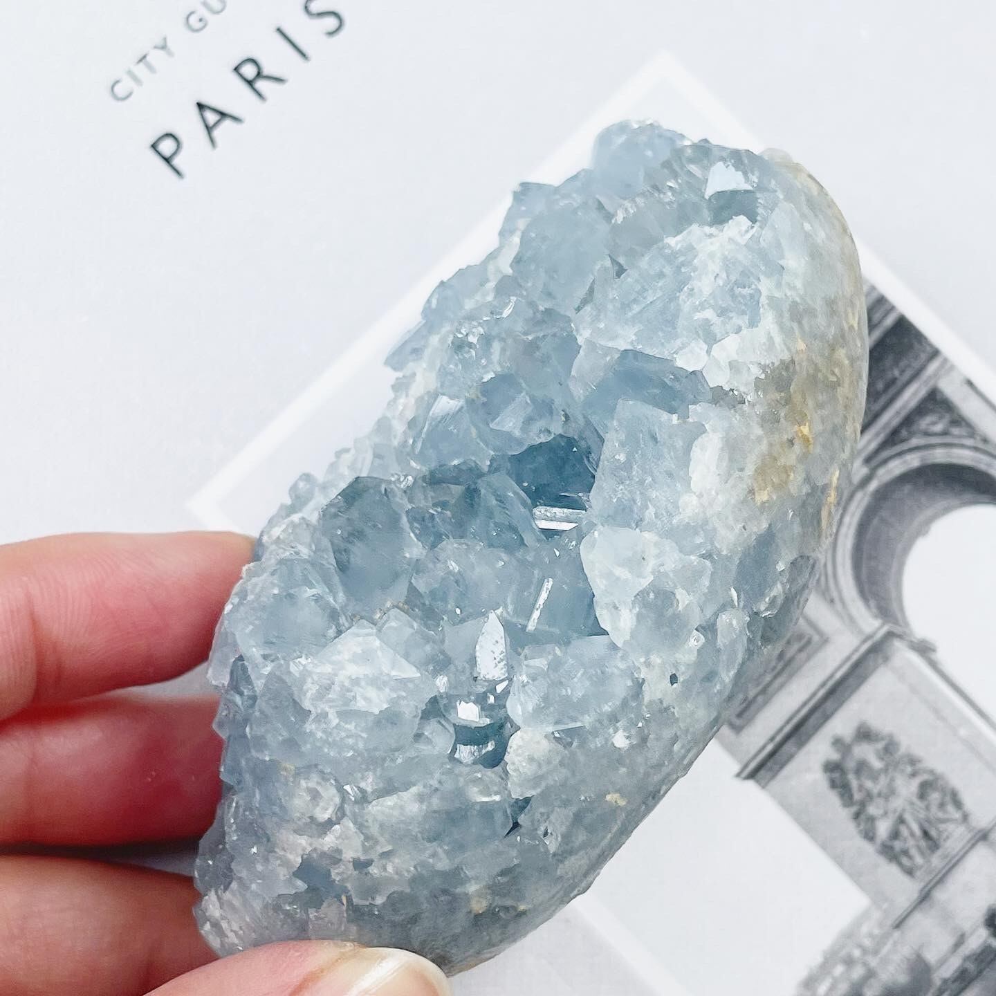 「セレスタイト(Celestine)」は和名で「天晴石」や「天青石」とも書き、語源はラテン語のcaelestisで、”天国のような石”という意味です。