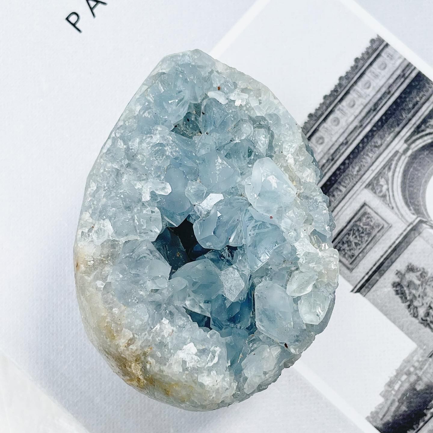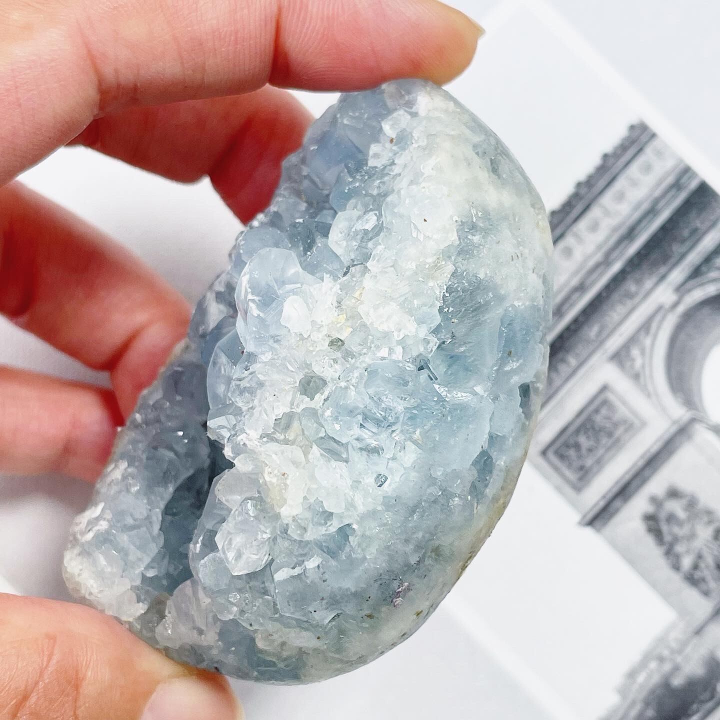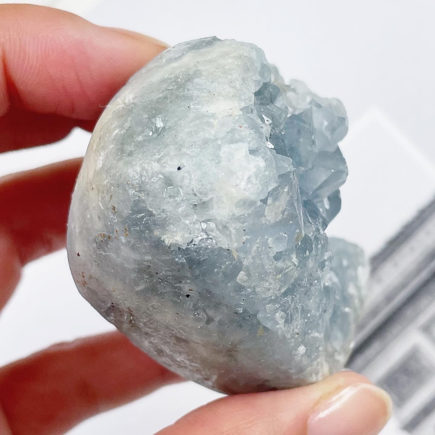 「セレスタイト(Celestine)」は和名で「天晴石」や「天青石」とも書き、語源はラテン語のcaelestisで、”天国のような石”という意味です。