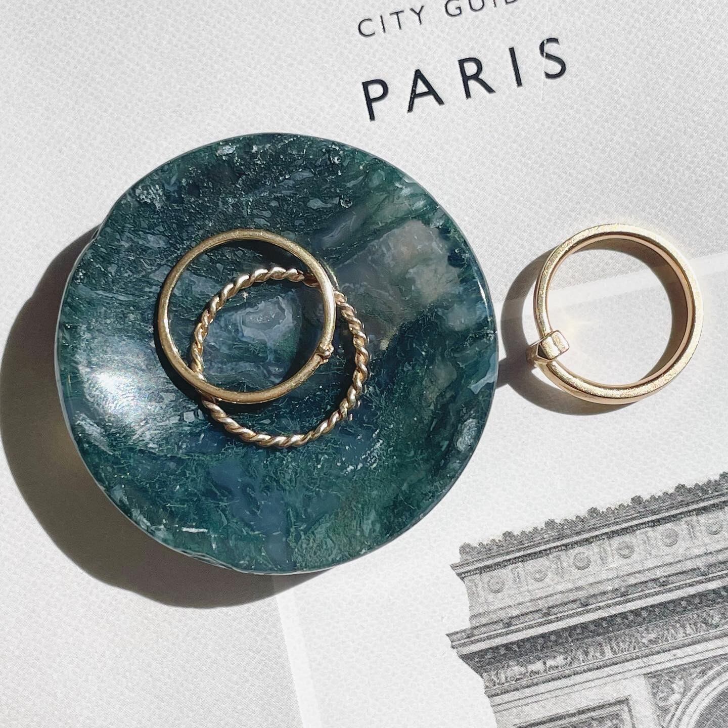 ボタニカルな深いグリーンと模様に目を奪われるモスアゲートのボウルです。