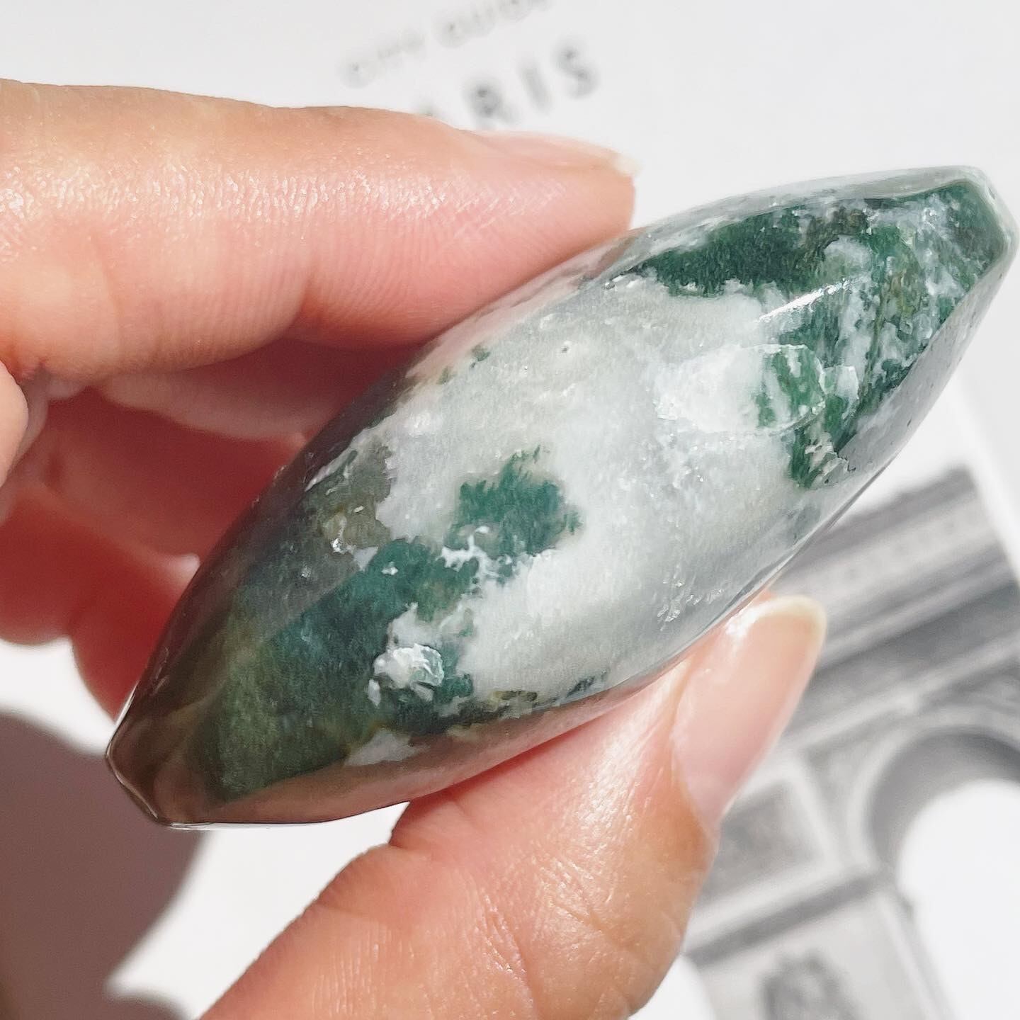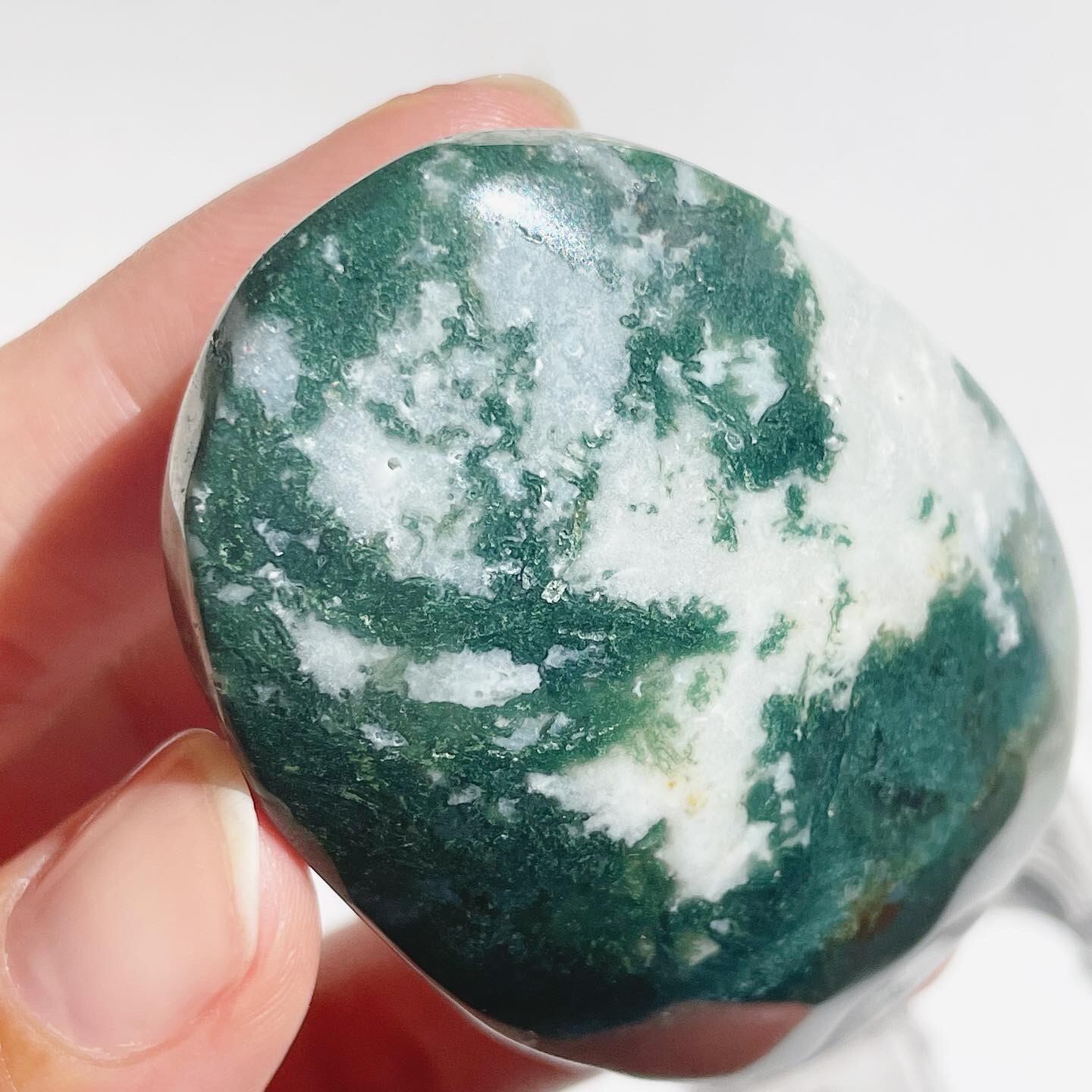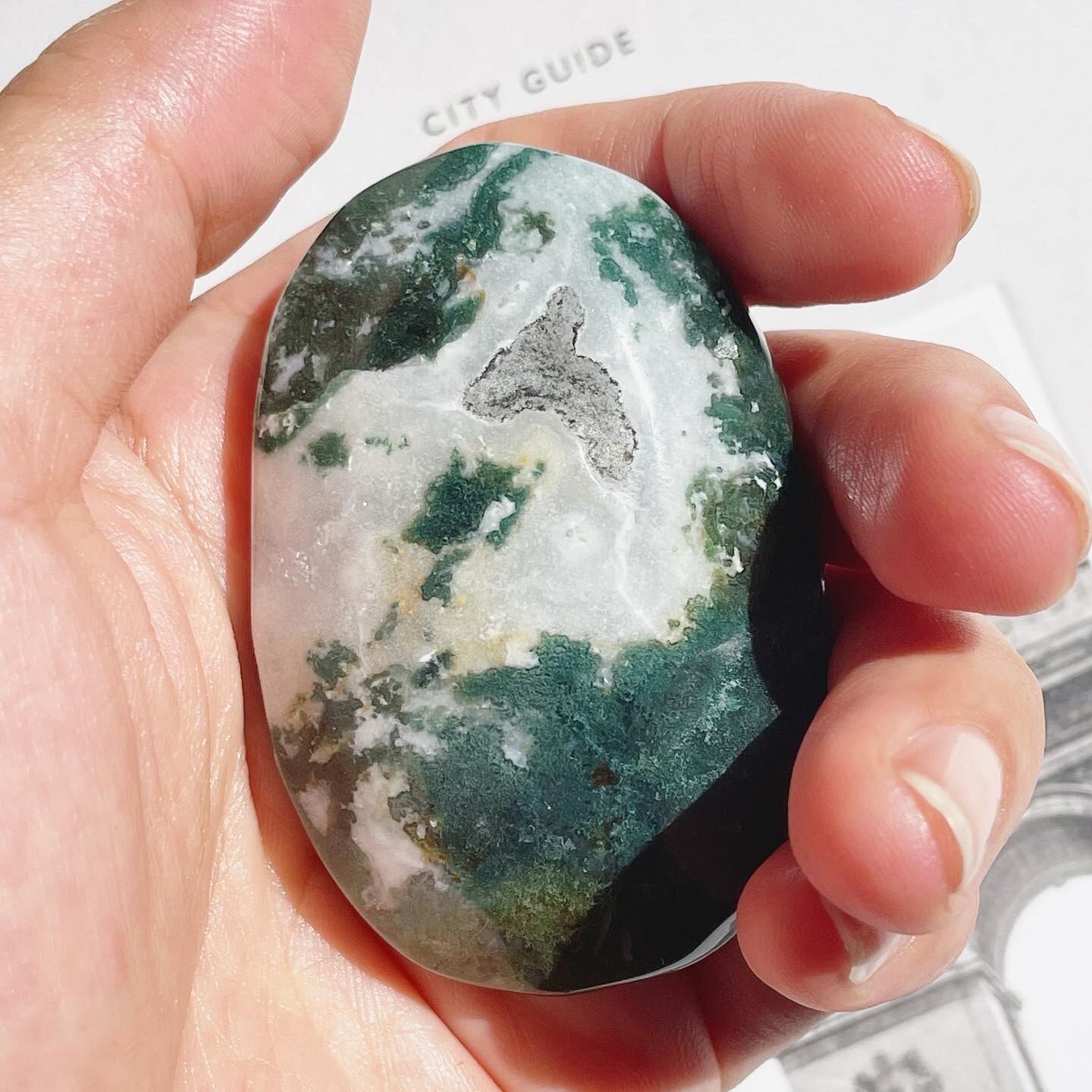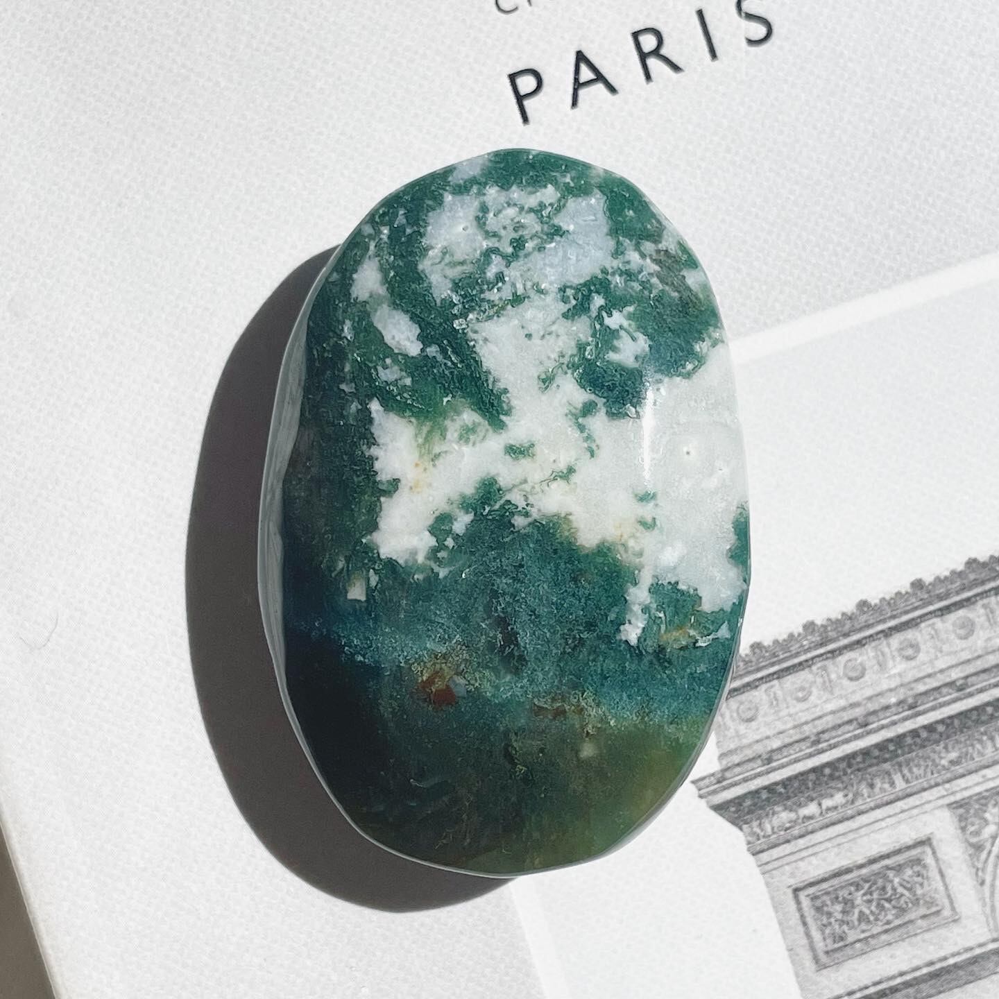 ボタニカルな深いグリーンと模様に目を奪われるモスアゲート。