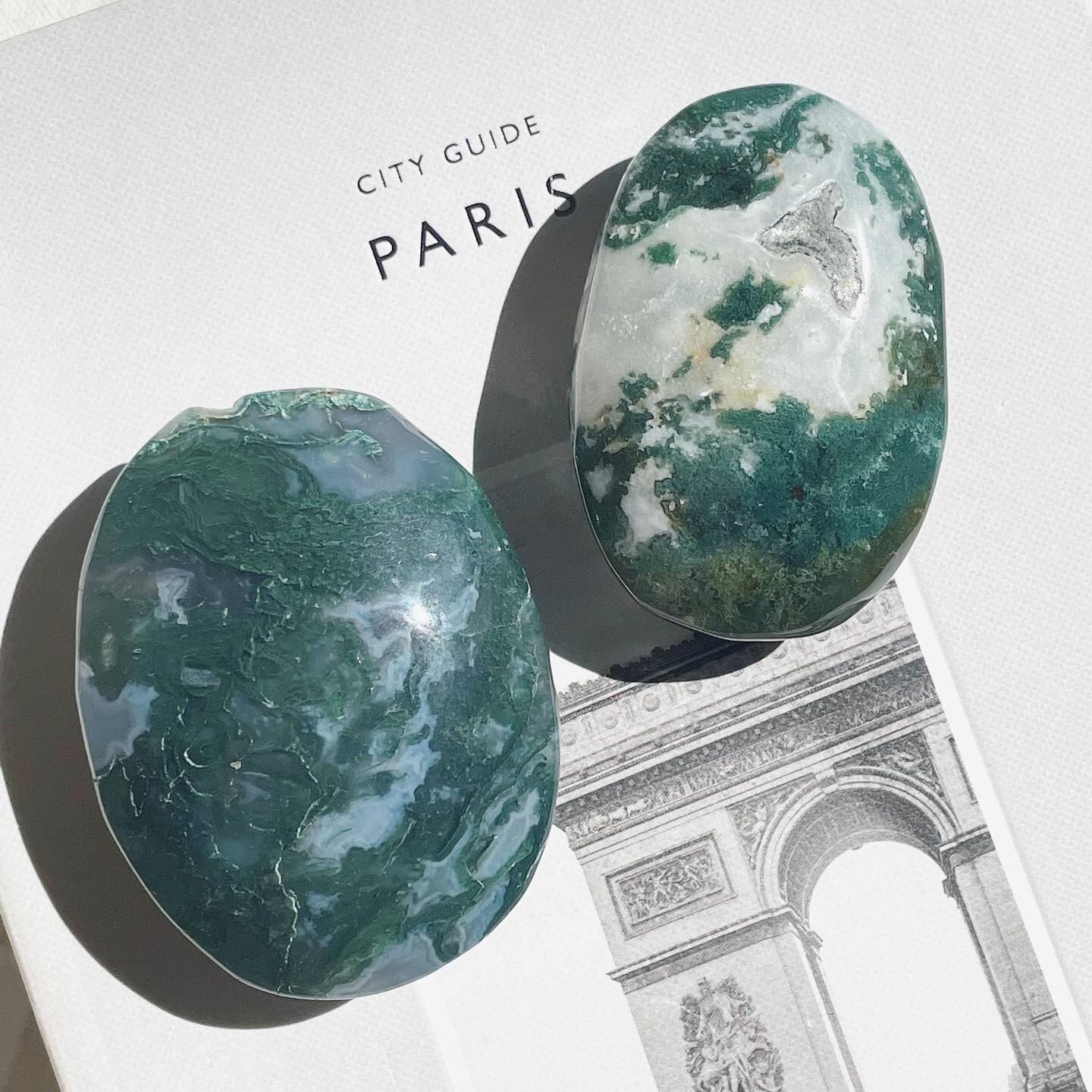 ボタニカルな深いグリーンと模様に目を奪われるモスアゲート。