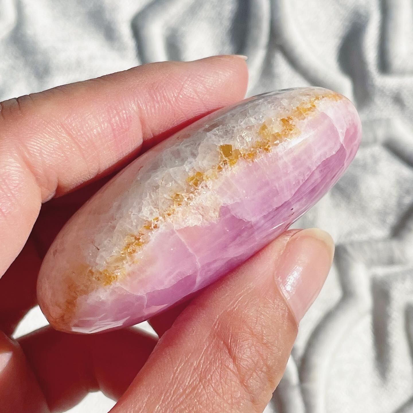 パキスタン産ピンクアラゴナイトのパームストーン。