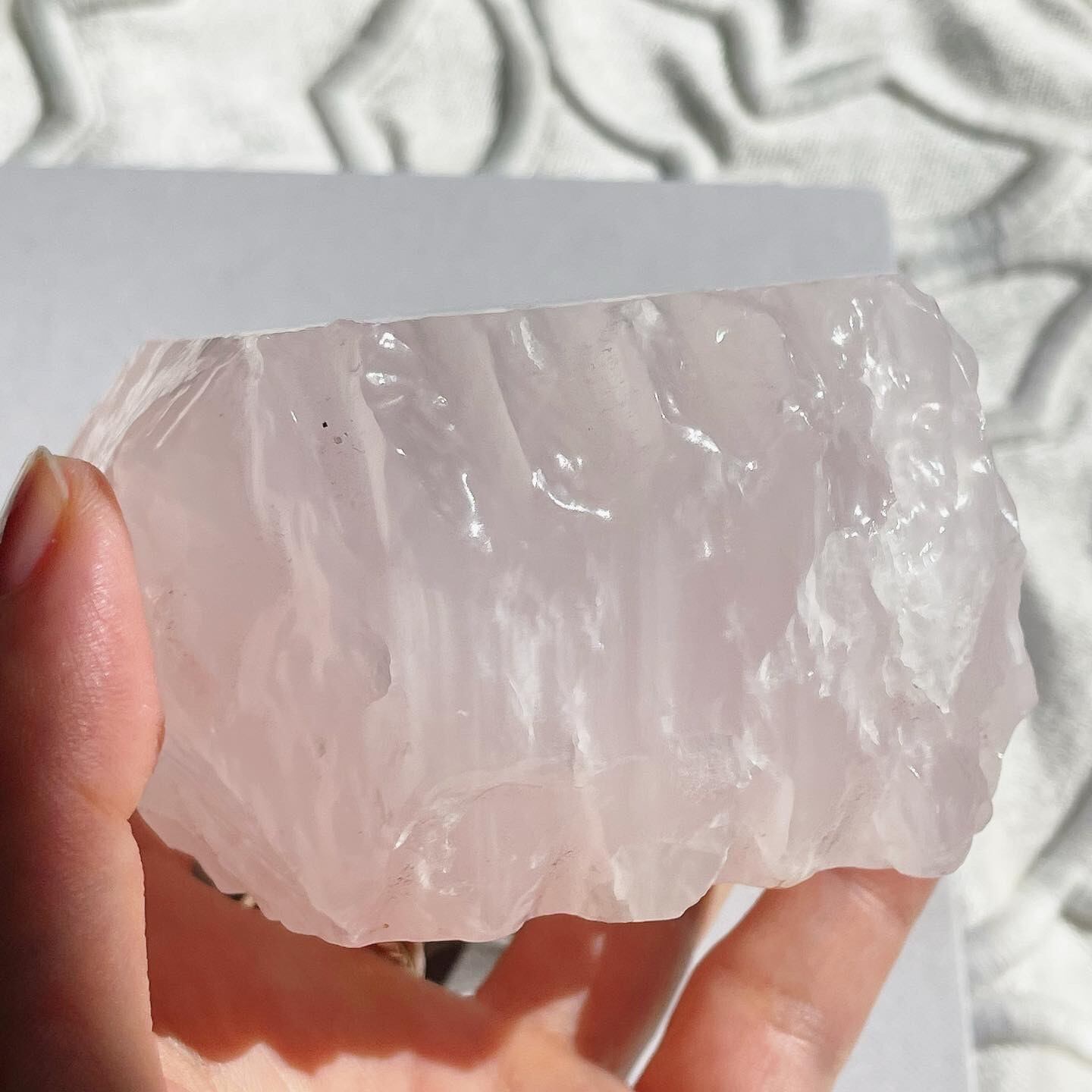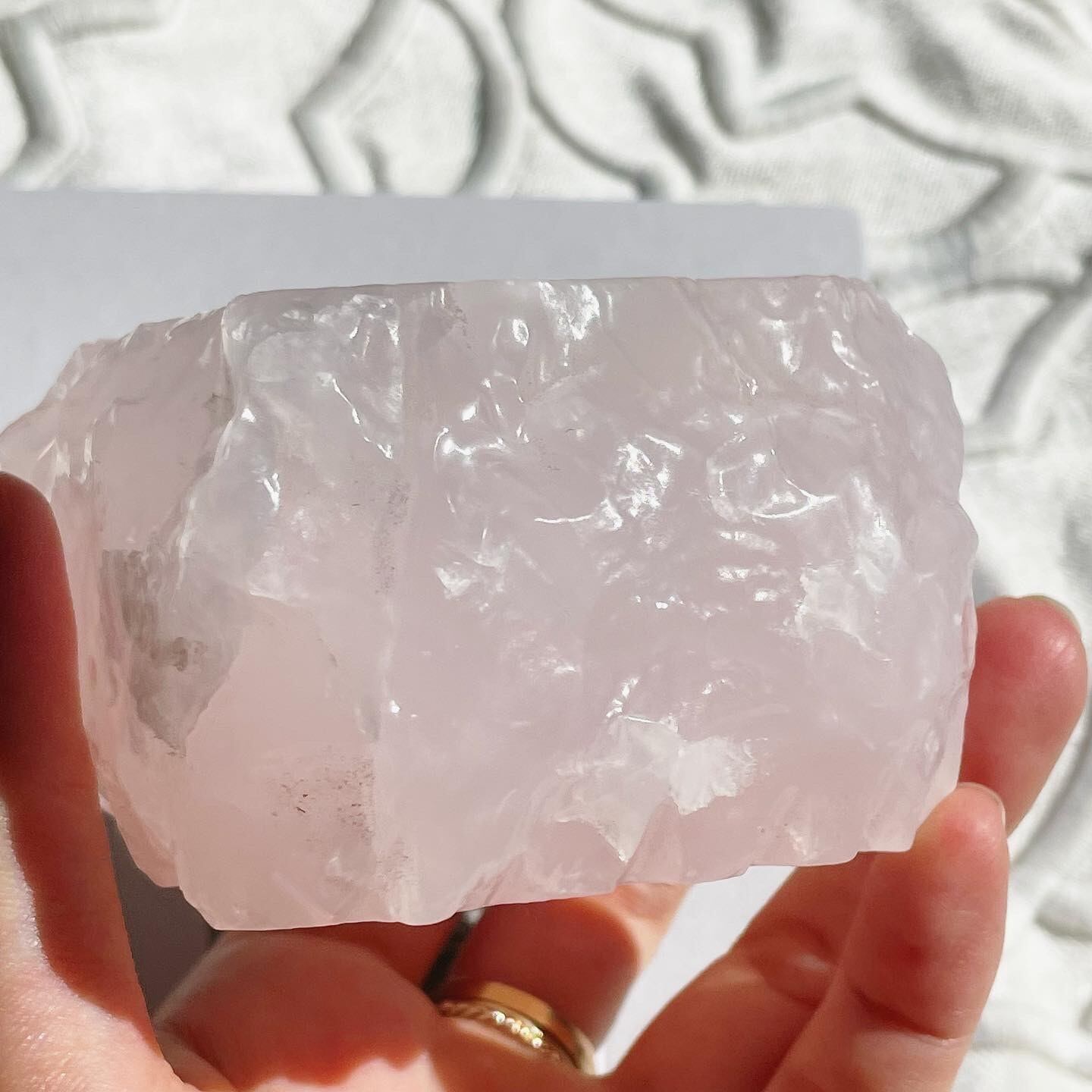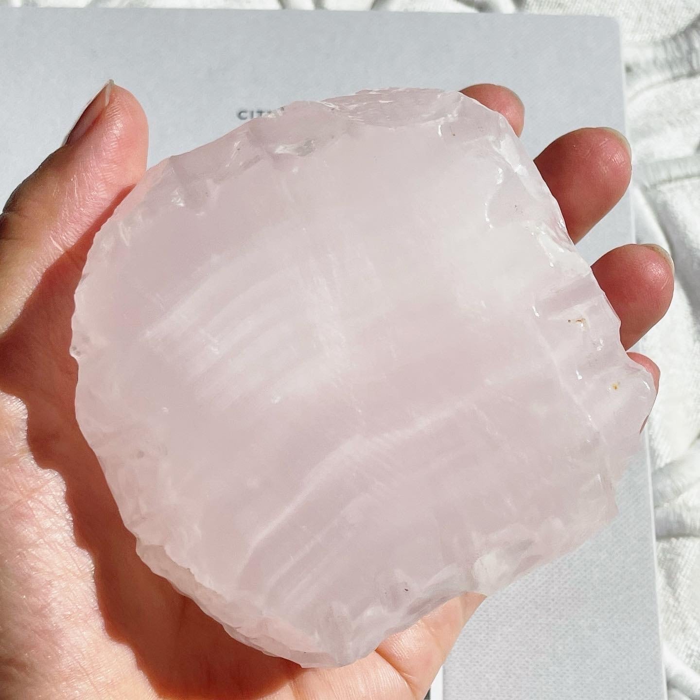 パキスタン産のピンクカルサイトのキャンドルスタンド。