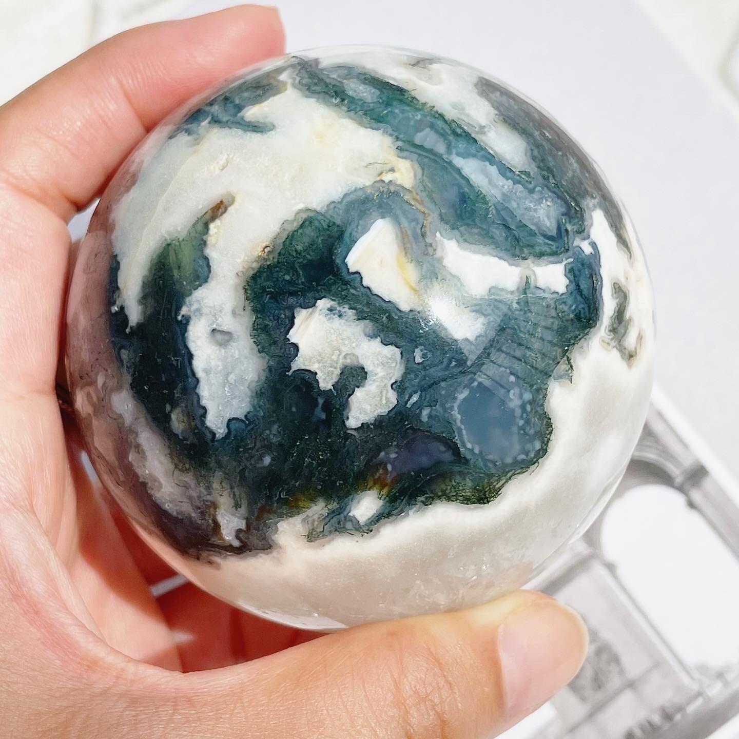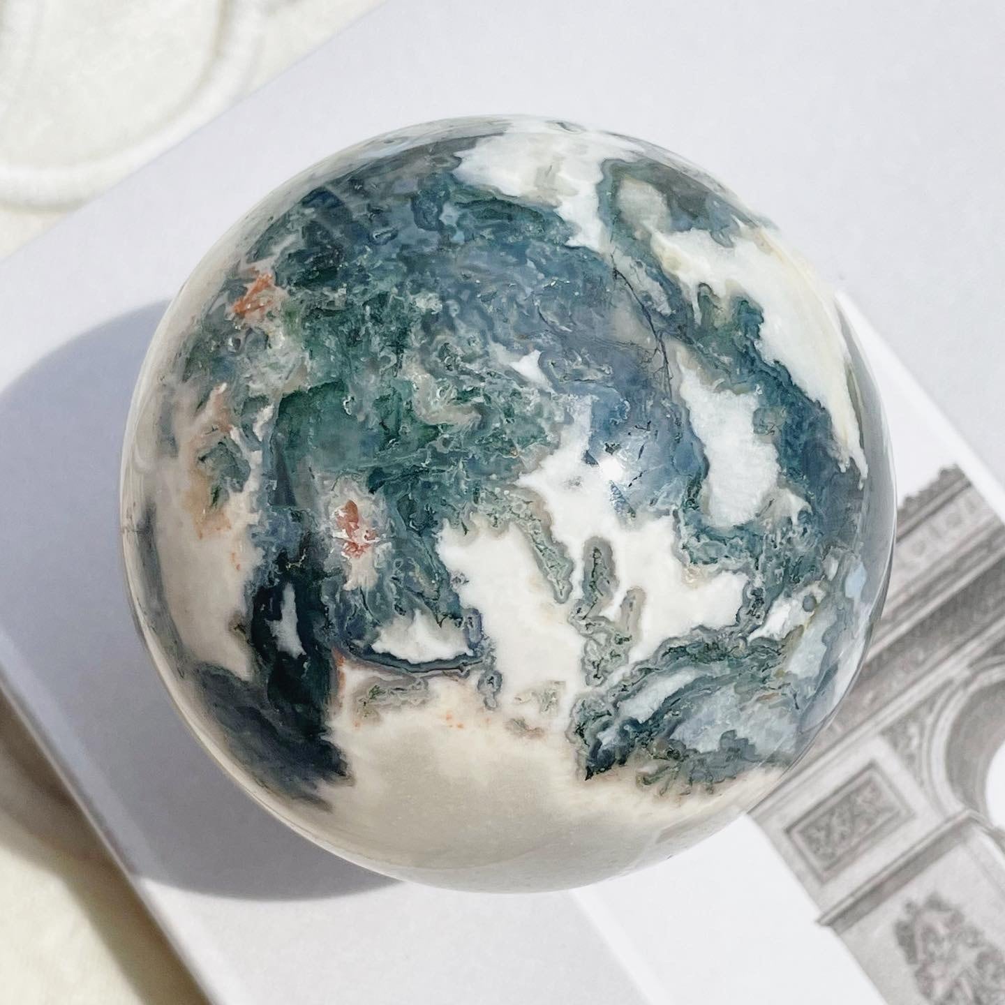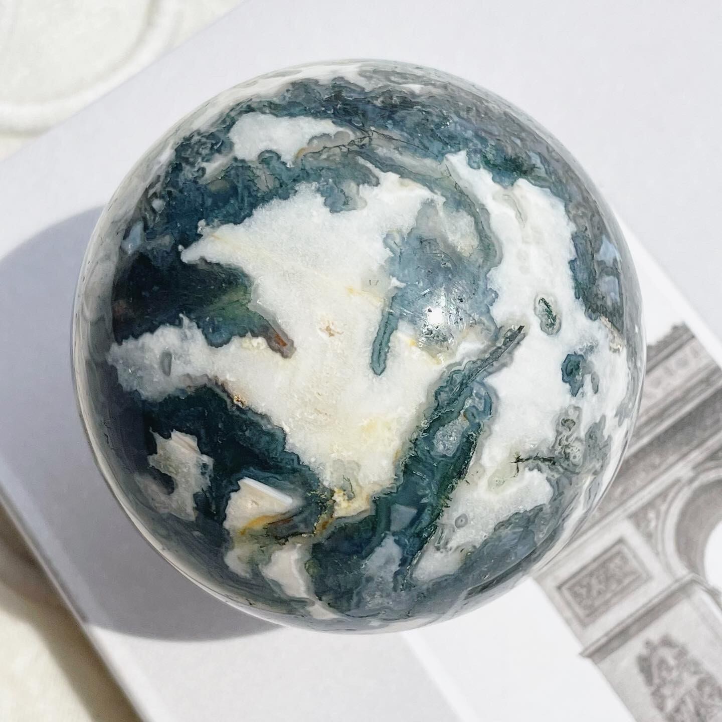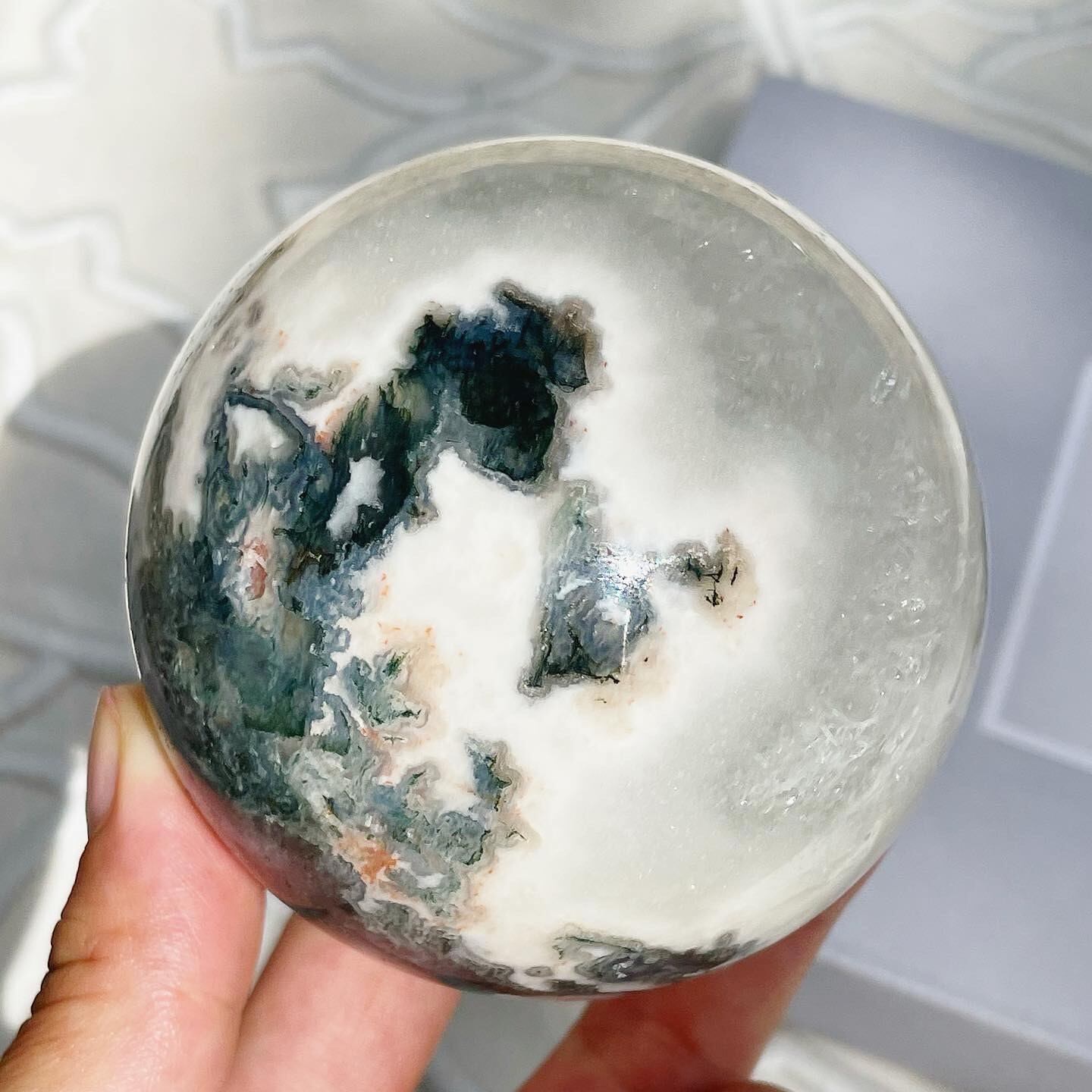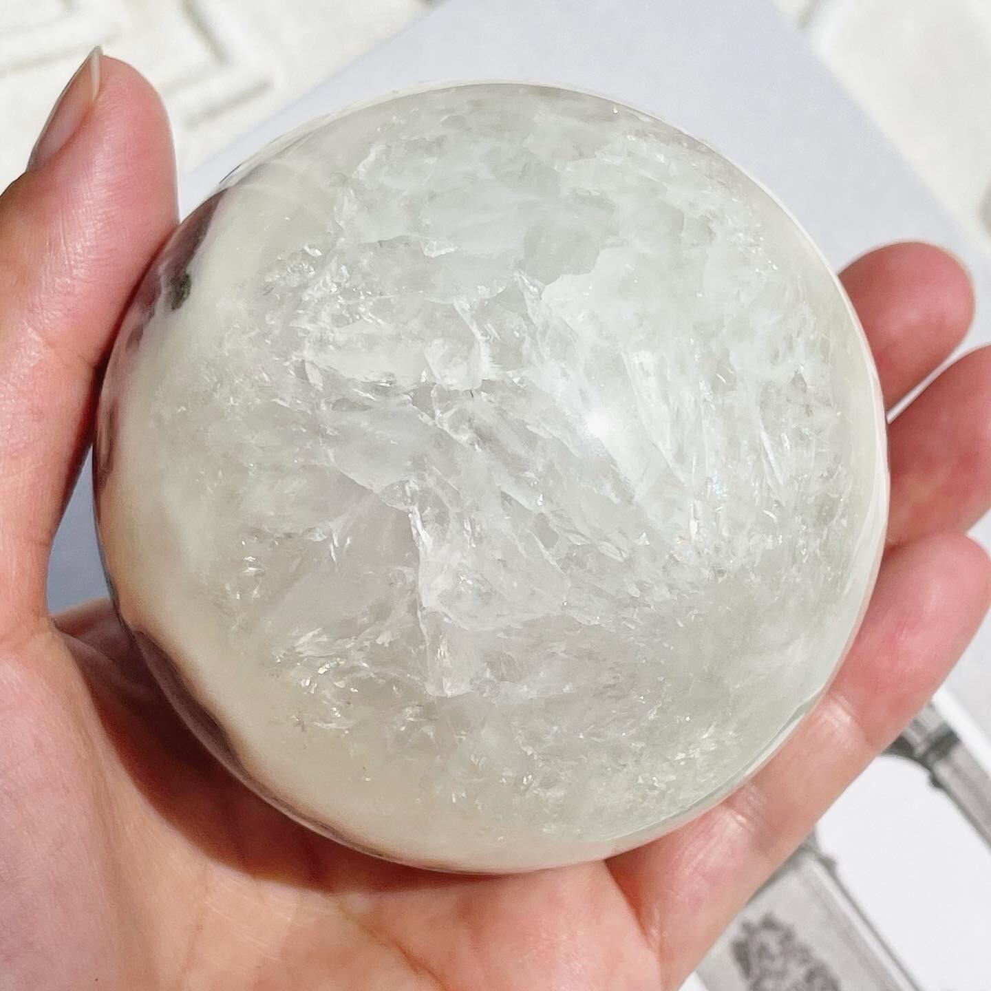 クォーツ化したホワイトがほぼ全面に見える視点があり、2面性のあるスフィアです。