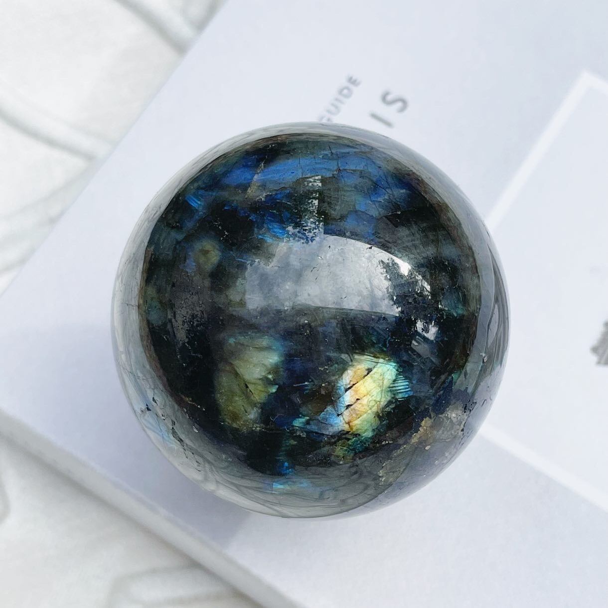 ダークグレイに青とゴールドのシラーが美しく入る、神秘的で新月のようなスフィア。