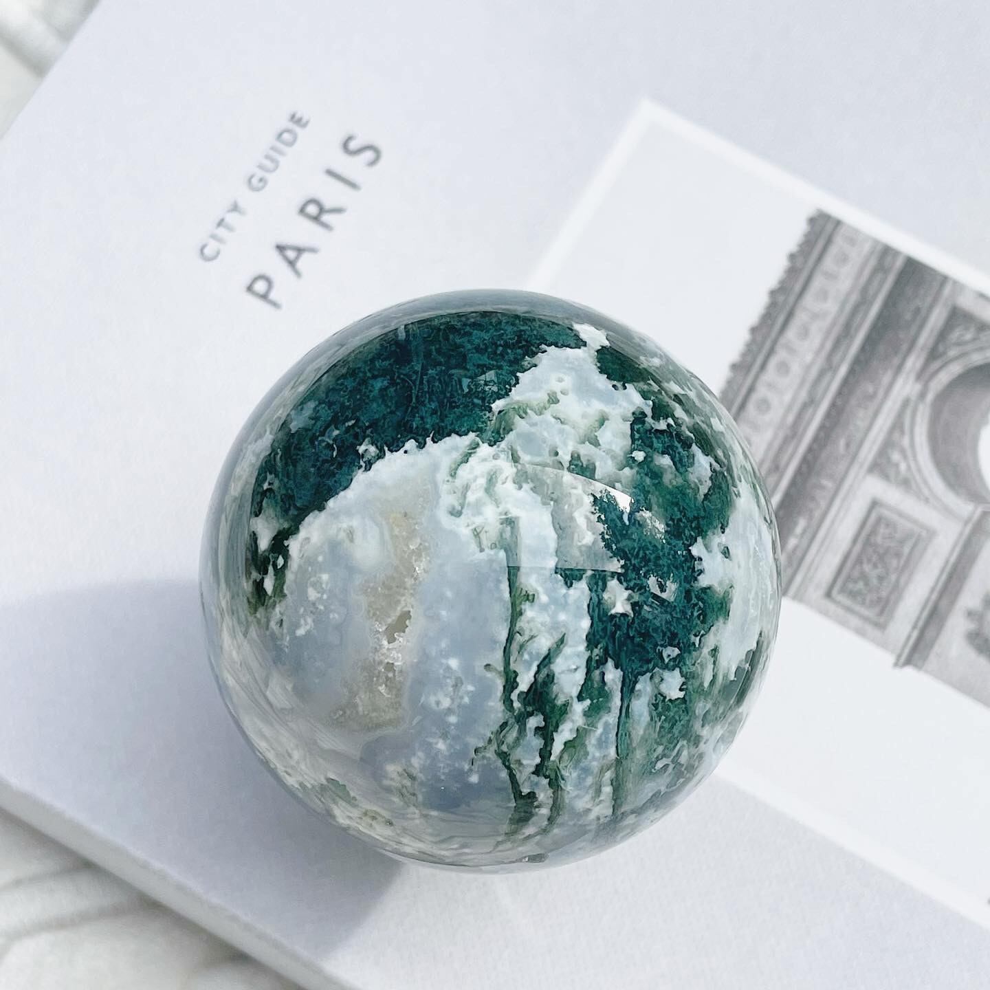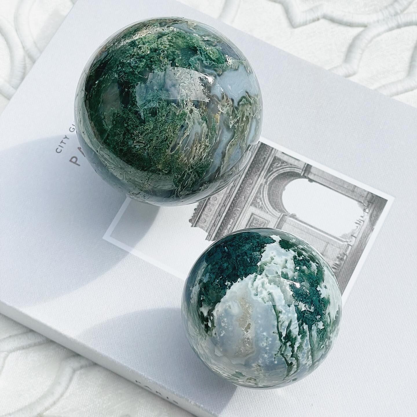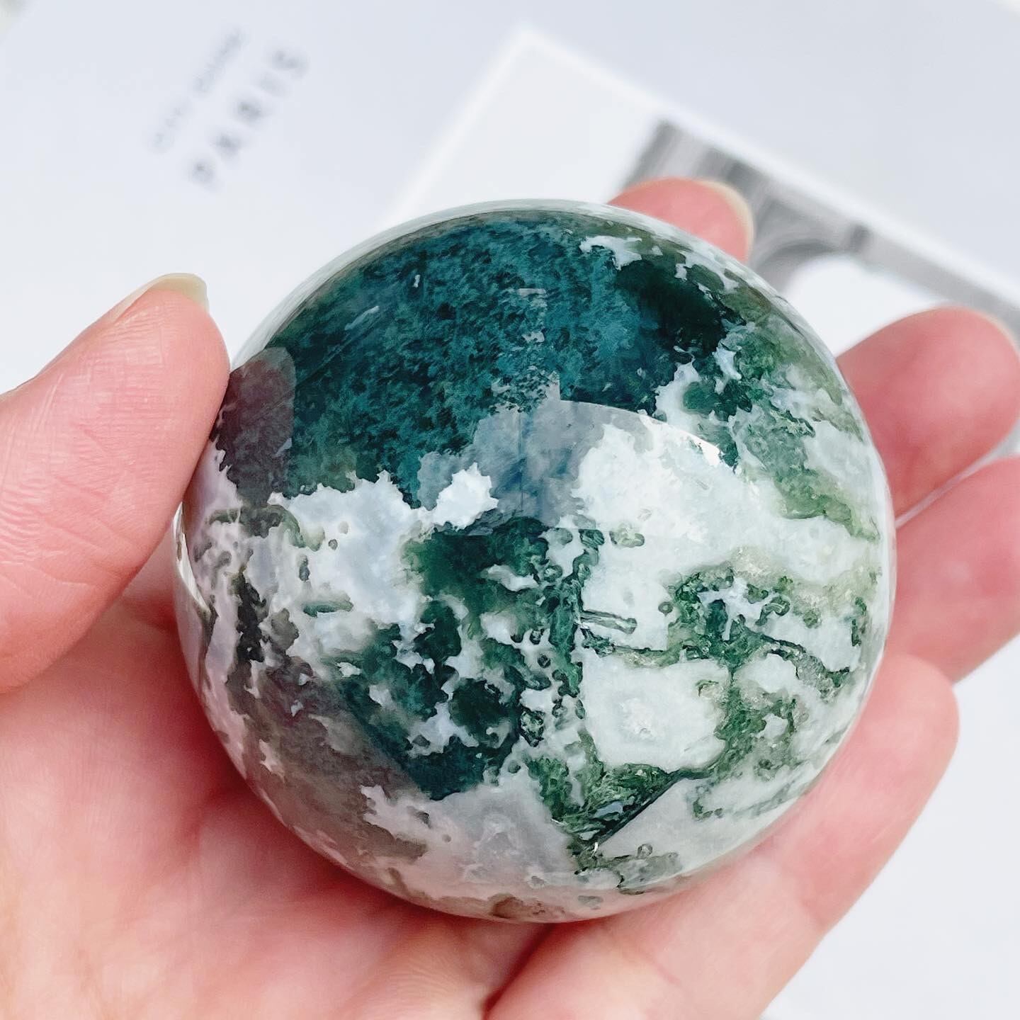白とグリーンのコントラストが美しいモスアゲート。
