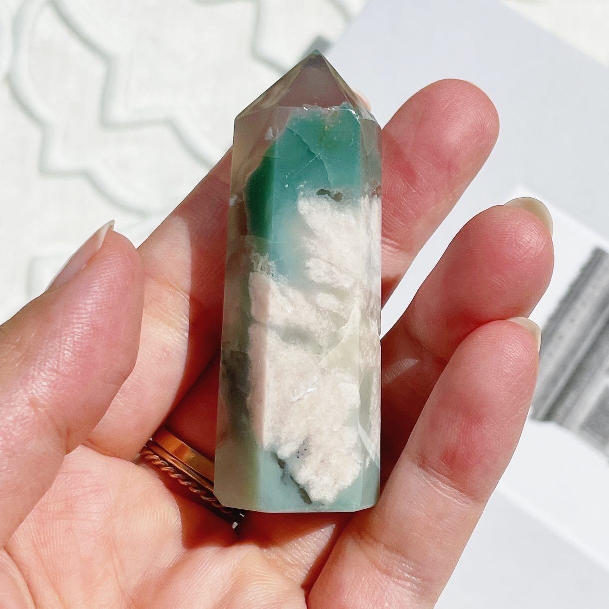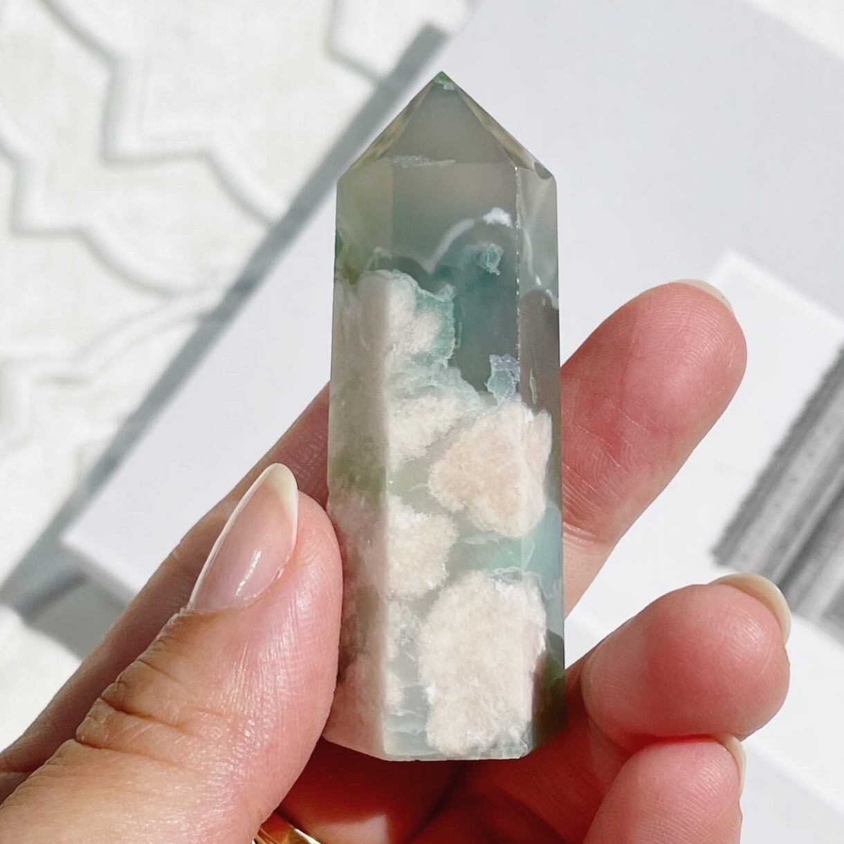 どの角度からみても美しい、Green Cherry Blossom Agateです♡