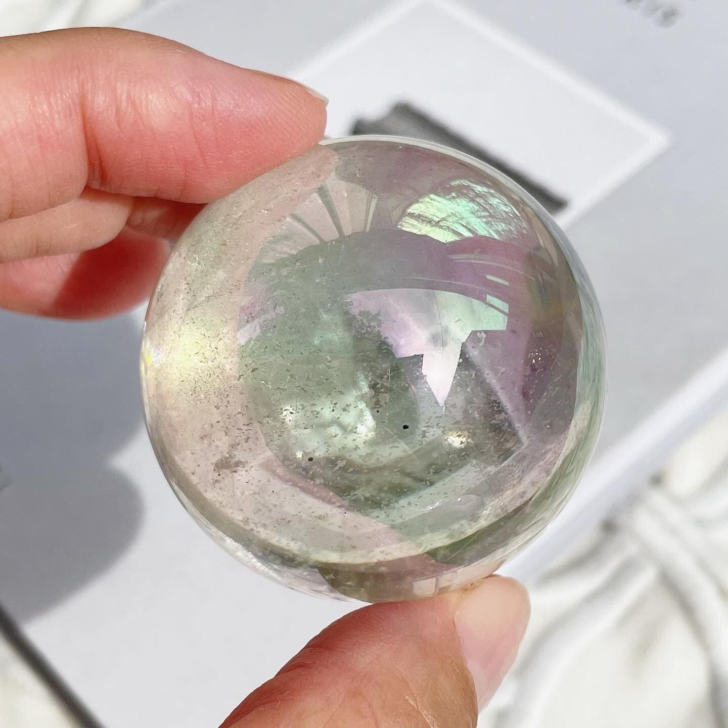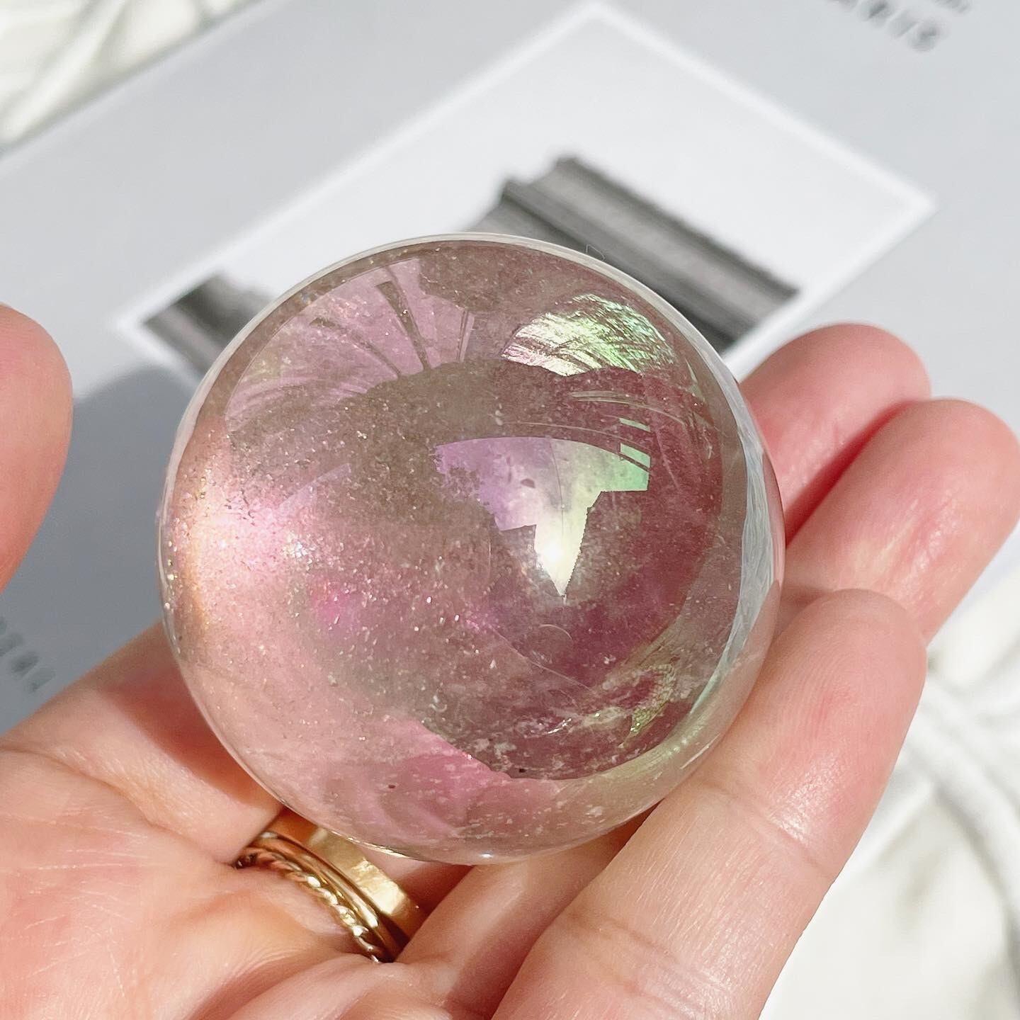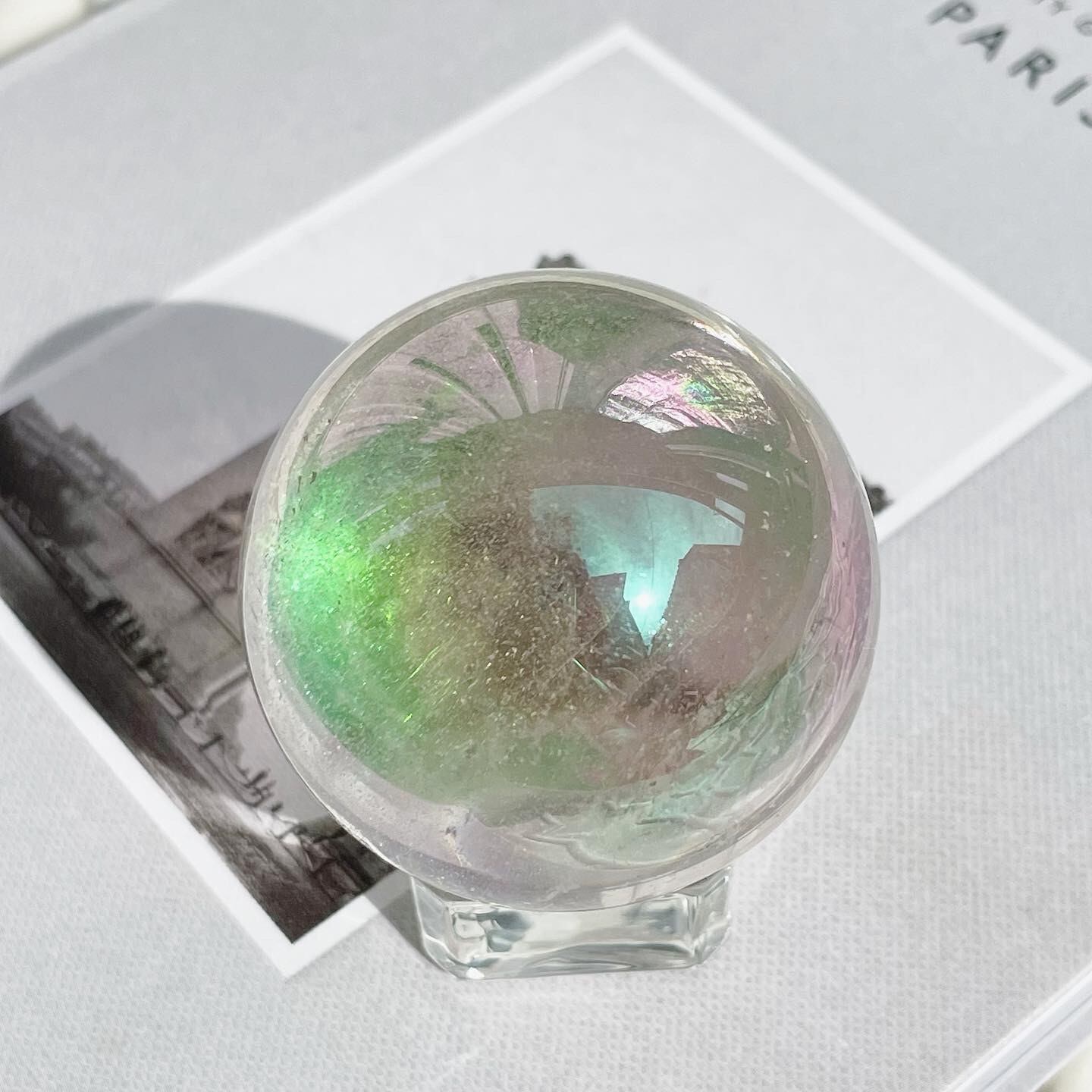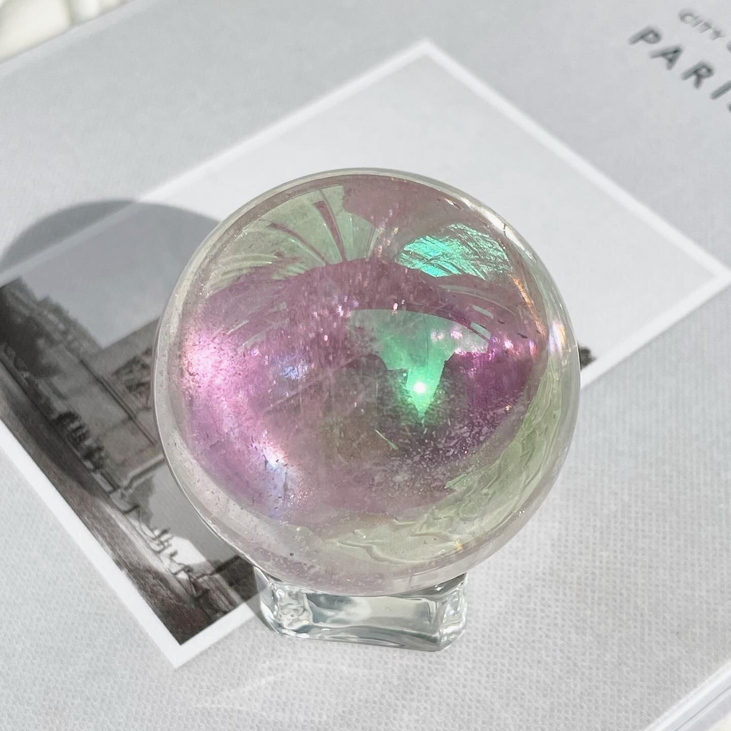 見る角度によって様々な色を見せてくれる、ハッピーなオーラをまとったスフィアです。