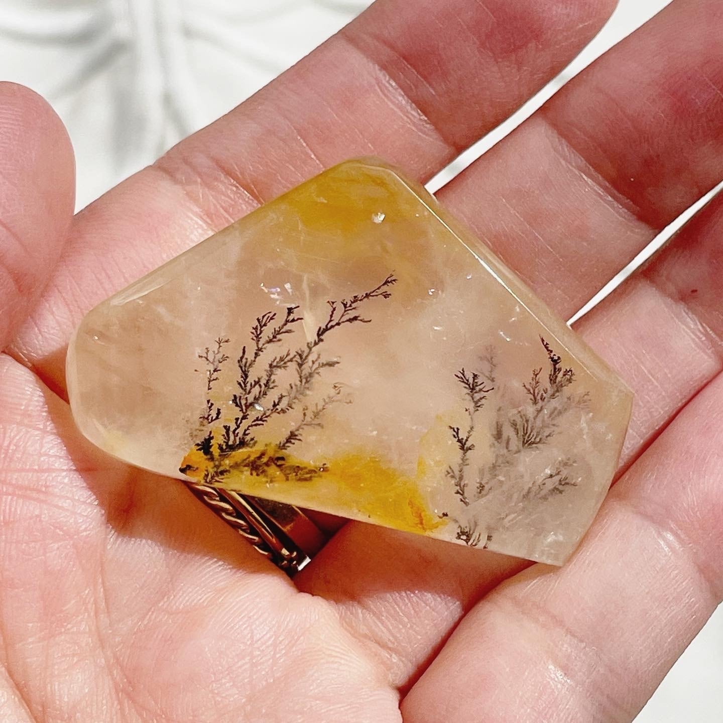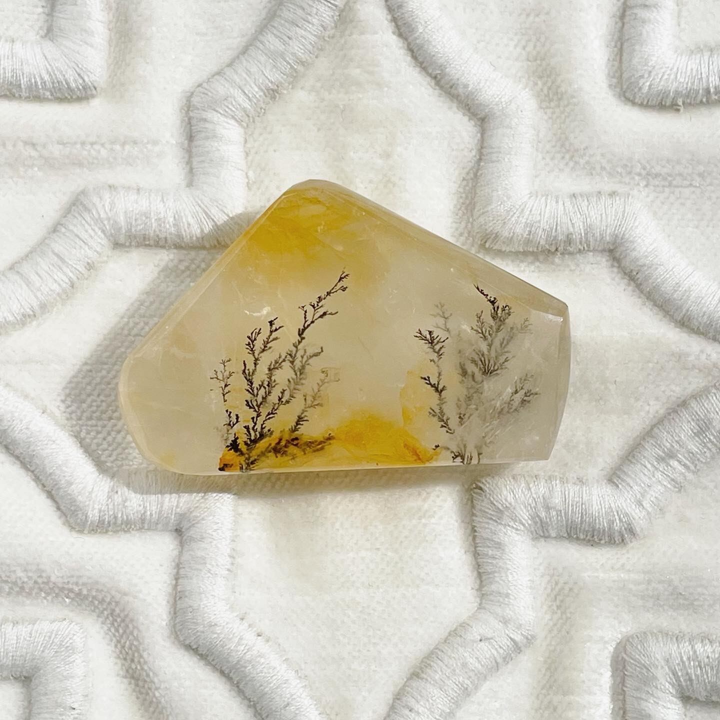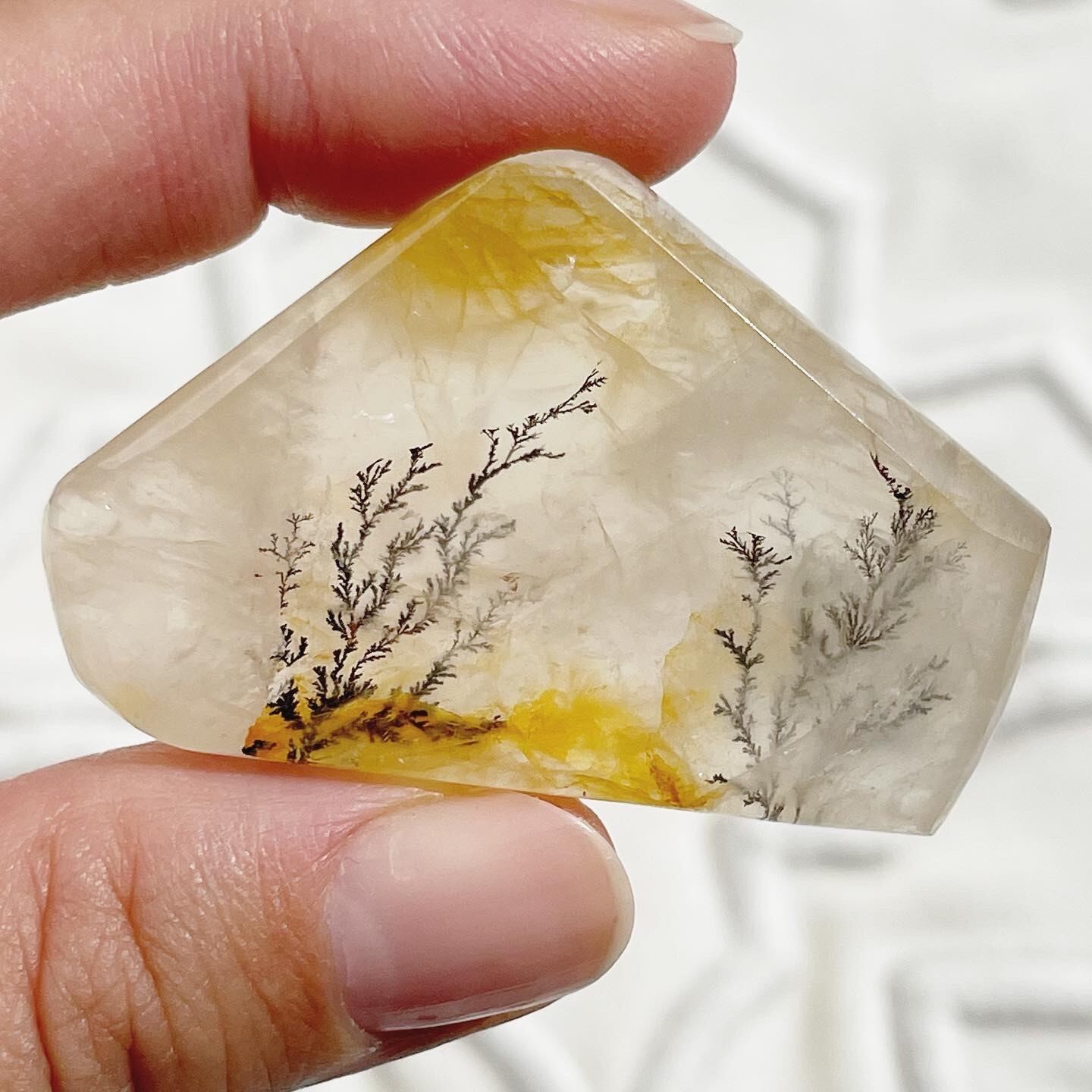 鉱物(酸化マンガン)のインクルージョンによる葉っぱや樹木のような模様が特徴です。