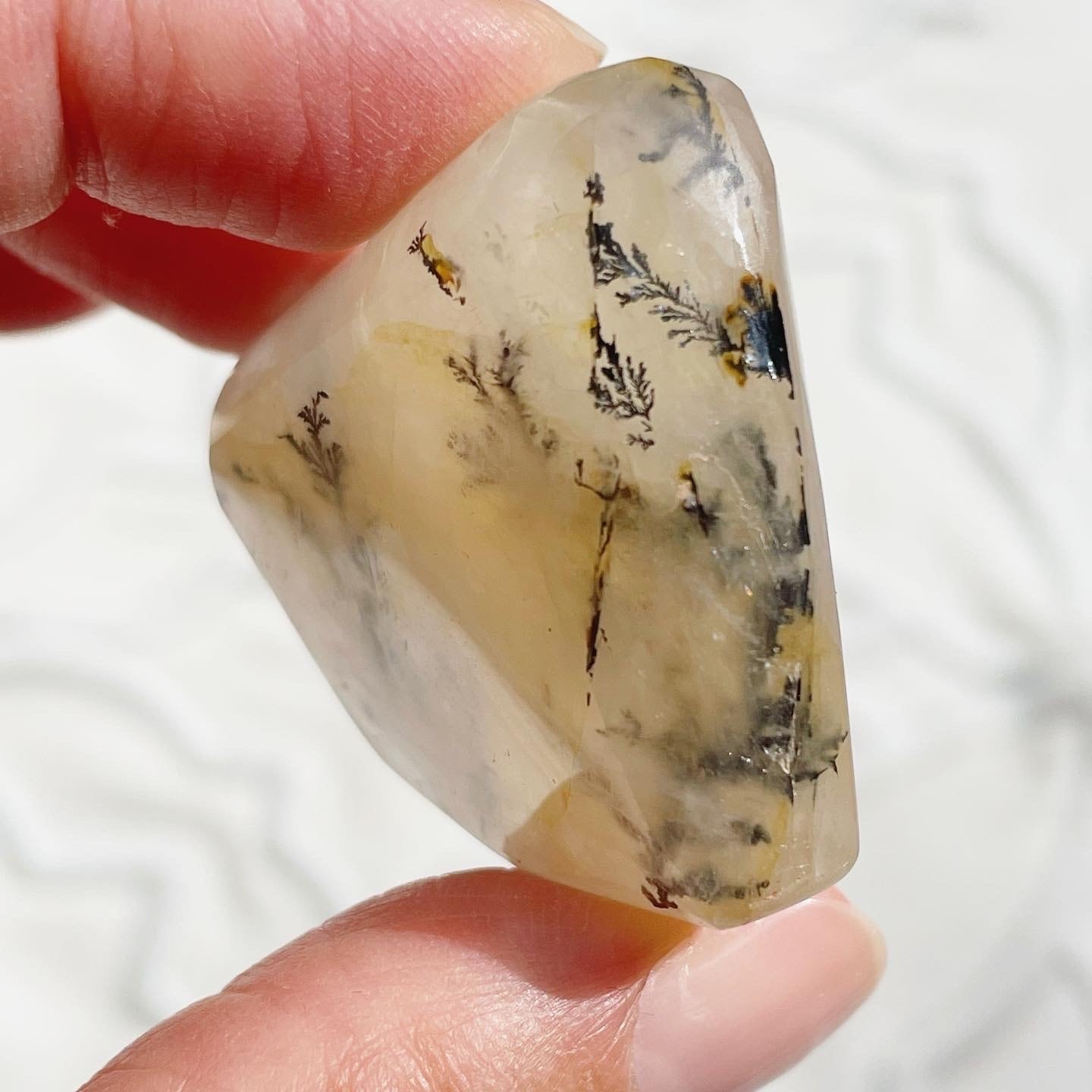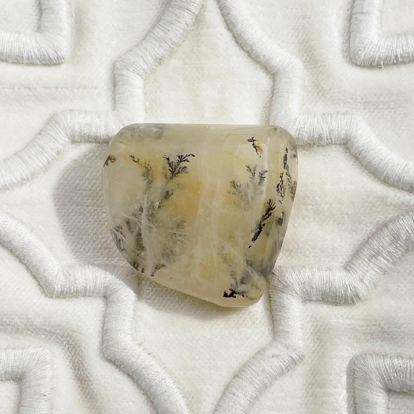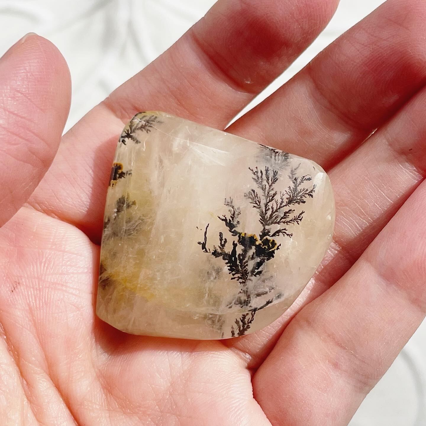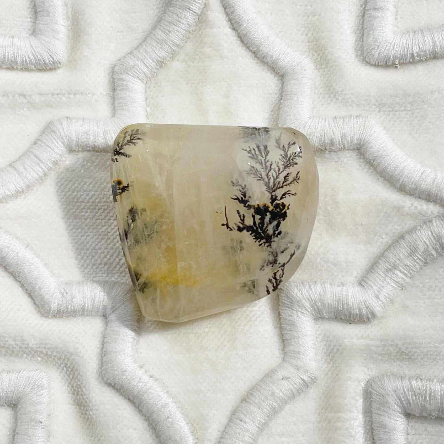 鉱物(酸化マンガン)のインクルージョンによる葉っぱや樹木のような模様が特徴です。