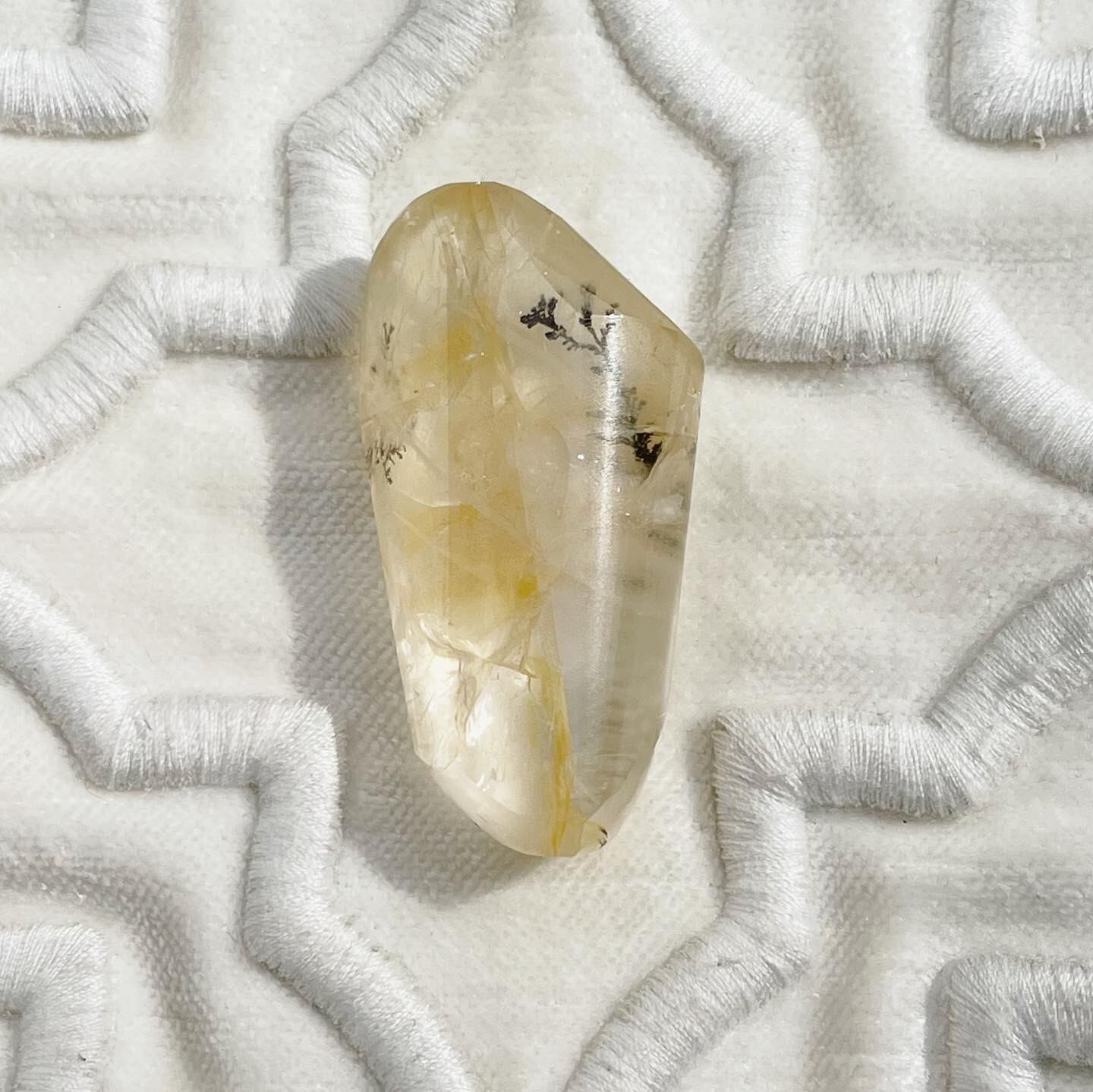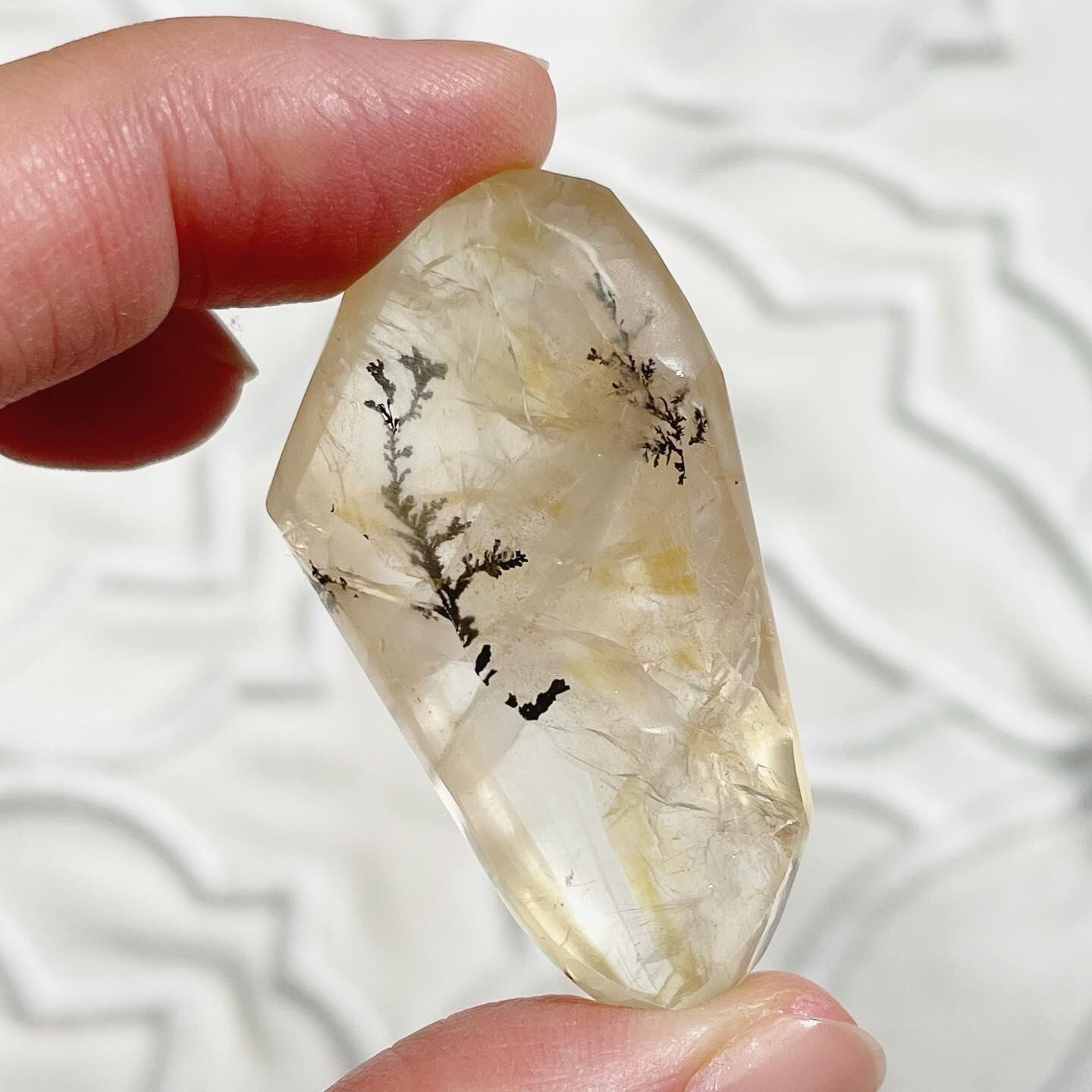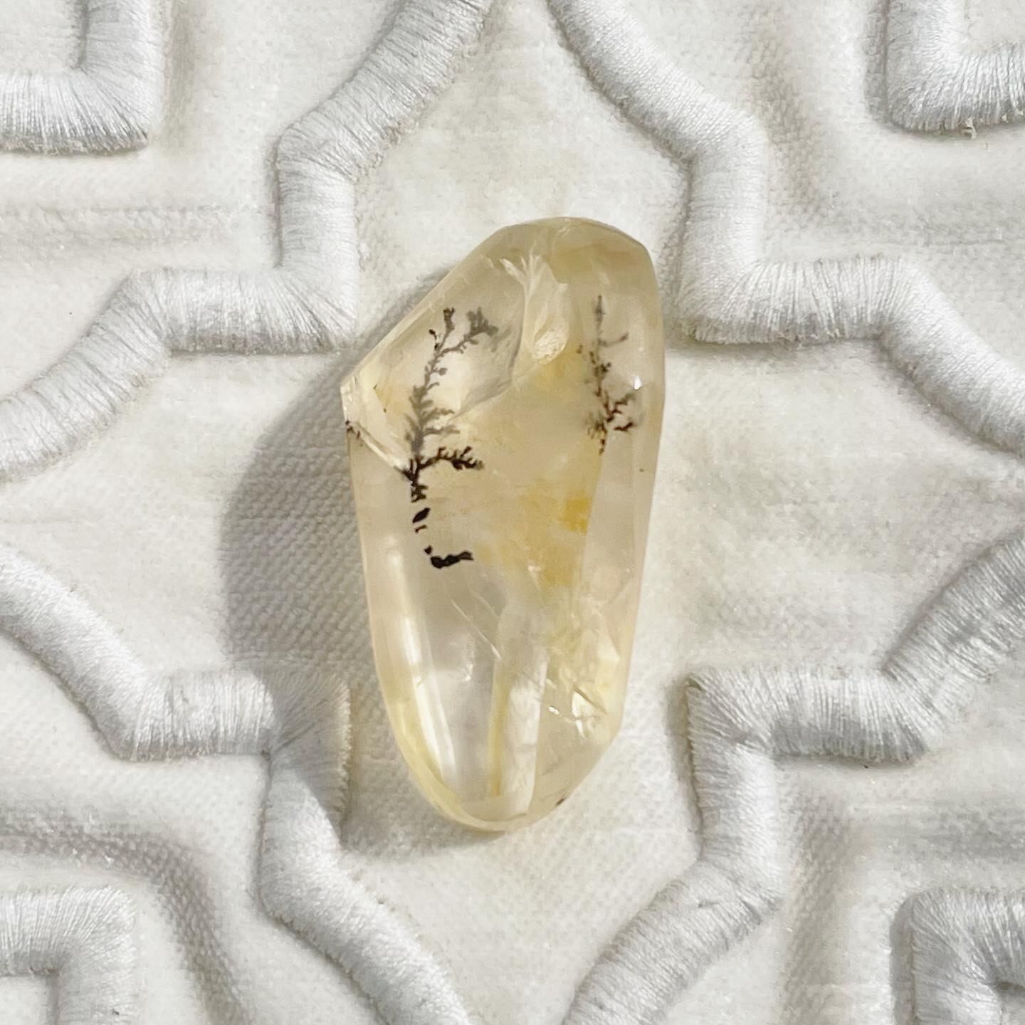 鉱物(酸化マンガン)のインクルージョンによる葉っぱや樹木のような模様が特徴です。