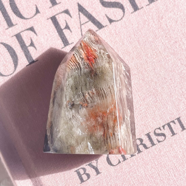 半球がクォーツ、半球にピンクとグリーンを基調としたインクルージョン。