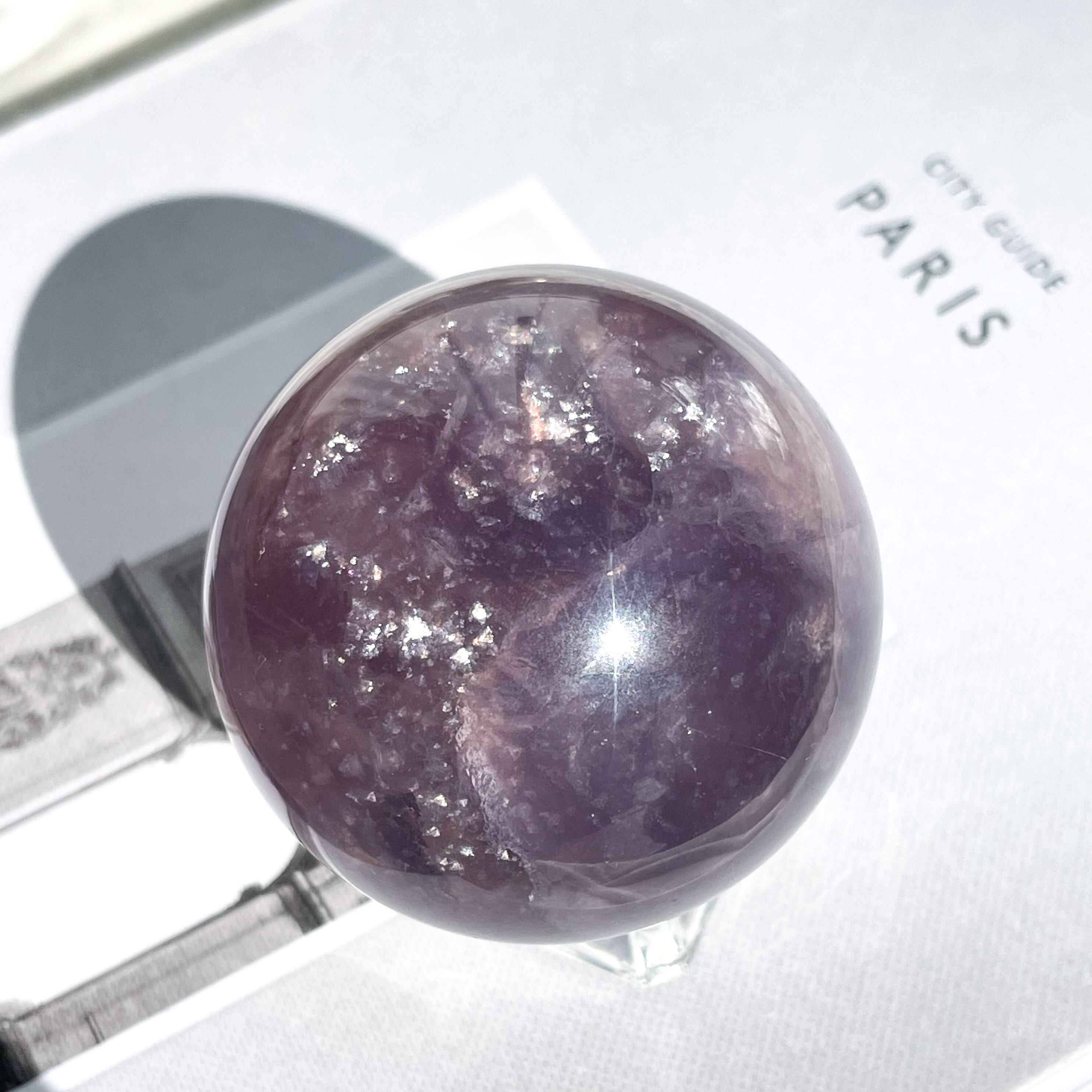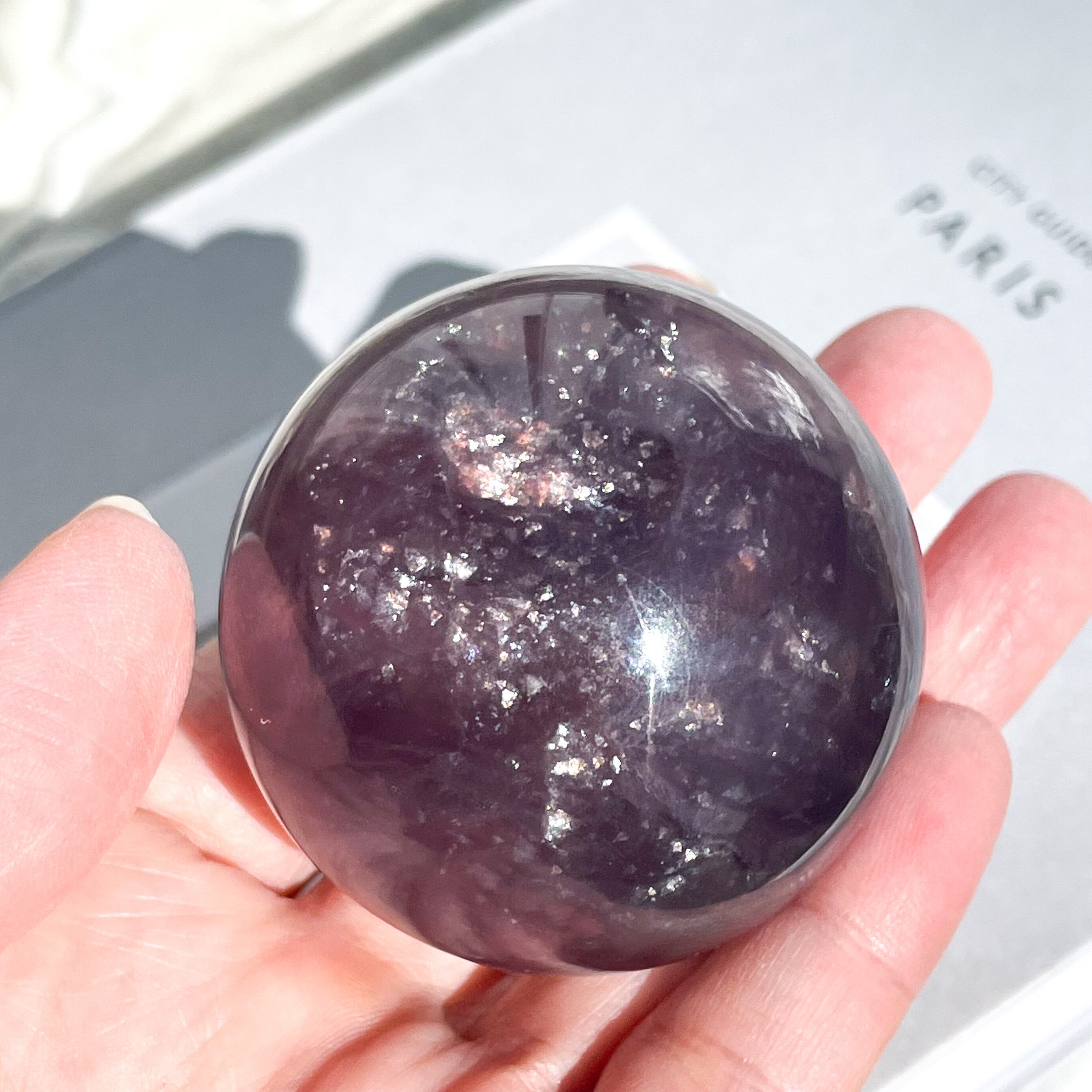 マイカ入りパープルフローライトのスフィア。