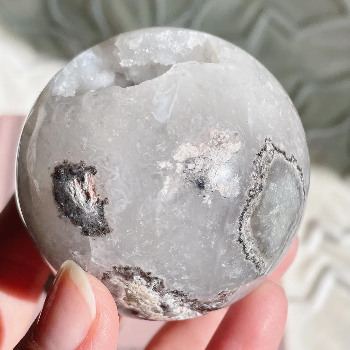 内側のドゥルージーに目を奪われる、ホワイトアゲートの笑口スフィア♡
