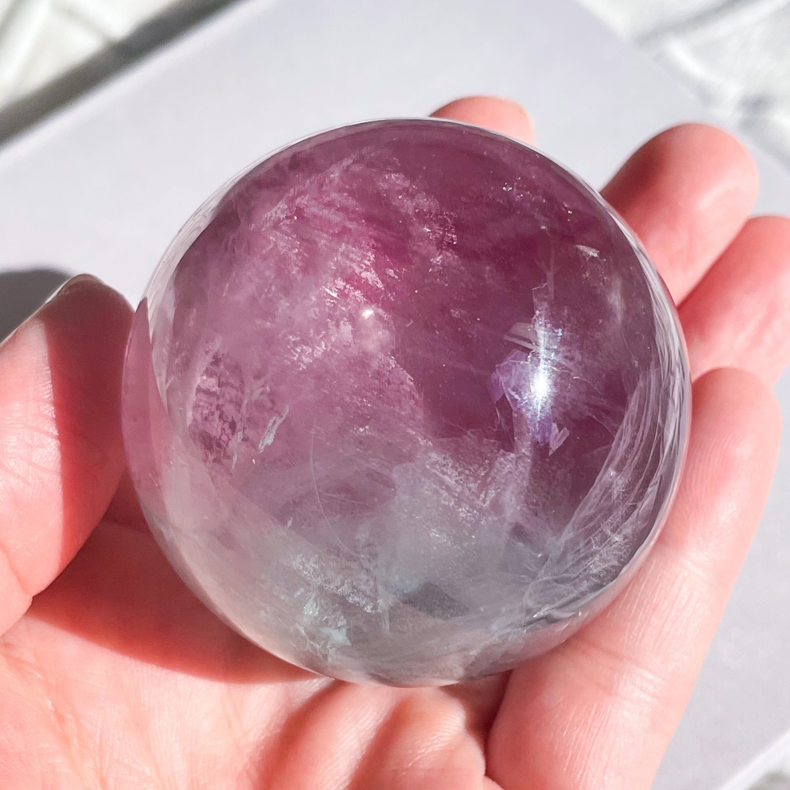ピンクの細いラインがいくつもはいっており、フローライトらしい色の層も楽しめます♡