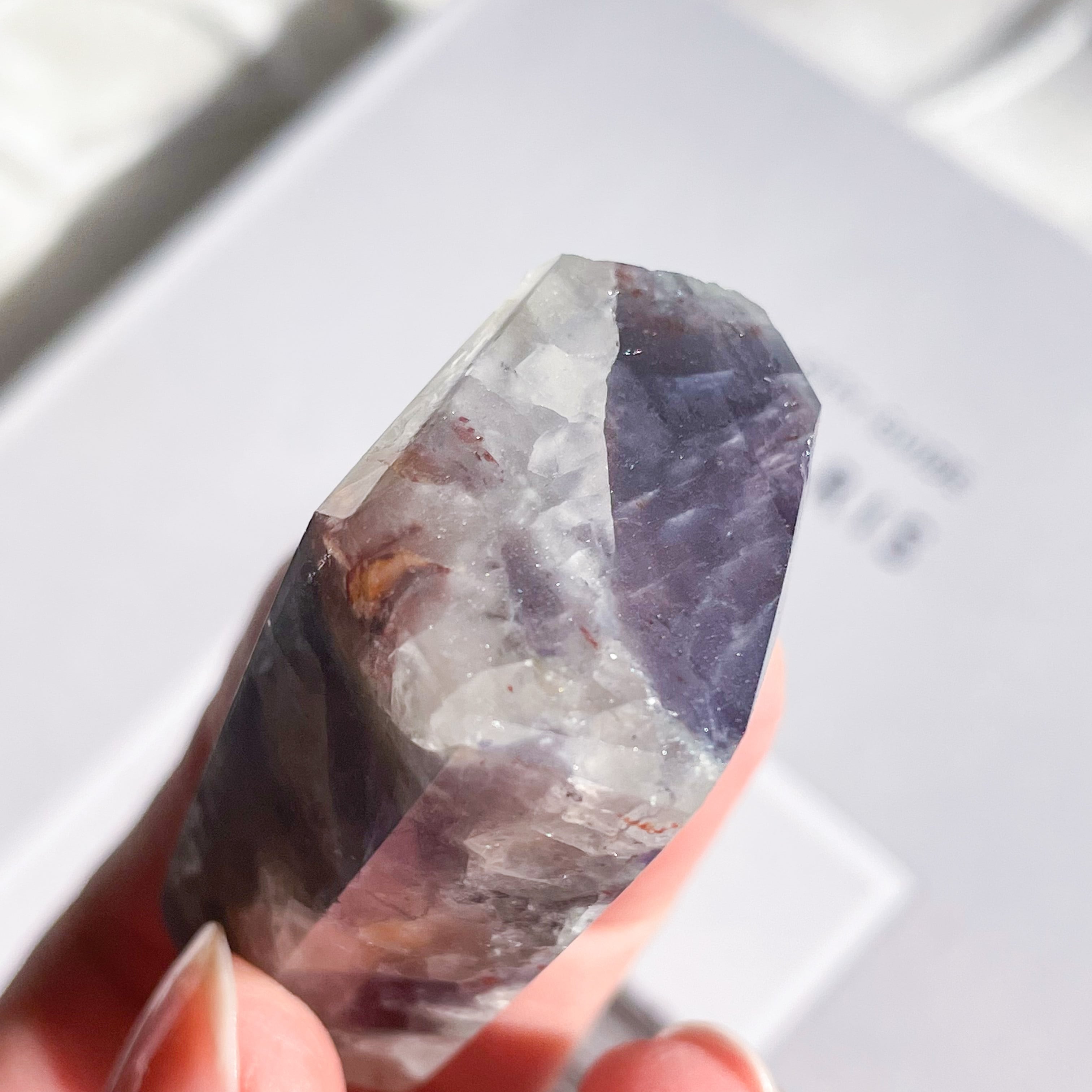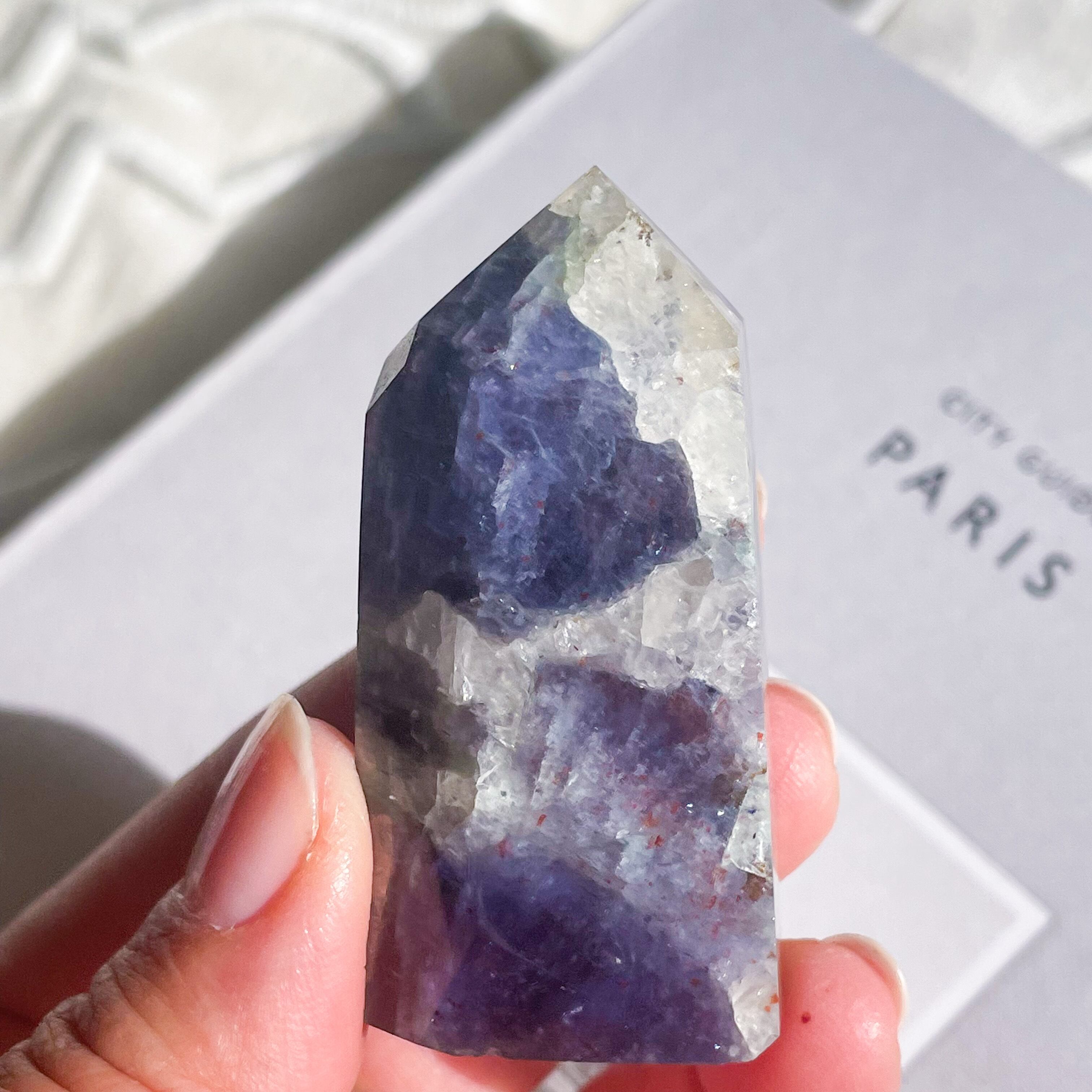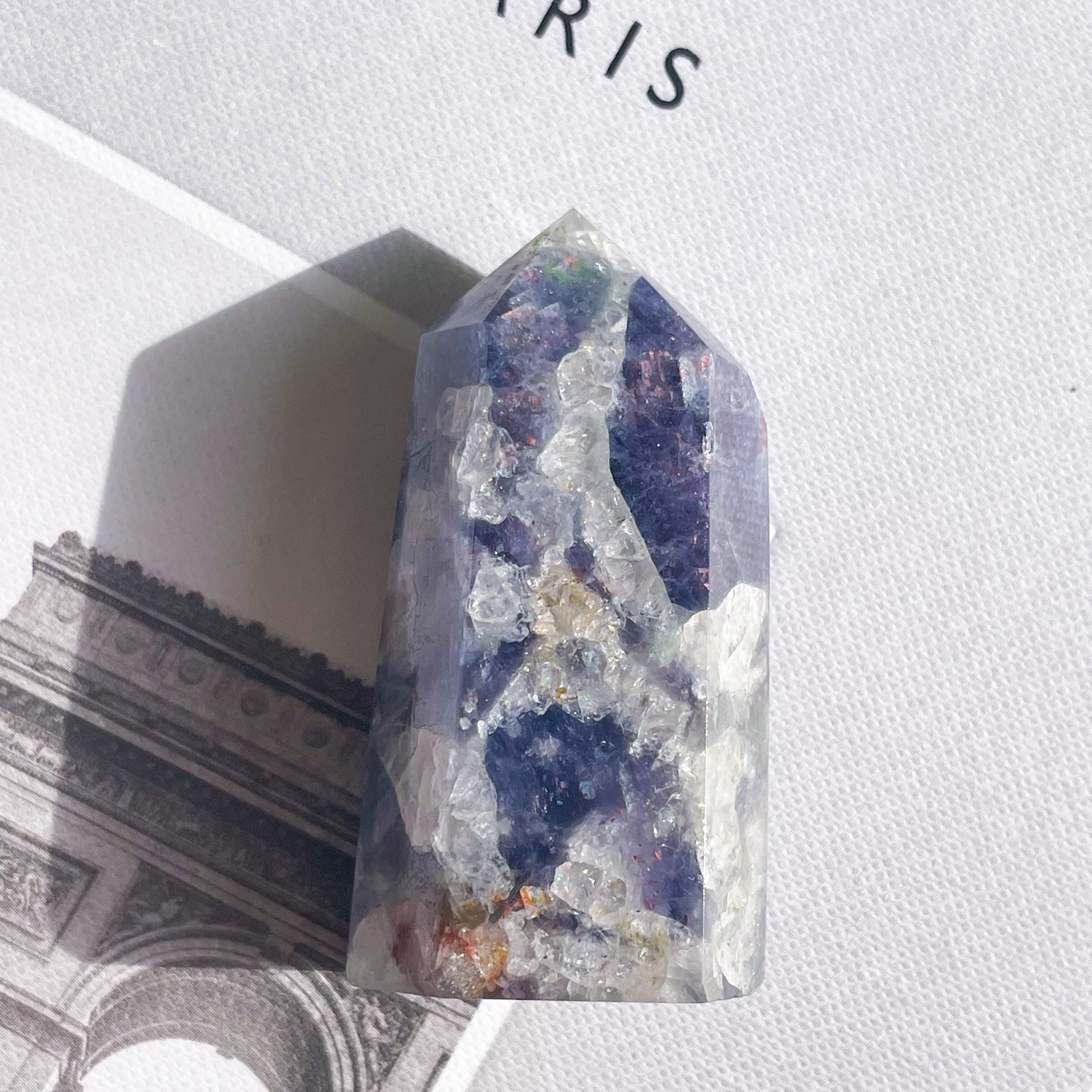クォーツに、アイオライトが美しくはめ込まれたような、ステンドグラスを思わせるポイントです。