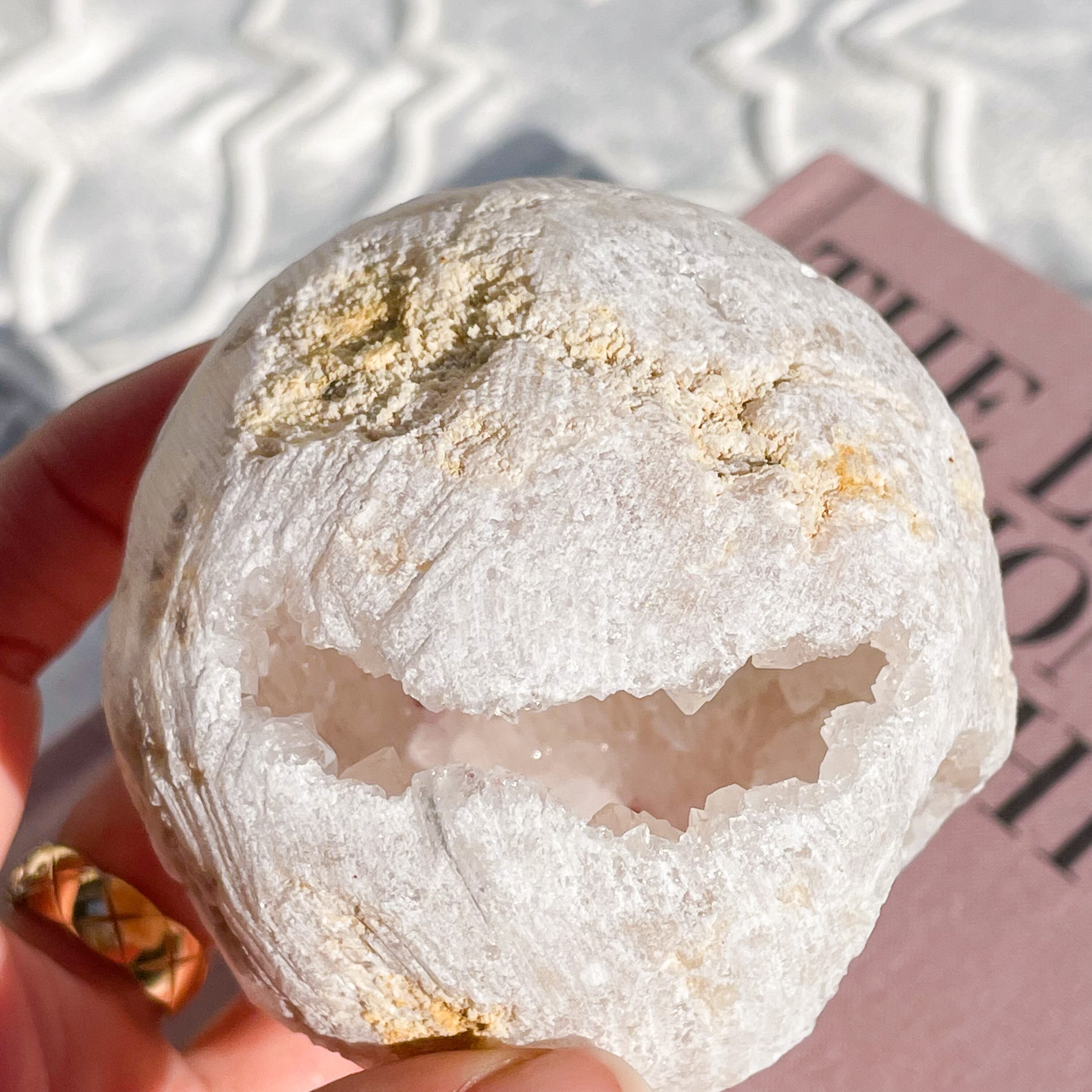 内側のドゥルージーに目を奪われる、ホワイトアゲートの笑口スフィア♡