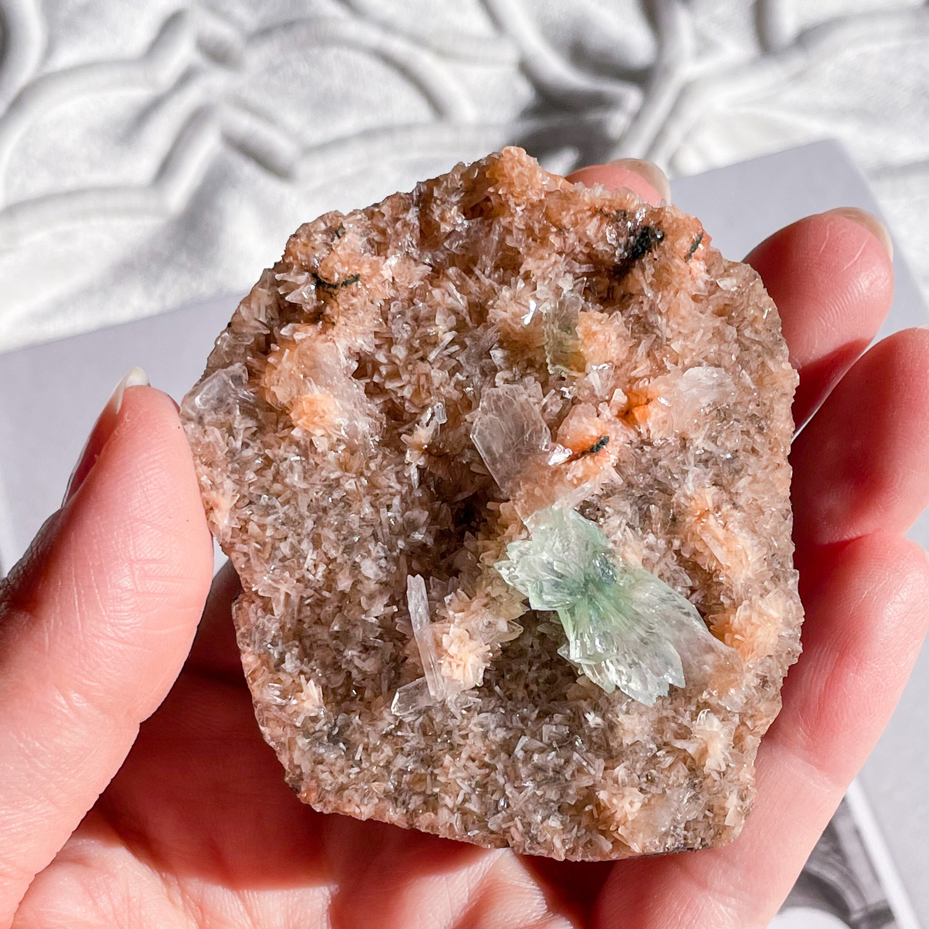 Orange Hulandite & Green Apophyllite 2 ✧ オレンジヒューランダイト & グリーンアポフィライト