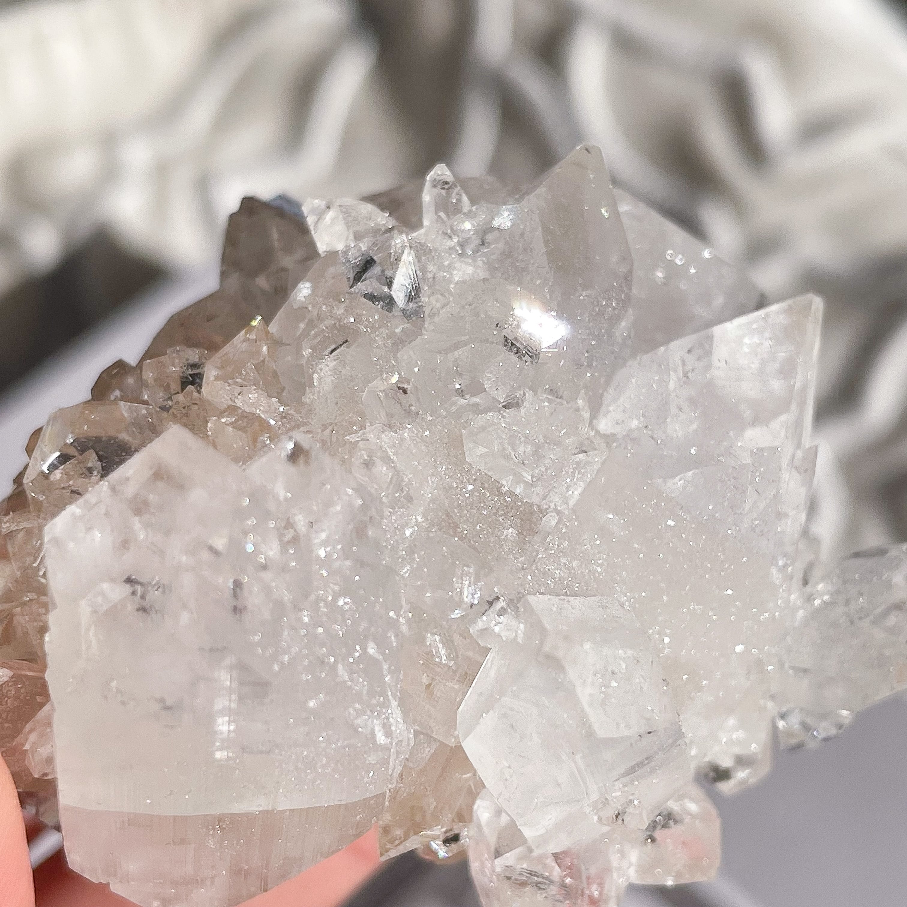 クリアカラーのアポフィライトの中でも、結晶表面の一部がドゥルージー状になっているシリーズです♡