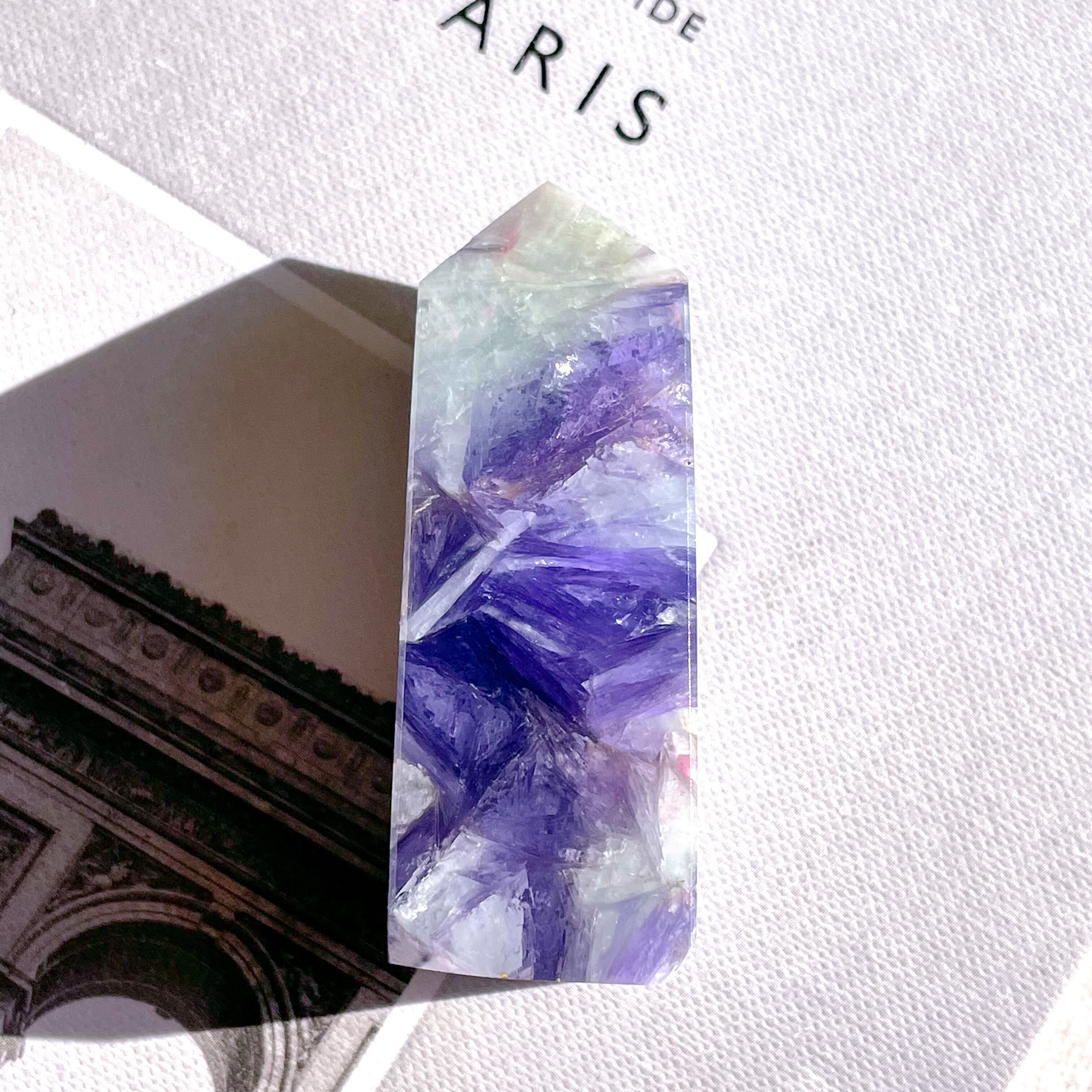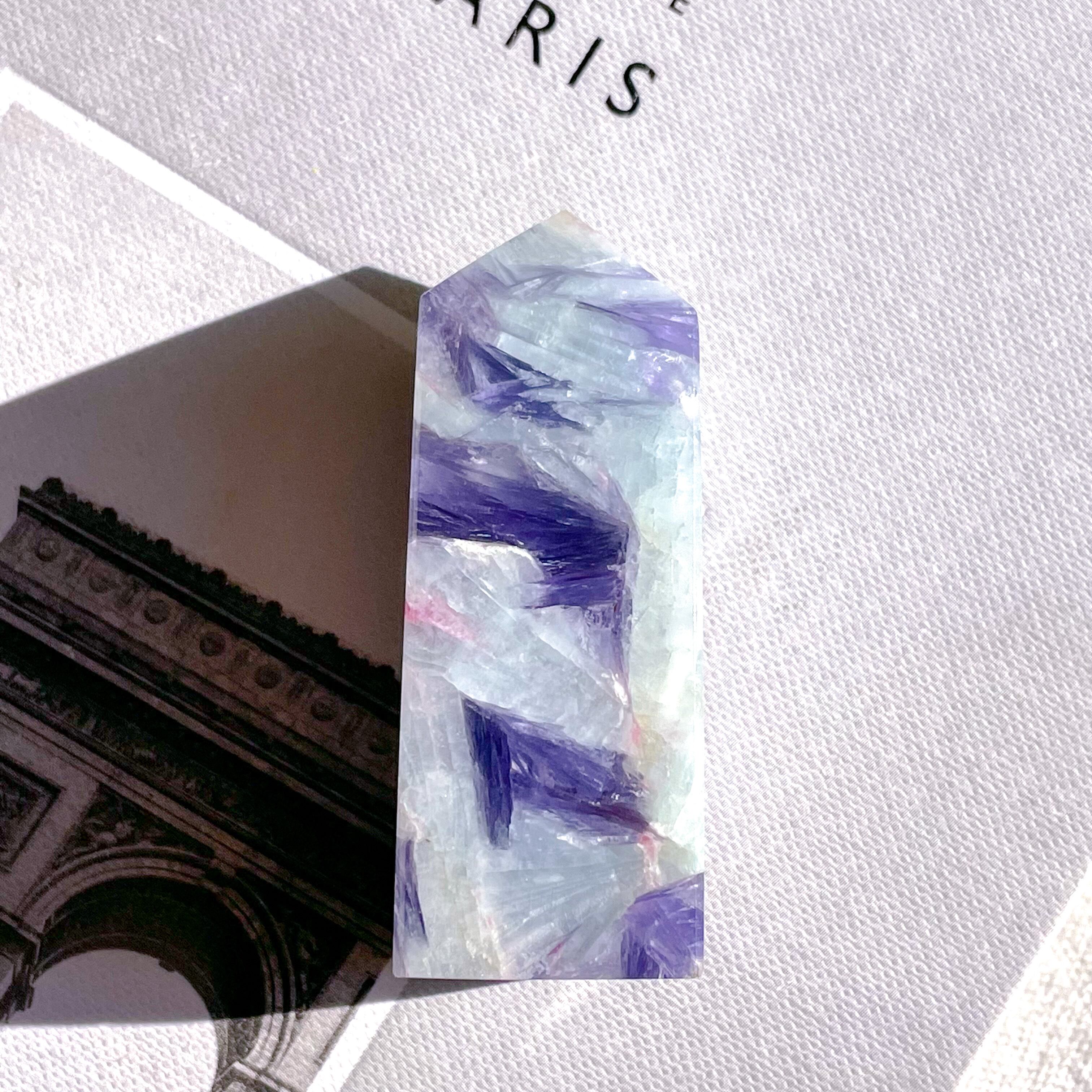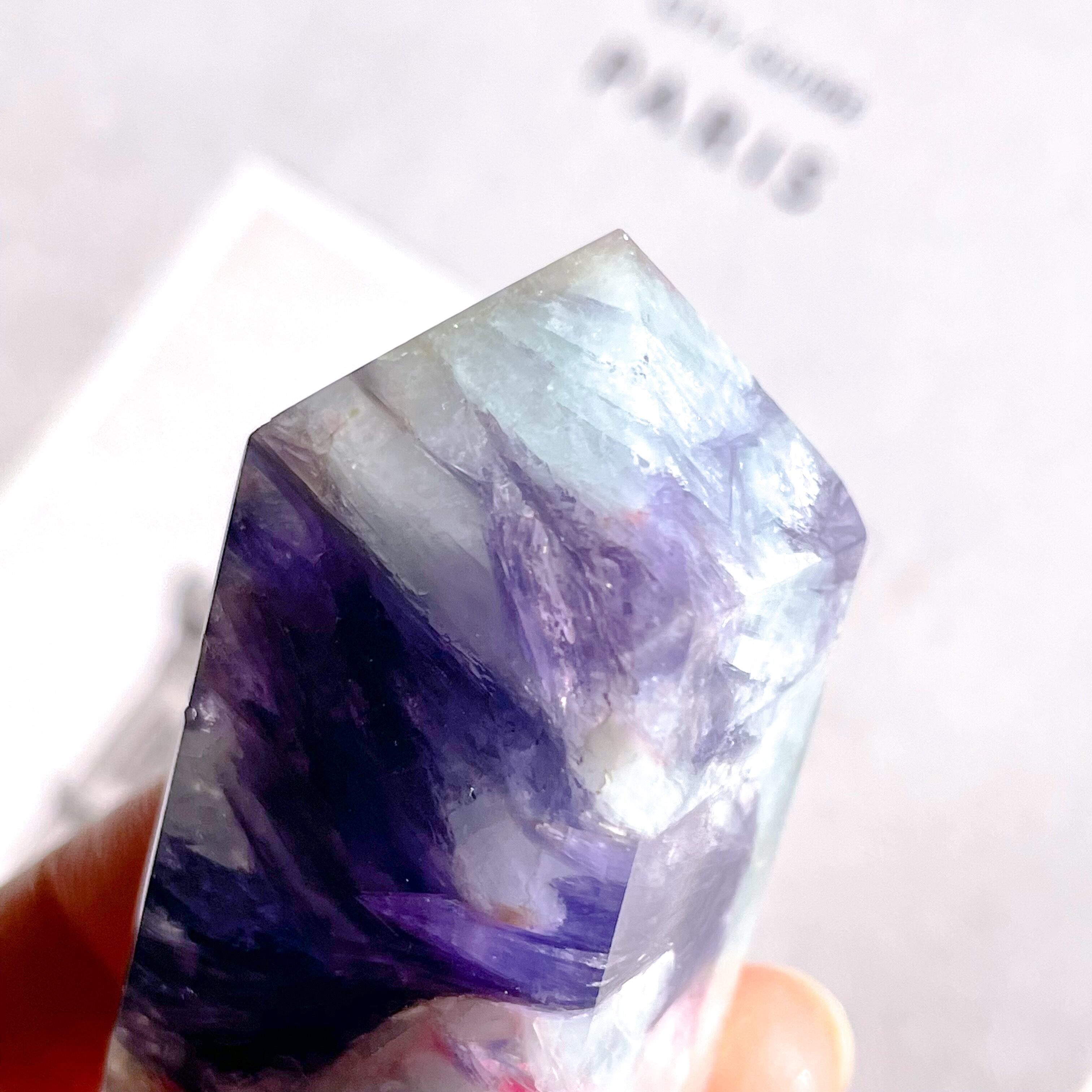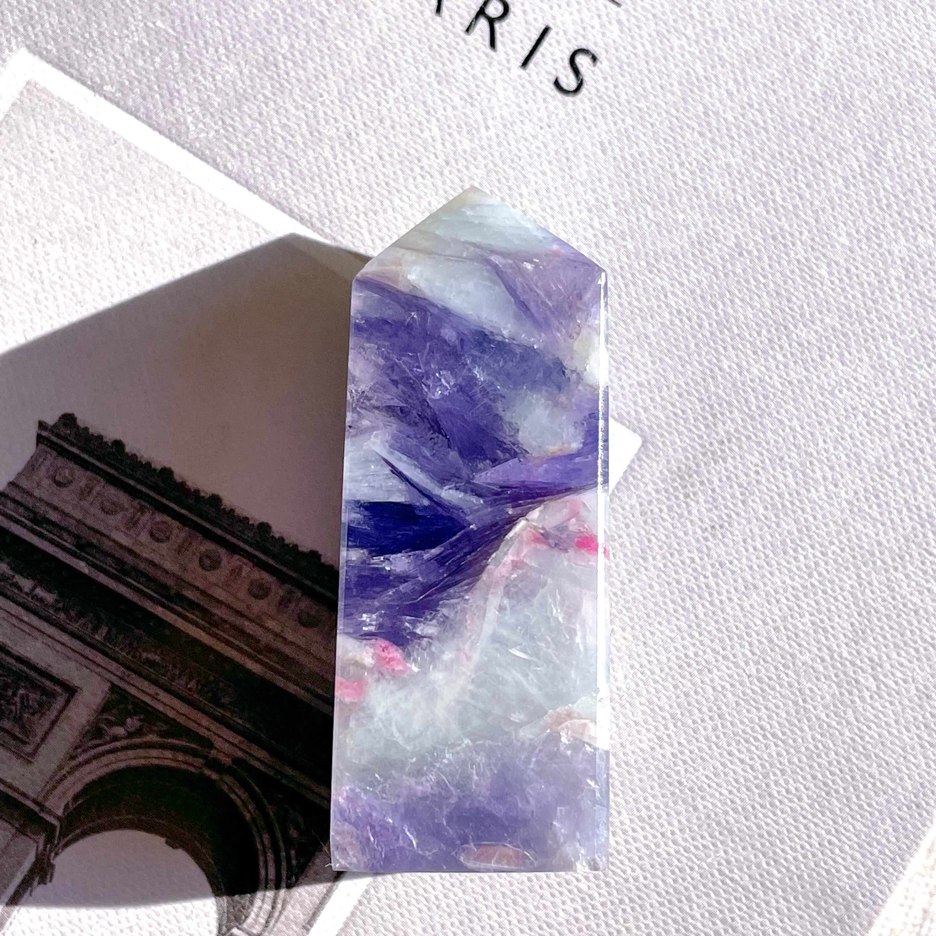 深いパープル、レピドライト特有の雲母がキラキラときらめきます。ピンクの部分はトルマリン♡淡いペールブルーのアクアマリンと共生して美しい模様を描き、吸い込まれてしまいそうな美しいピース。
