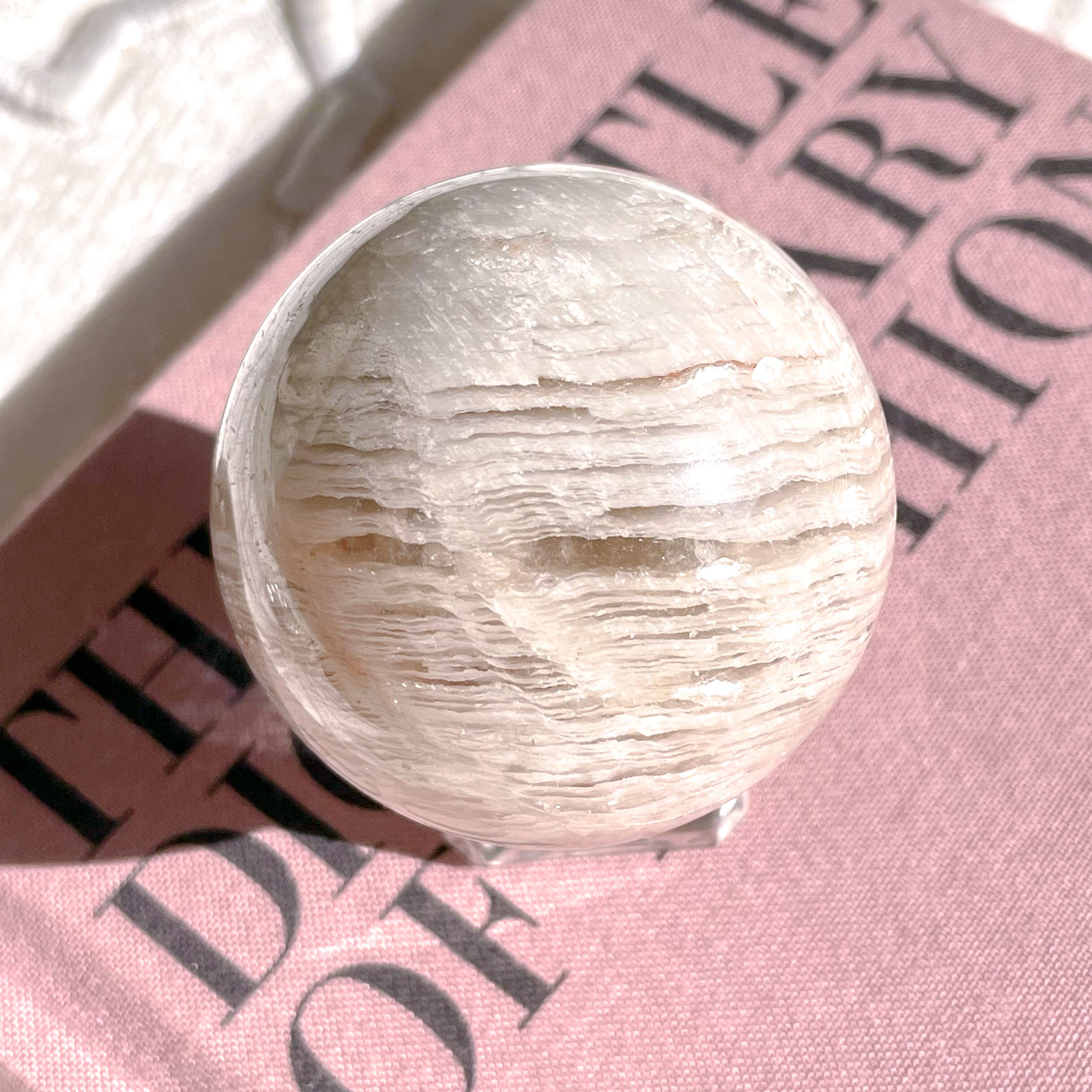気の遠くなるような歳月をかけて、水晶が成長と停止を繰り返し、その間に内包物が流れる層のように形成された、美しいマスターピースです。