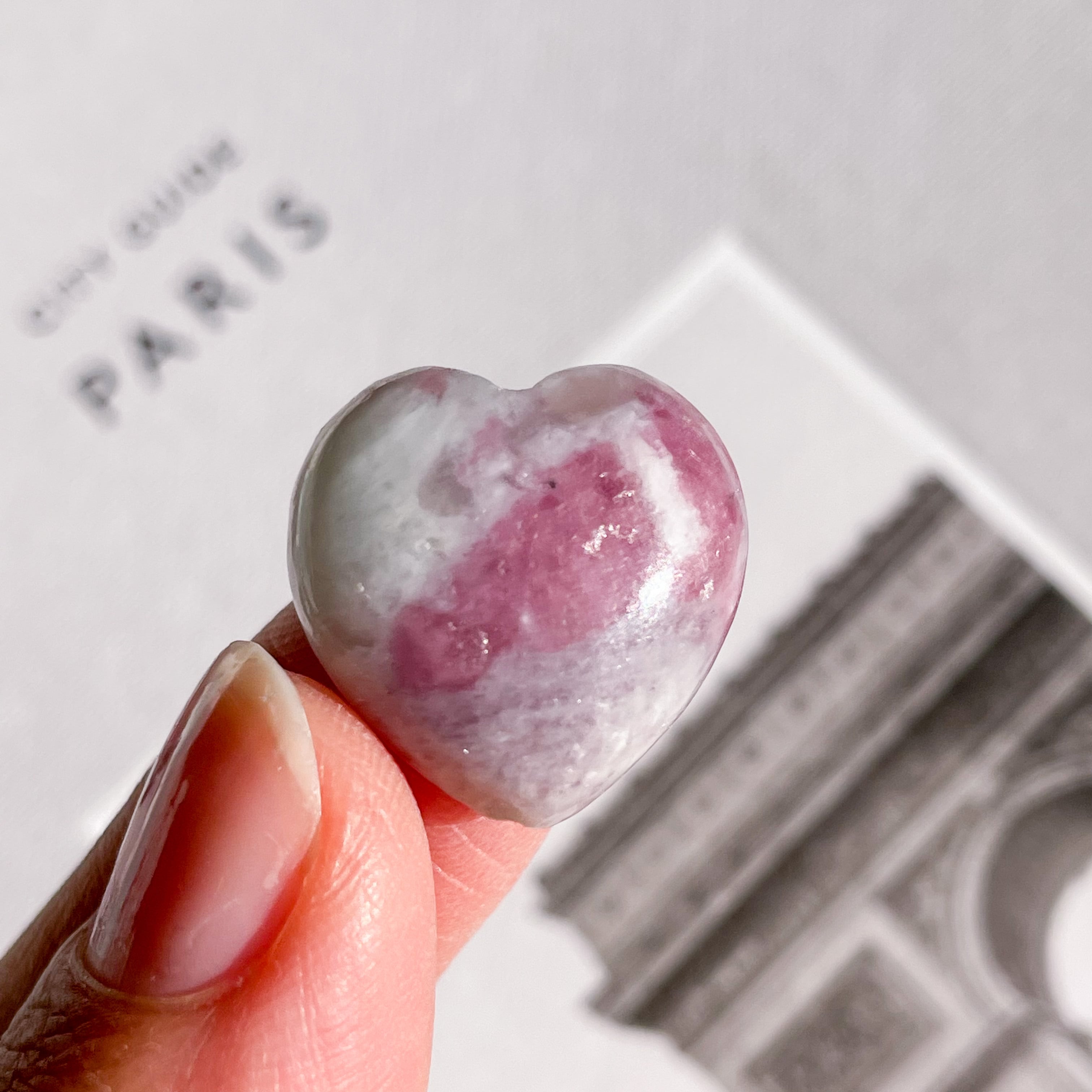 ピンクとホワイトが癒しをくれるピンクトルマリンinクォーツのハート。