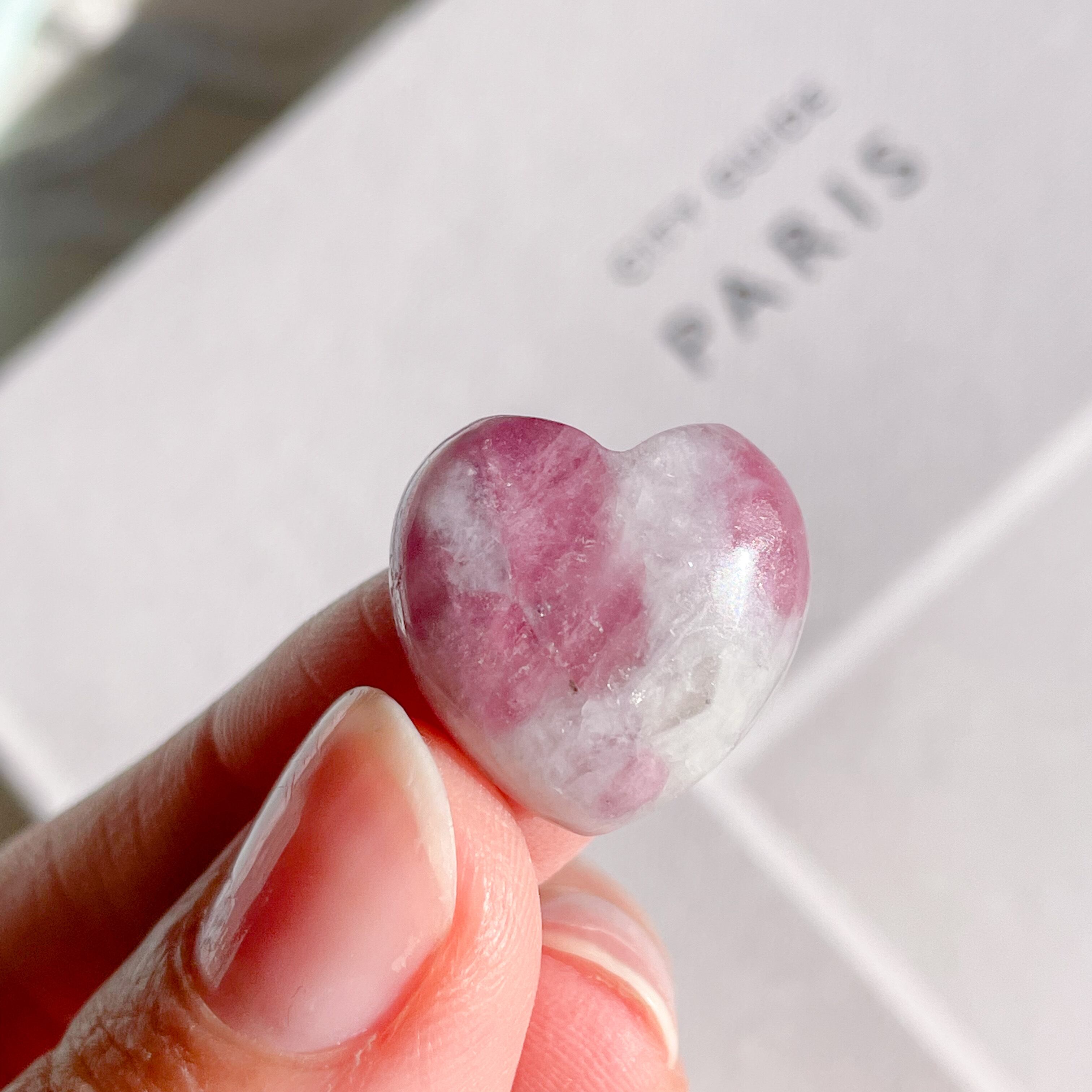 ピンクとホワイトが癒しをくれるピンクトルマリンinクォーツのハート。