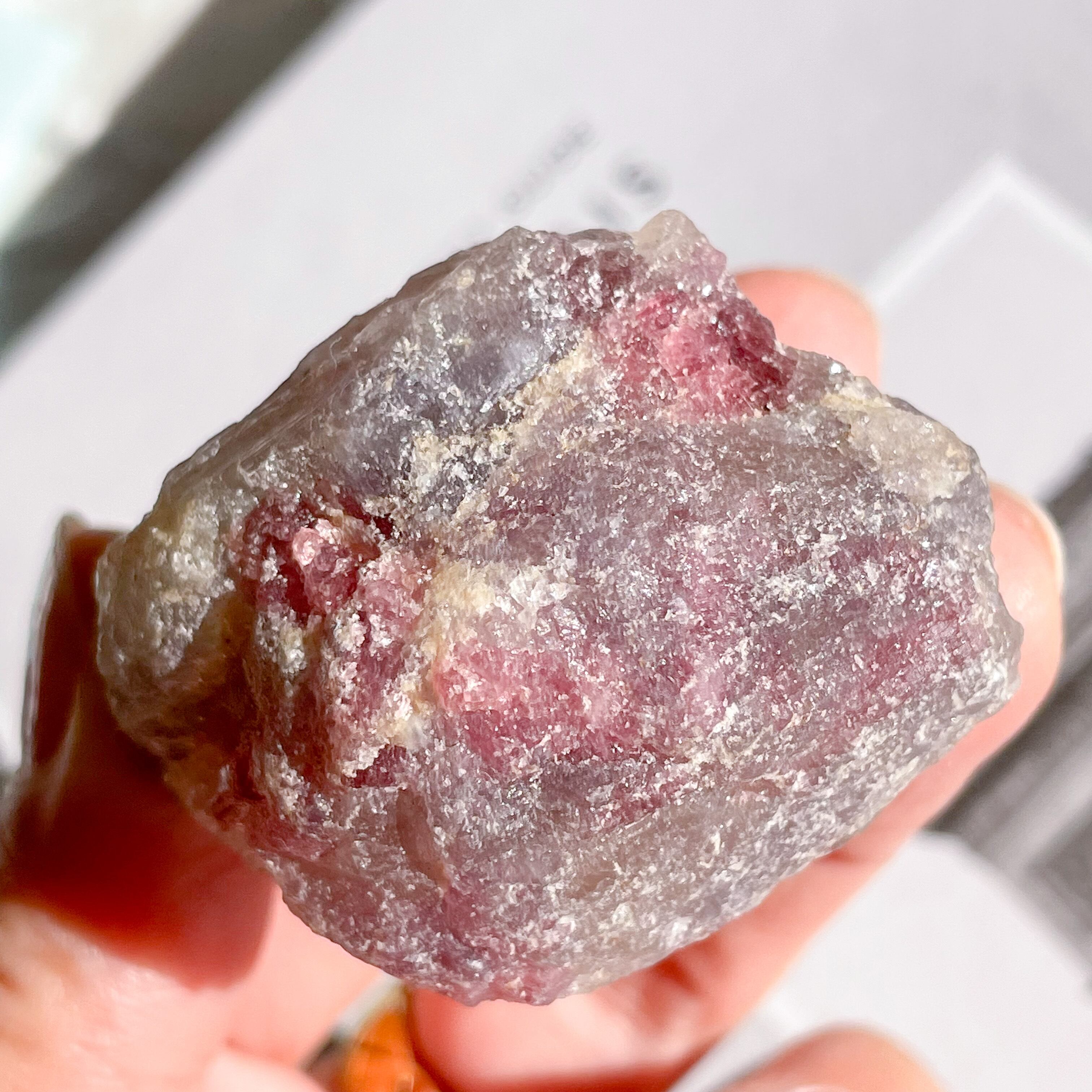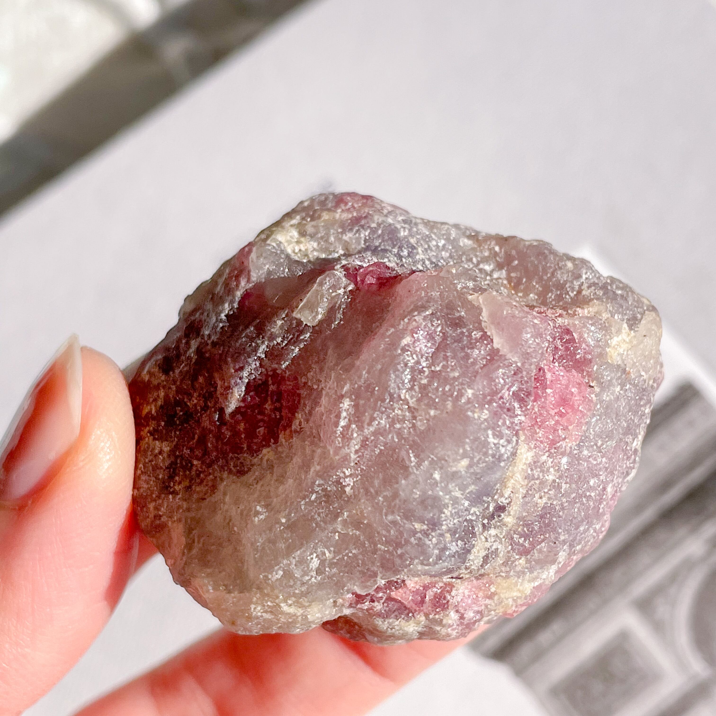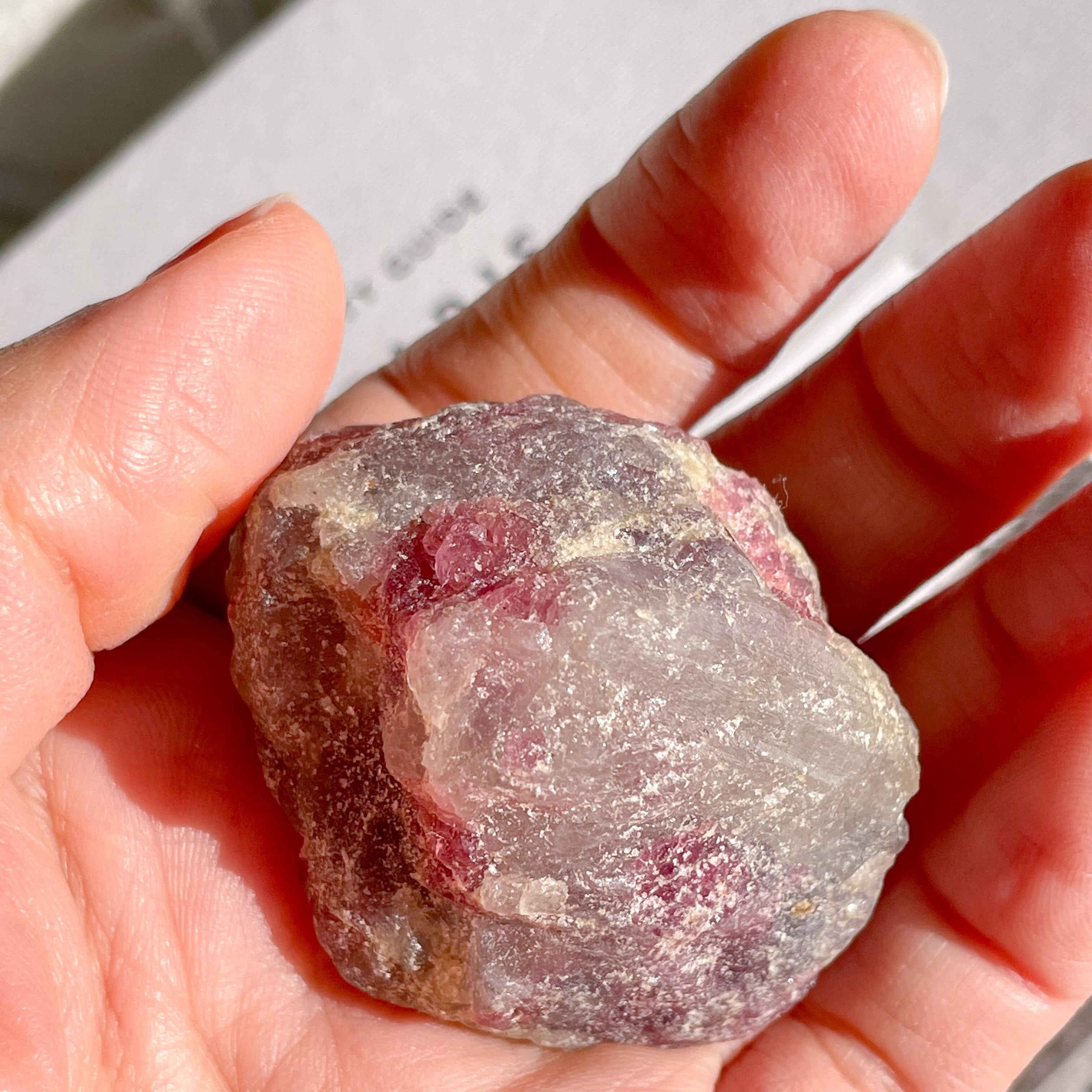 ピンクトルマリン、スモーキークォーツ、クリアクォーツが混ざり合うのユニコーンストーンの原石