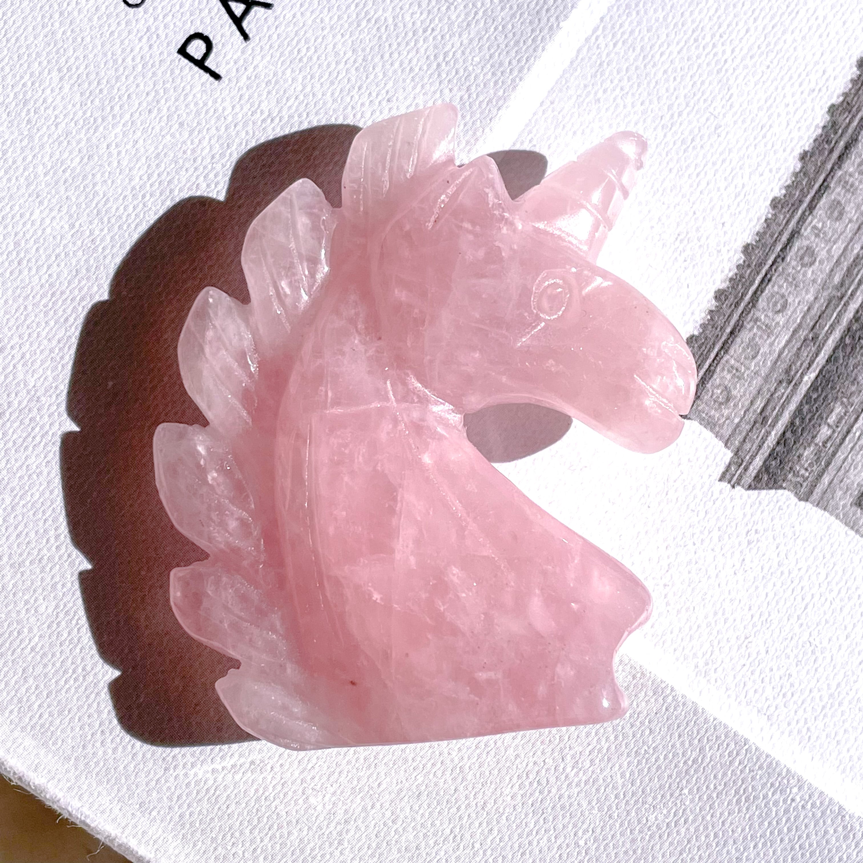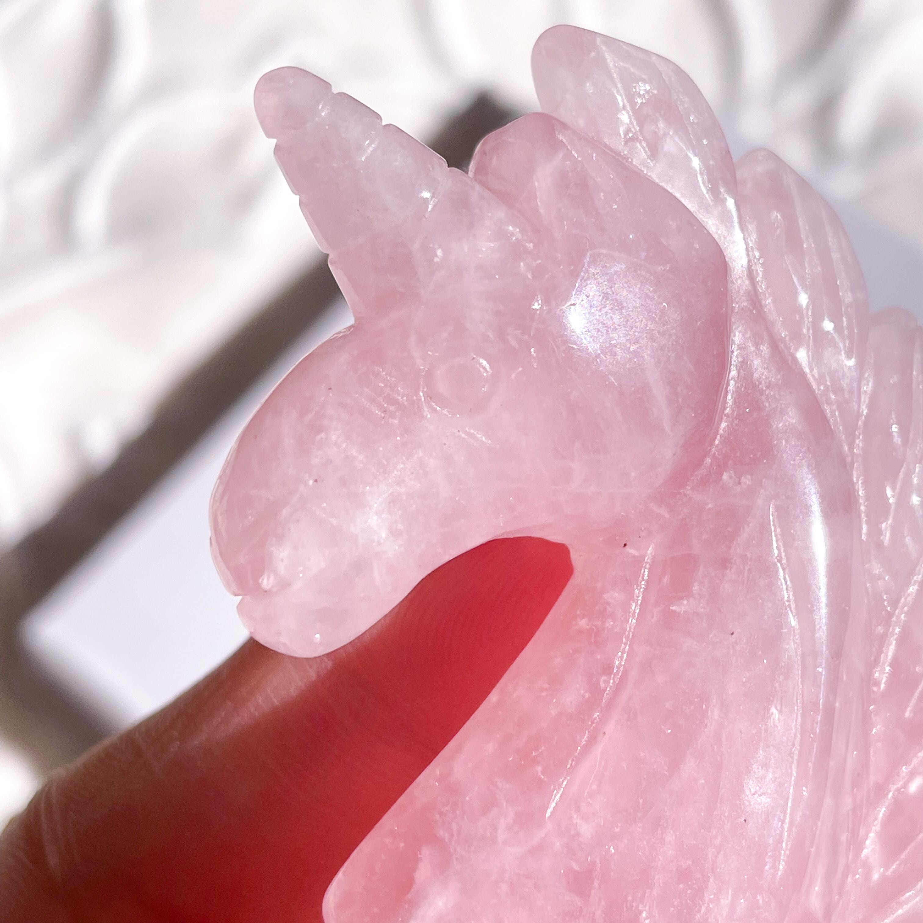 マダガスカル産の美しいローズクォーツのユニコーン。