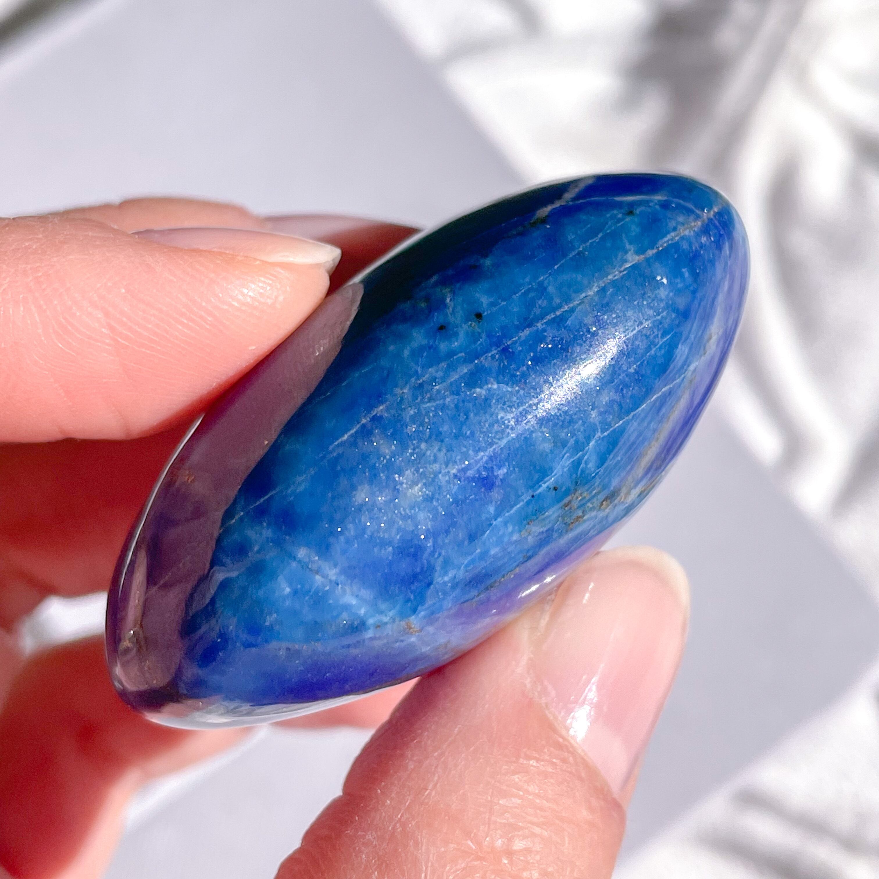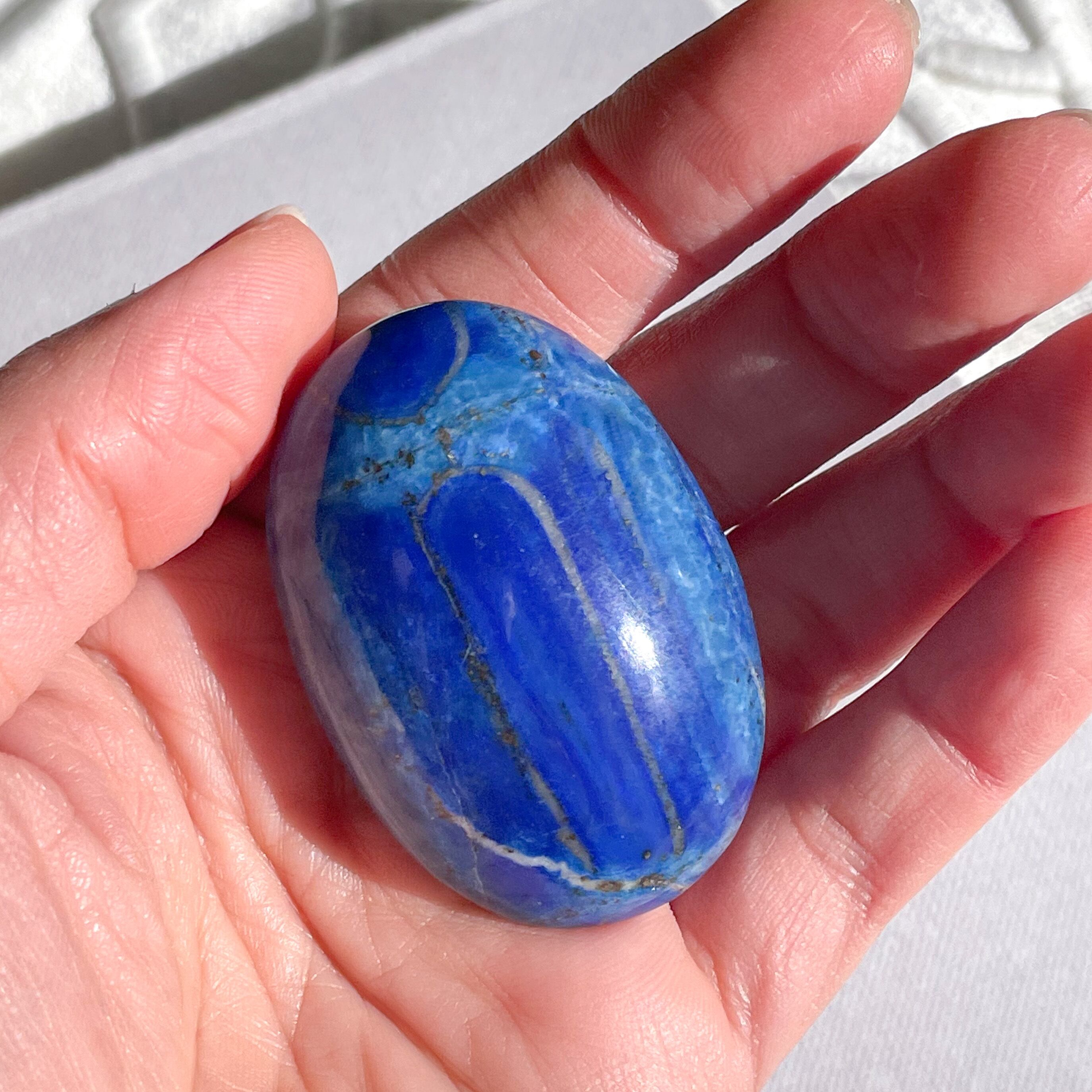 天空、海、または宇宙にも見える、深い美しさのあるパームストーンです。