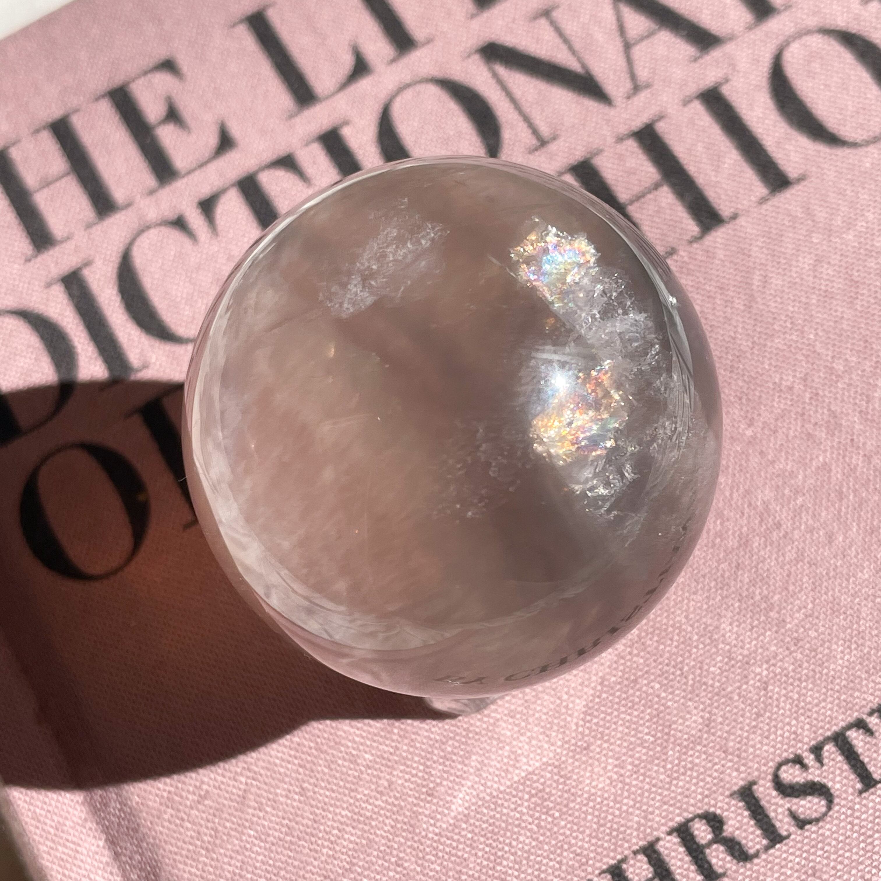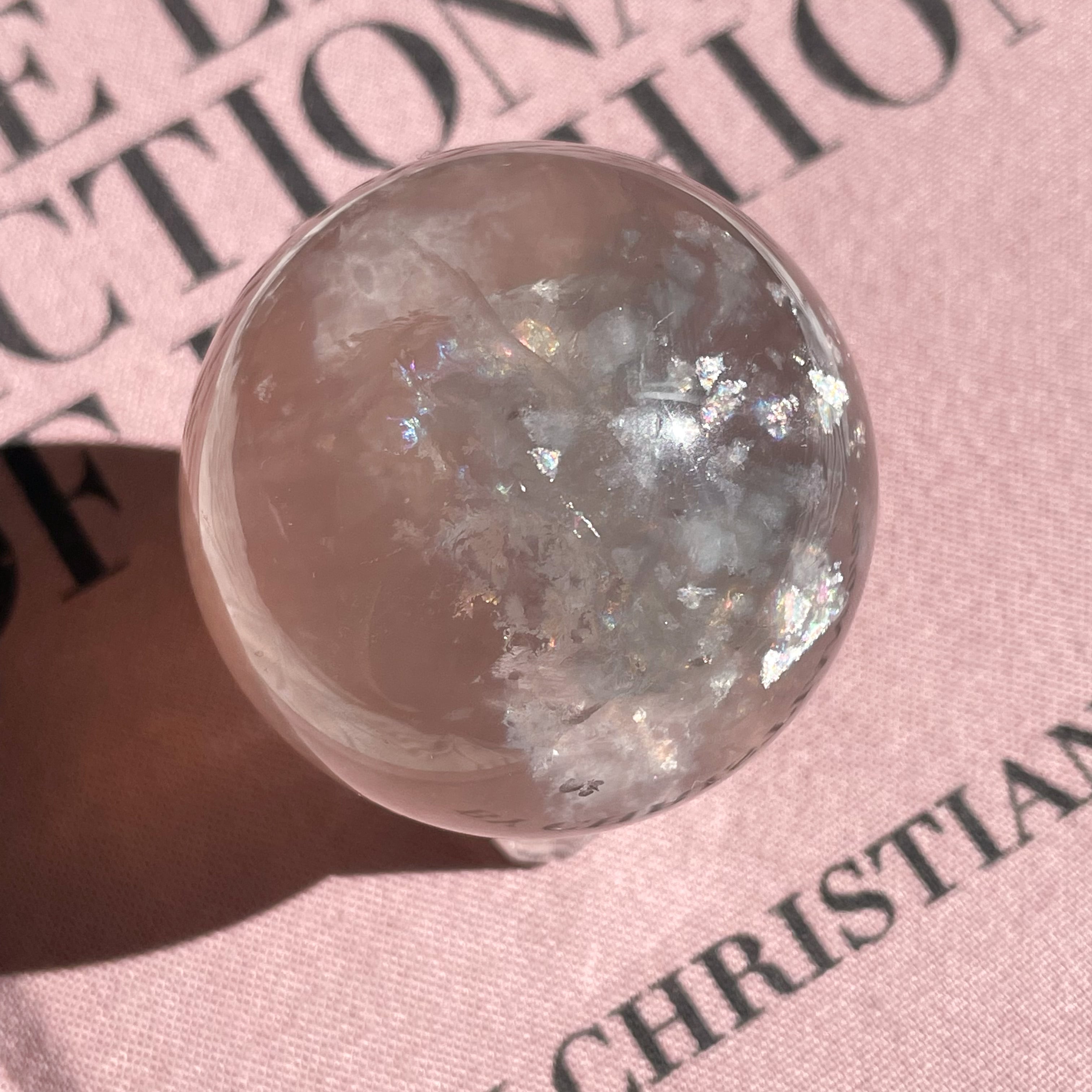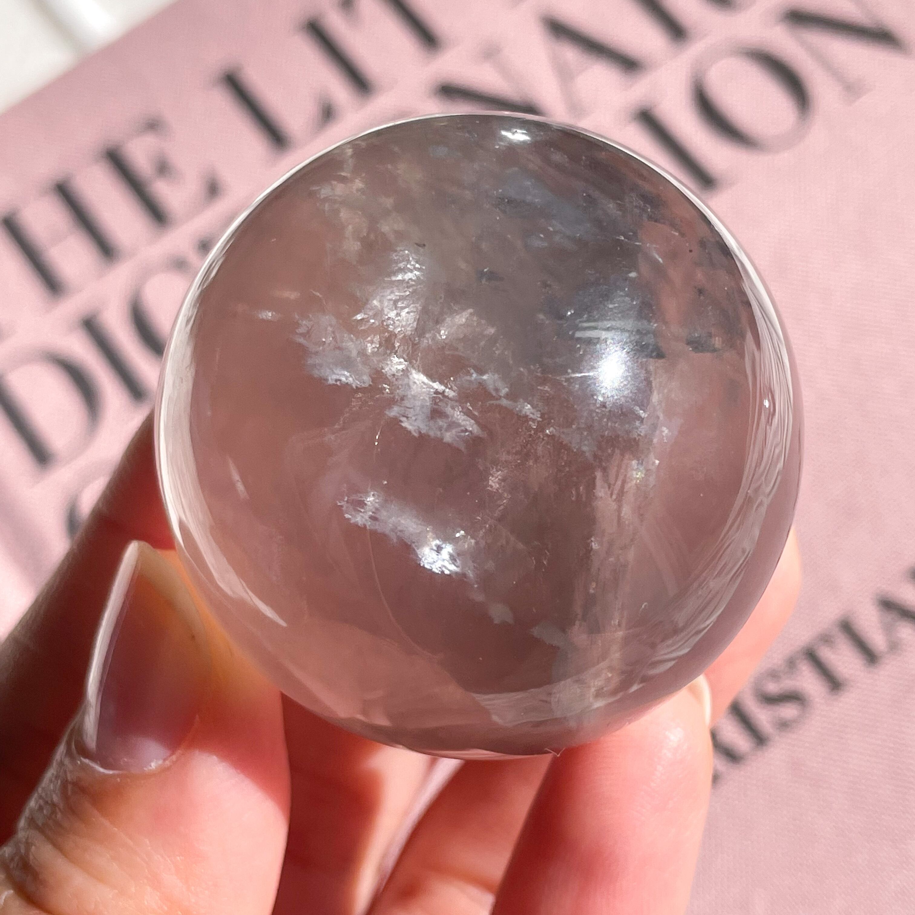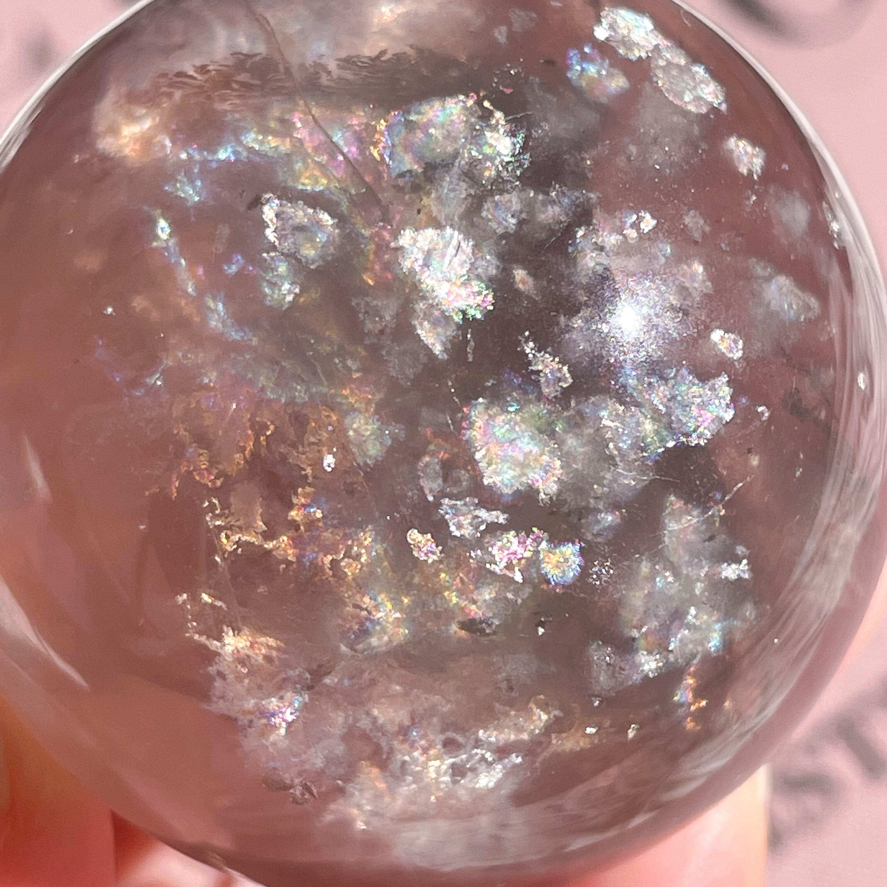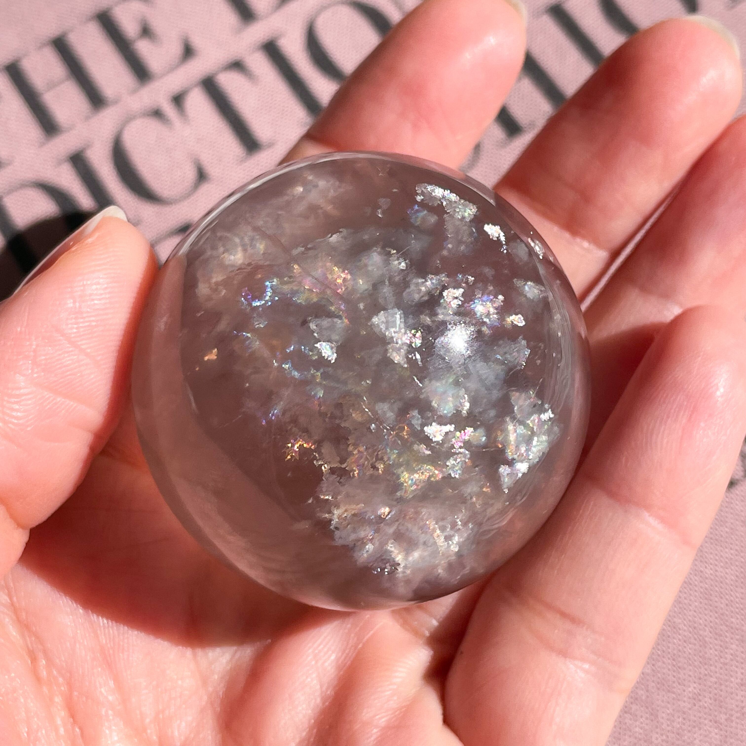 まるで手のひらの中の満点の星空。マイカ入りピーチフローライトのスフィア。